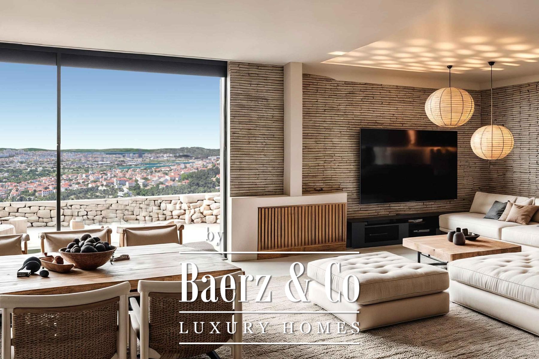 Villa Klis with panoramic views welcomes you to a contemporary vision of privacy and comfort, where striking modern design meets a tranquil Croatian hillside. Set on a 300 m² plot, this villa offers 367 m² of living space across an underground level and three elevated floors, each thoughtfully composed to optimise light and transition between indoors and out.