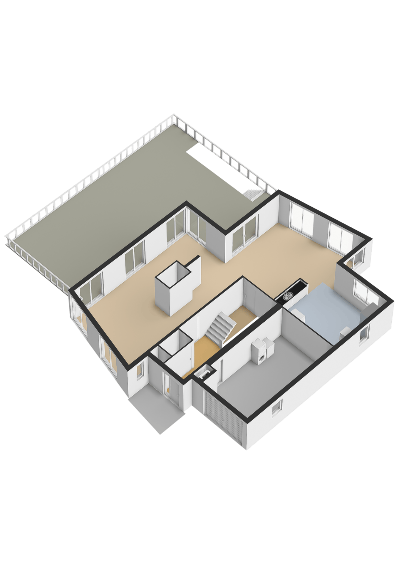 What truly sets this property apart is the lower level. It features no fewer than nine rooms, usable in countless ways: hobby rooms, studios, fitness areas, offices, storage, or even a home practice. This makes the house ideal for those who need ample space or want to combine business and private life. Several roof terraces add extra outdoor space on different levels, making the home flexible and future-proof.