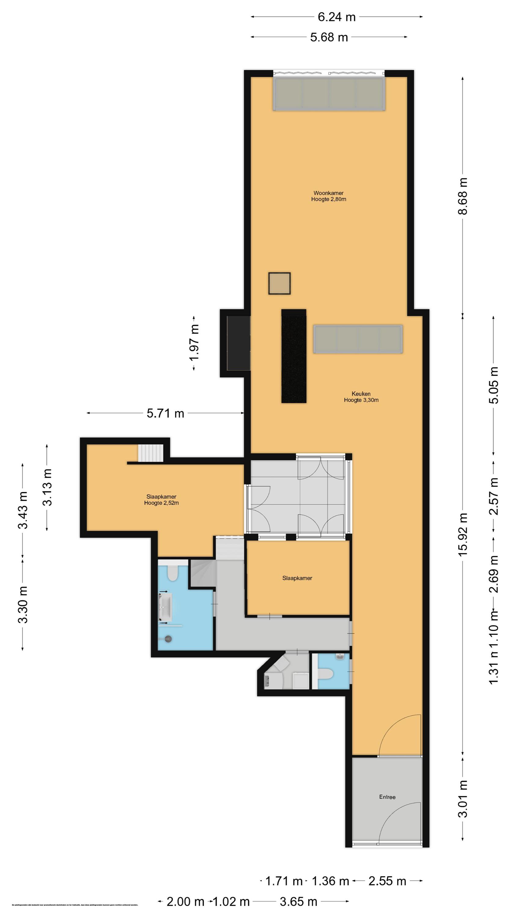Alle informatie waaronder doch niet uitsluitend maatvoering heeft nadrukkelijk een indicatief karakter; er kunnen geen rechten aan worden ontleend. Verrekening wegens over- of ondermaat is uitgesloten. Het schriftelijkheidsvereiste wordt van toepassing verklaard. Aanbieding vrijblijvend, oplevering in overleg.