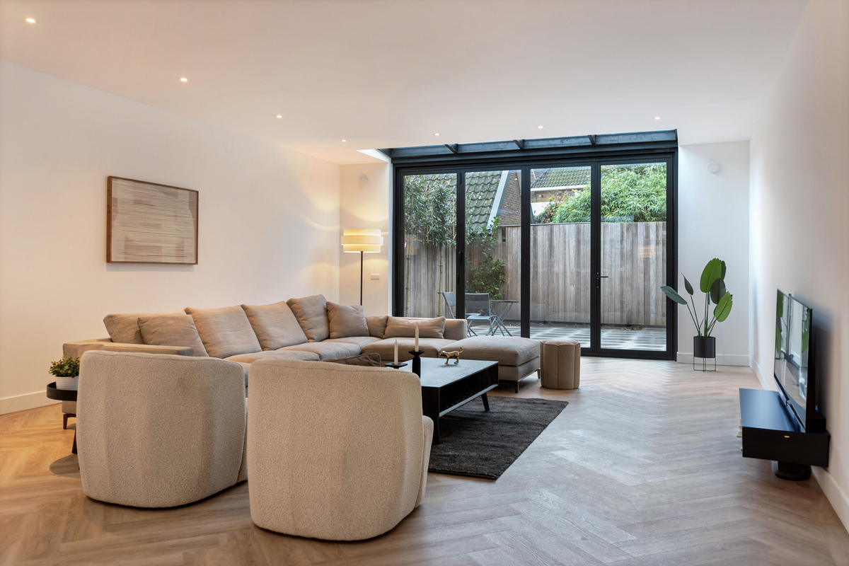Wonen hier betekent: de gezelligheid van het dorp Laren – met terrassen, winkels en delicatessenzaken letterlijk om de hoek – combineren met een woonbeleving die je eerder verwacht in een moderne loft of stadsappartement. Verborgen achter glas, maar zodra de deur opengaat, is het pure verrassing.