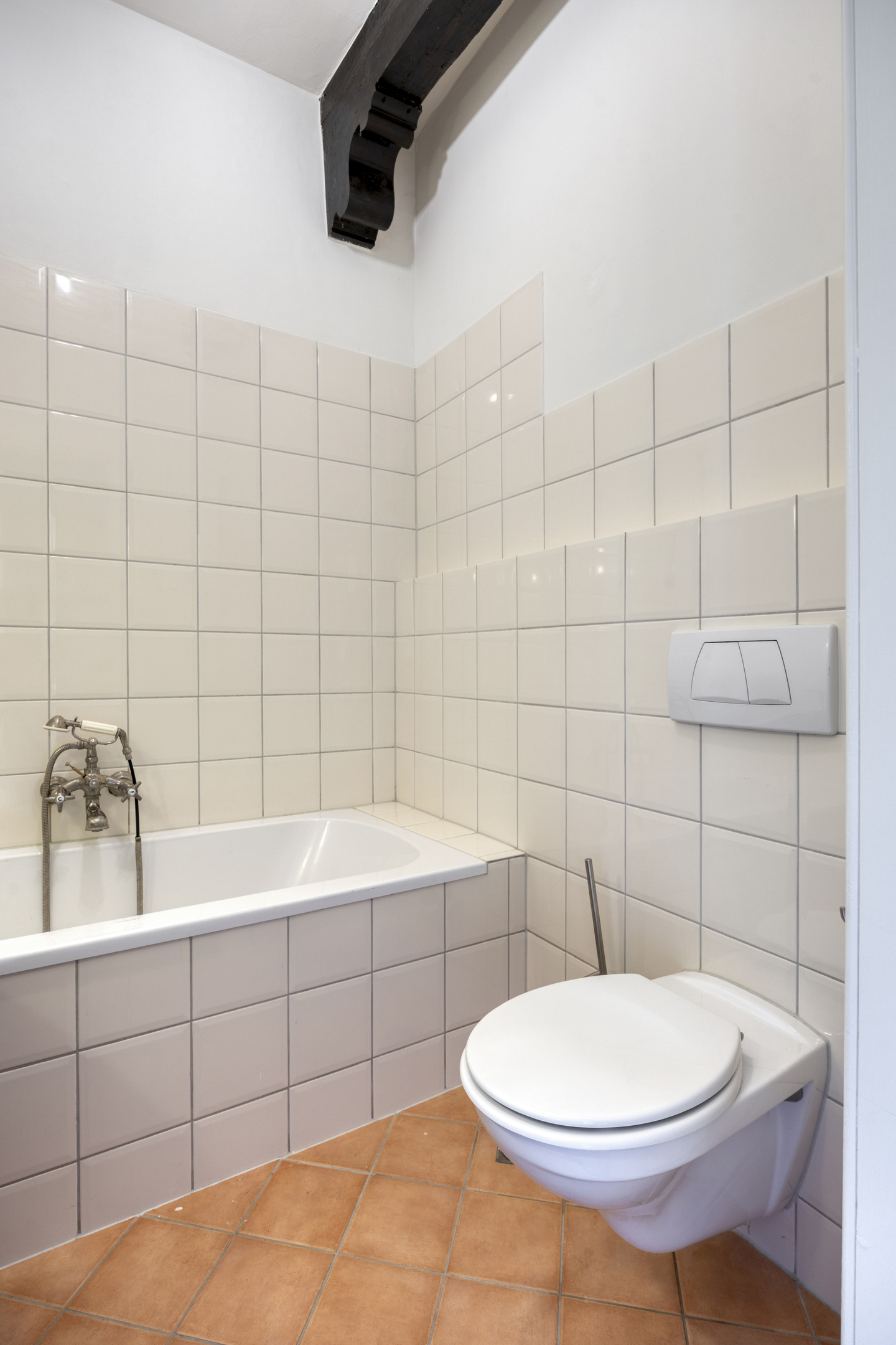 Kamer voorzijde met authentieke details en tuinkamer met openslaande deuren en binnendoor naar nr. 11. Keuken met inbouwapparatuur en badkamer met ligbad. wastafel en wc.
