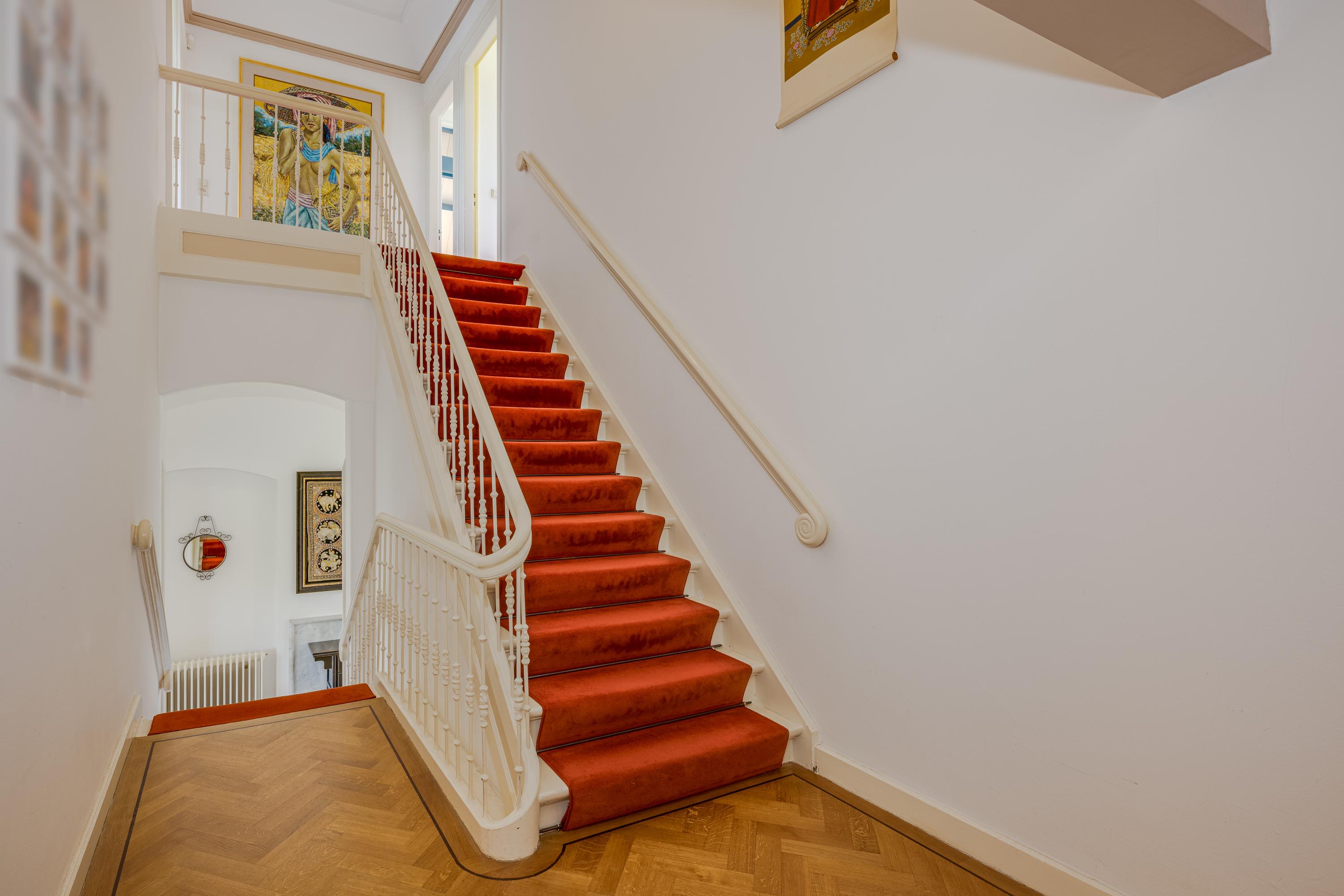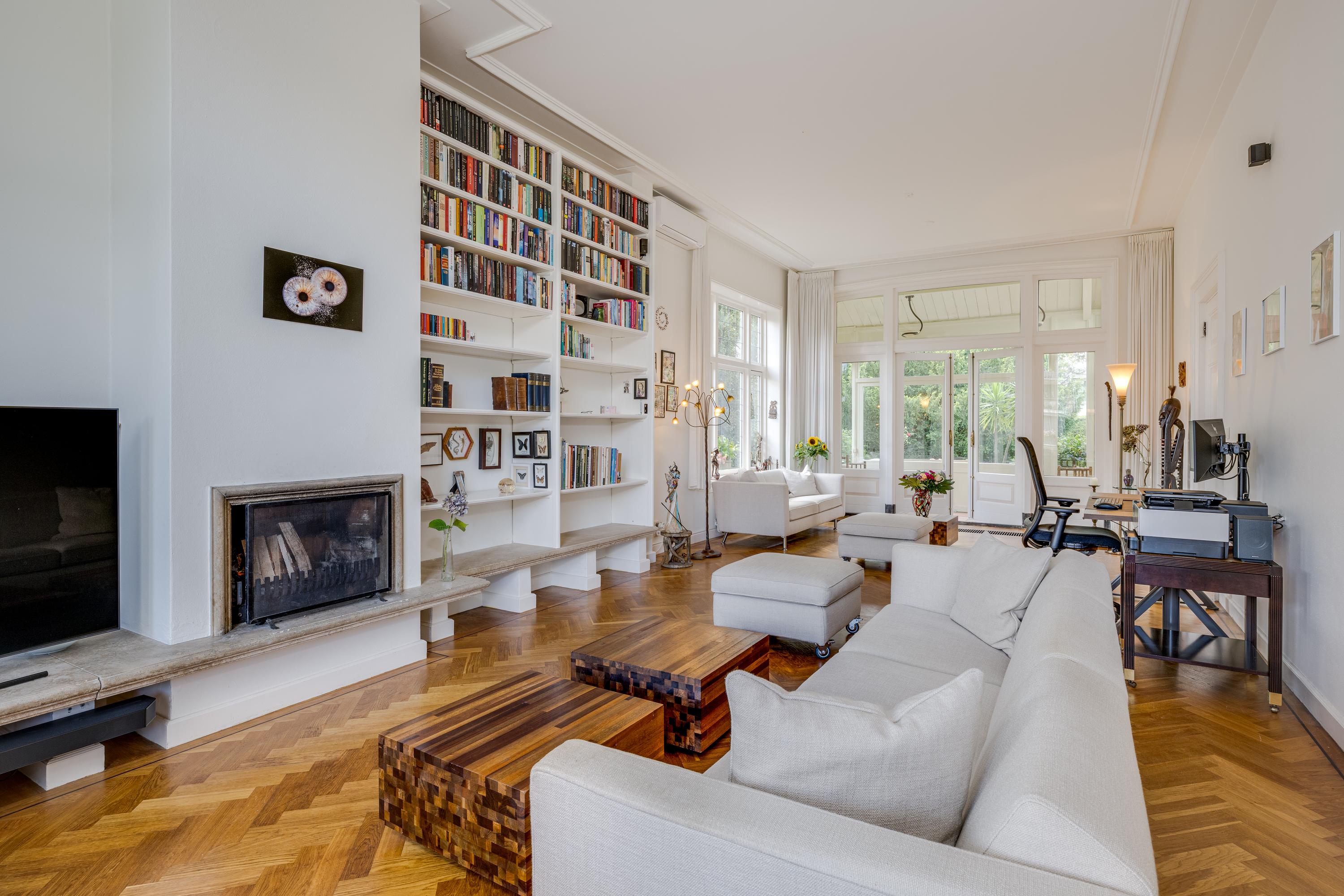 The main building from 1820 is characterised by the classic style elements from that period: a central entrance with two windows with shutters on either side and on the first floor the beginning of the roof with a central facade with three windows with shutters. The characteristics characteristic of this construction period are also present inside; high stately ceilings and windows on all sides provide beautiful light at any time of the day. On the ground floor there is an L-shaped living room en suite, fireplace with a conservatory on the garden side and a view of the Rhine on the water side. The central hall runs from front to back and has French doors to the garden with terrace on the water side. On the left side of the hall are the kitchen with utility room with a passage to the barn, the spacious basement and the formal dining room with again a beautiful view of the Rhine and the passing boats.