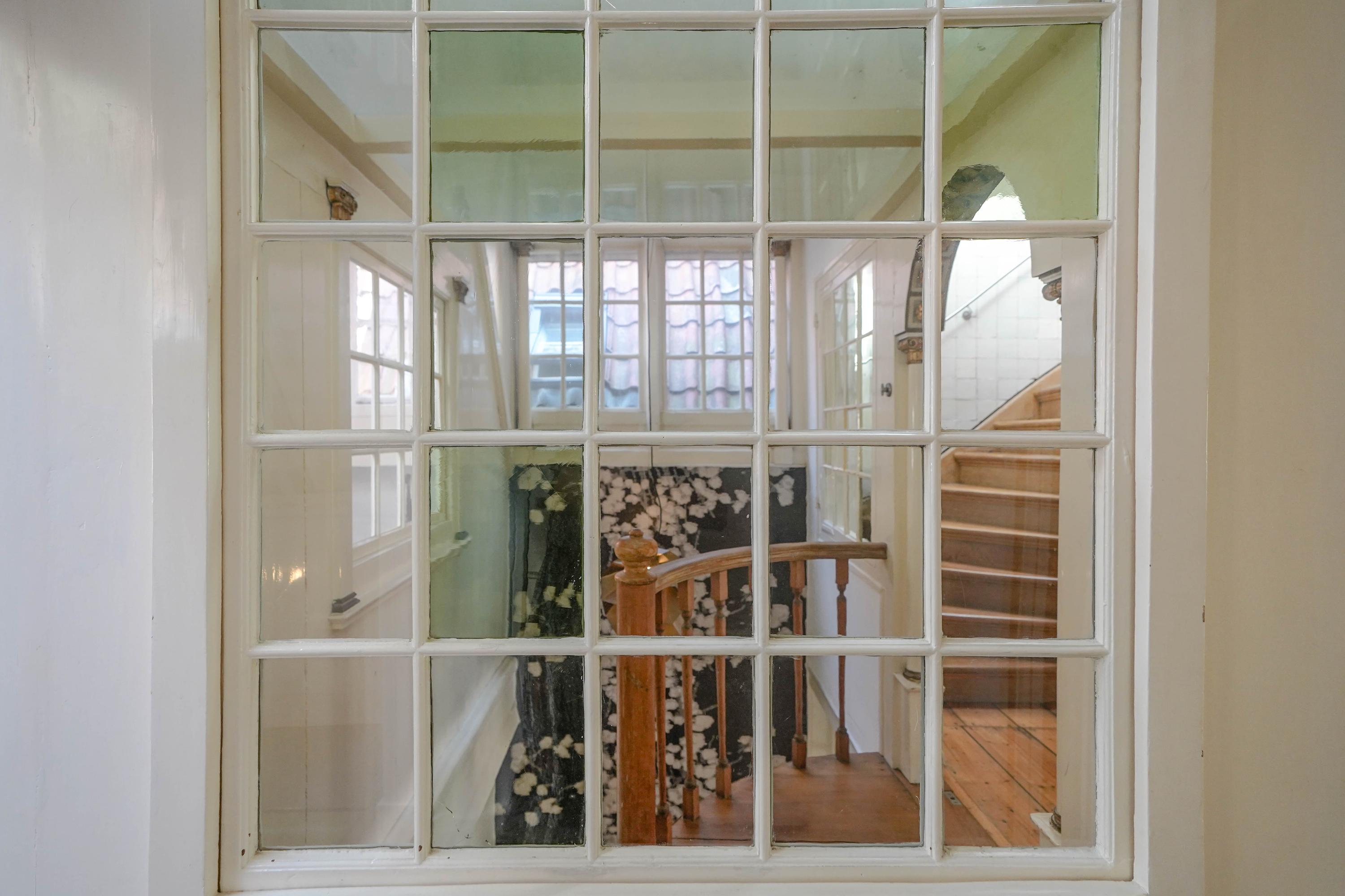 The rear house is oriented towards the garden and the castle hill. From the various rooms you can see the Burggraaf's old home through beautiful high windows: an 800-year-old oasis of greenery in the middle of the city center. Here the current owner has a garden room on the ground floor with an extra kitchen. You also need this, because having to go through the entire building every time for a snack or drink when you're sitting in the garden is a bit much to ask. There are quite some distances you can cover here. There is now a second living room on the 1st floor. with high ceilings, a fireplace and the best view of the Castle. It could also make a lovely office or library. Upstairs is a separate guesthouse with private bathroom and toilet. An aupair could also have a very nice place here.