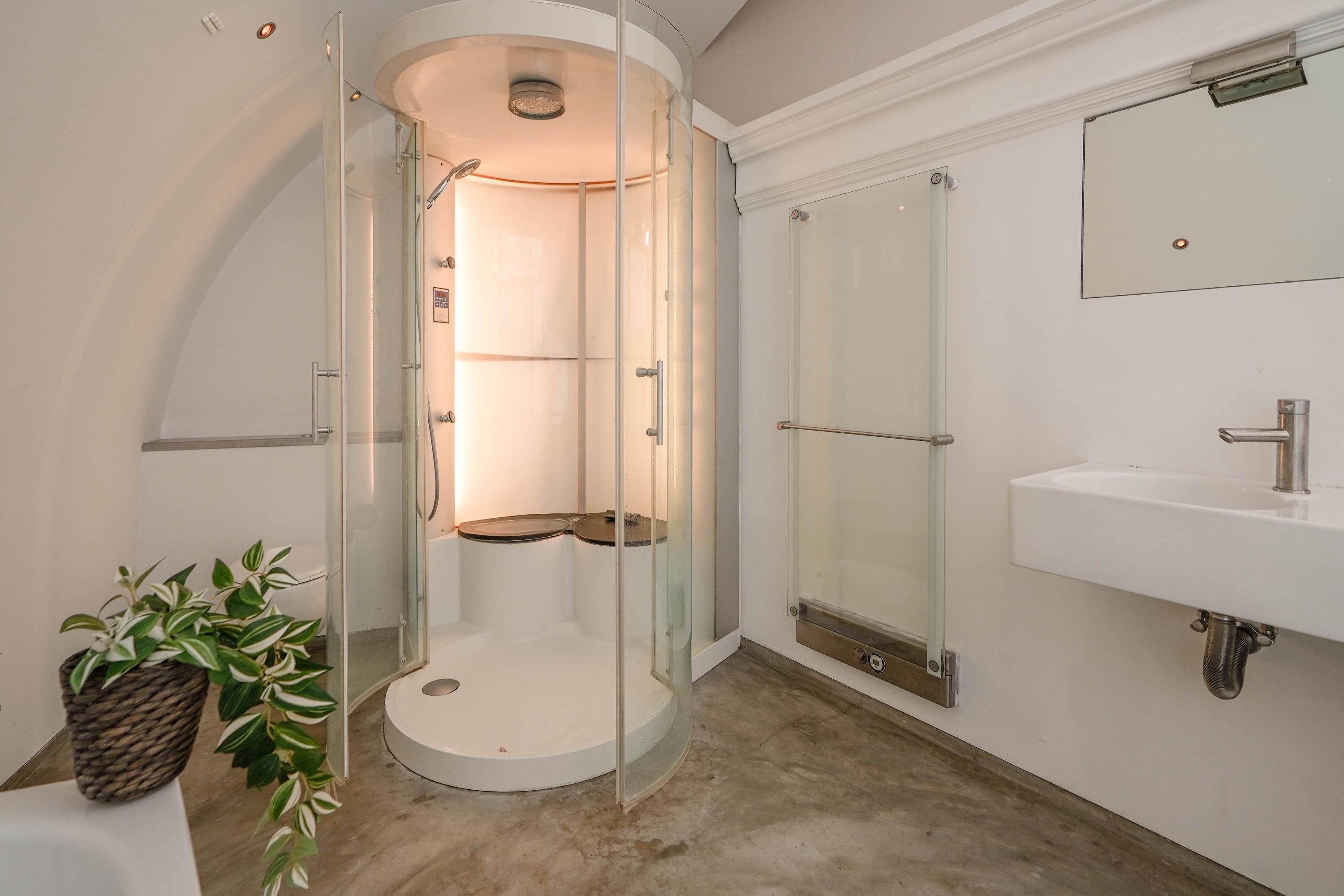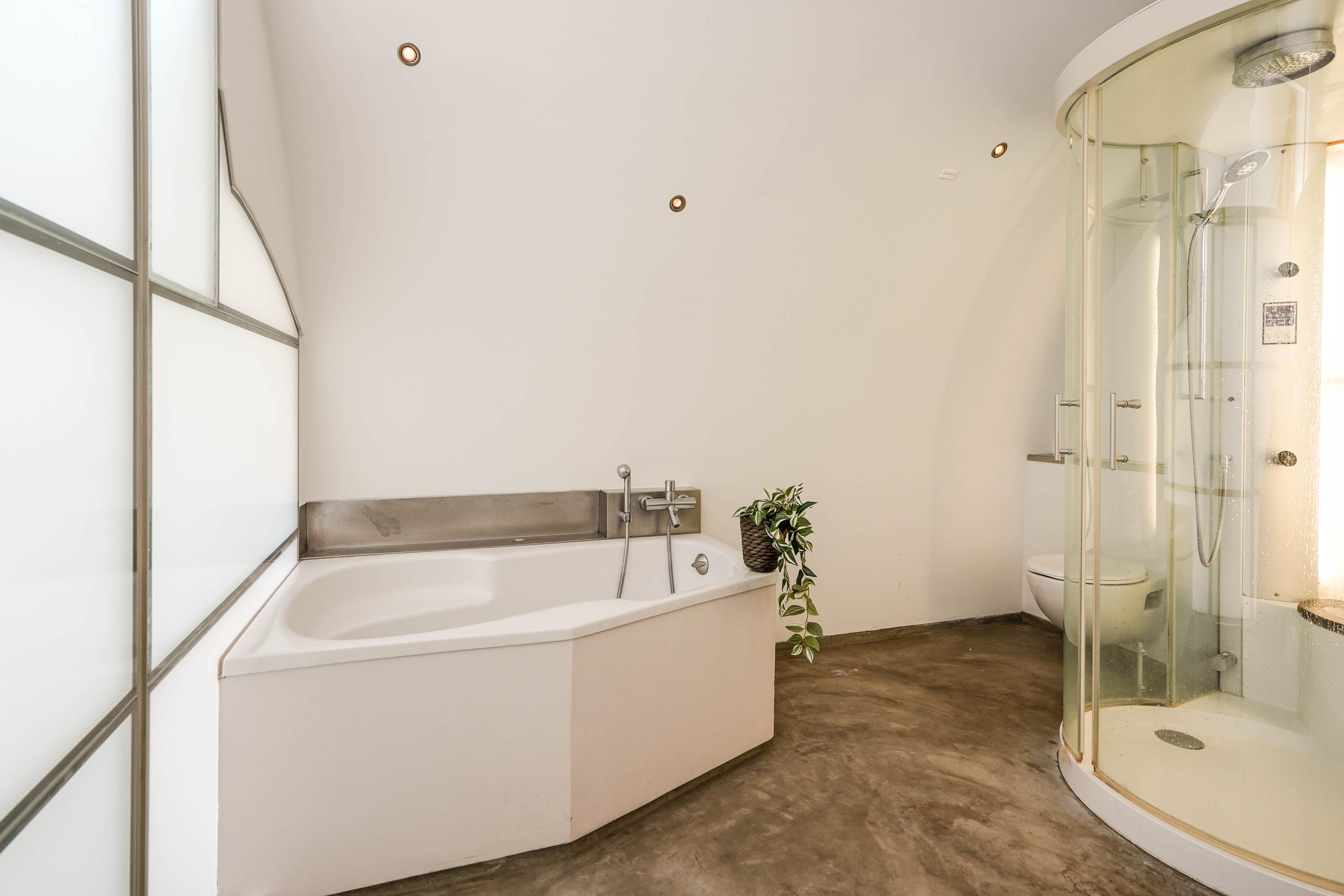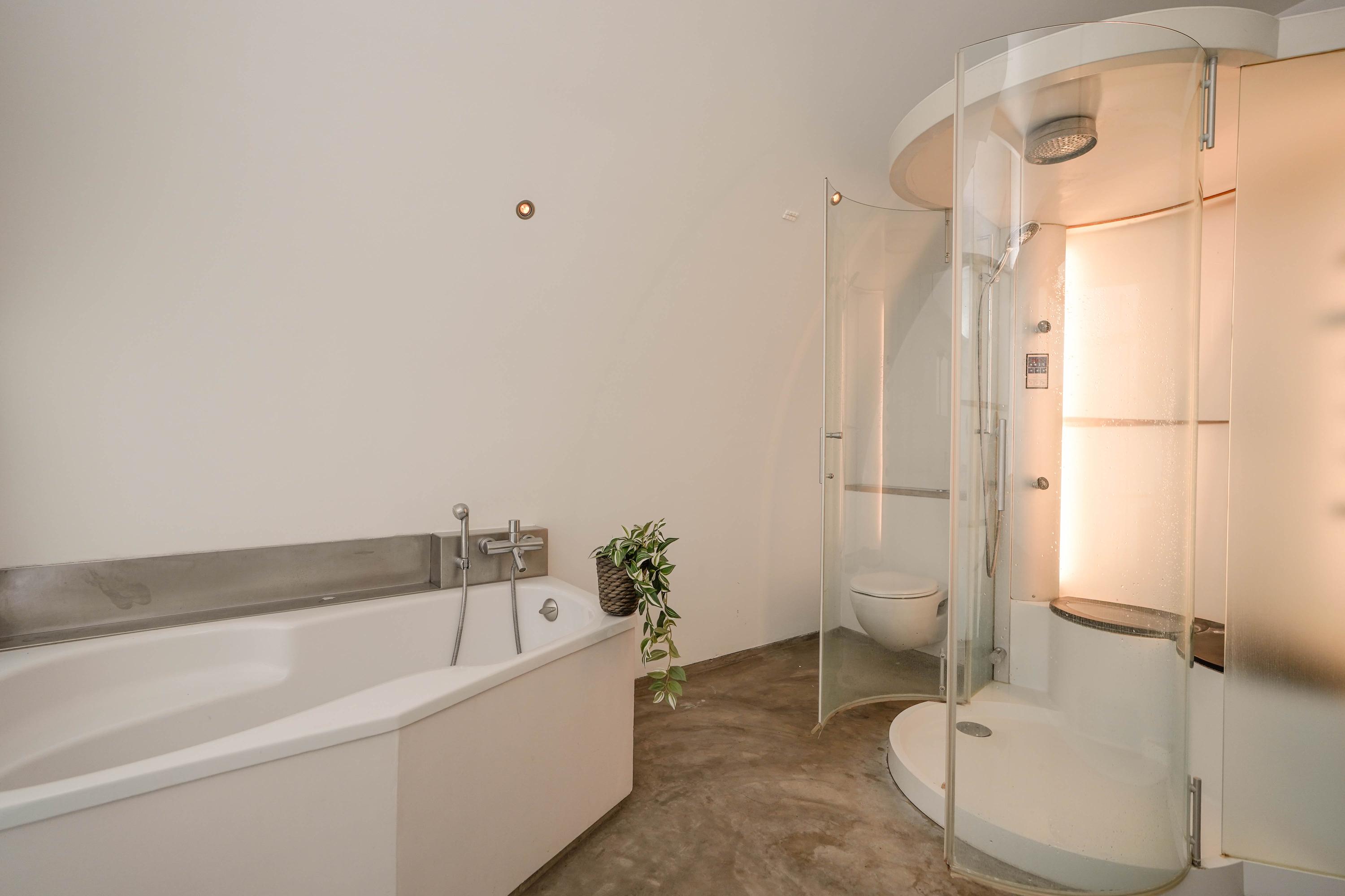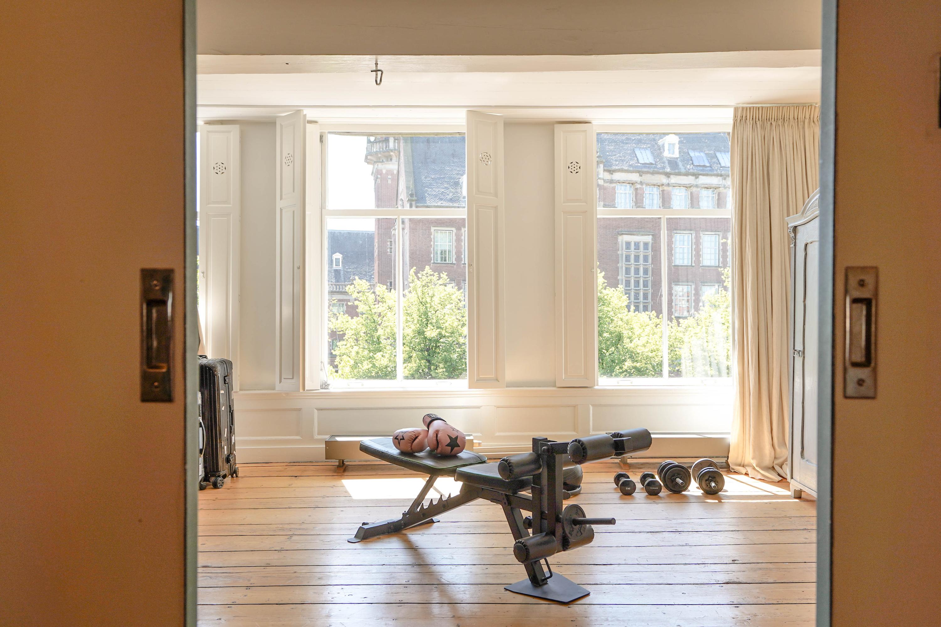 The front house is the original main house. The ground floor houses a shop (which is also available for purchase), and the first floor now houses the 70 m² living room, which overlooks the Rhine and Stadhuisplein. At the rear is the kitchen/diner with space. A lot of space. With 50 m², long worktops and a dining table that seats 12, this is now the heart of the house. From here there is also one of the passages to the back house along the courtyard, which provides a lot of light. The sleeping floors are one floor higher. Here the house has been peeled back to the structure with the beautiful wooden siding roof in full view. High Velux windows have been installed between the tracks, providing beautiful light at any time of the day. At the front you will find three bedrooms, a bathroom and, above all, plenty of storage space with fitted wardrobes and a linen room, spread over two floors. At the rear, the master bedroom with ensuite bathroom covers the entire roof with a ridge of no less than 8 meters high.