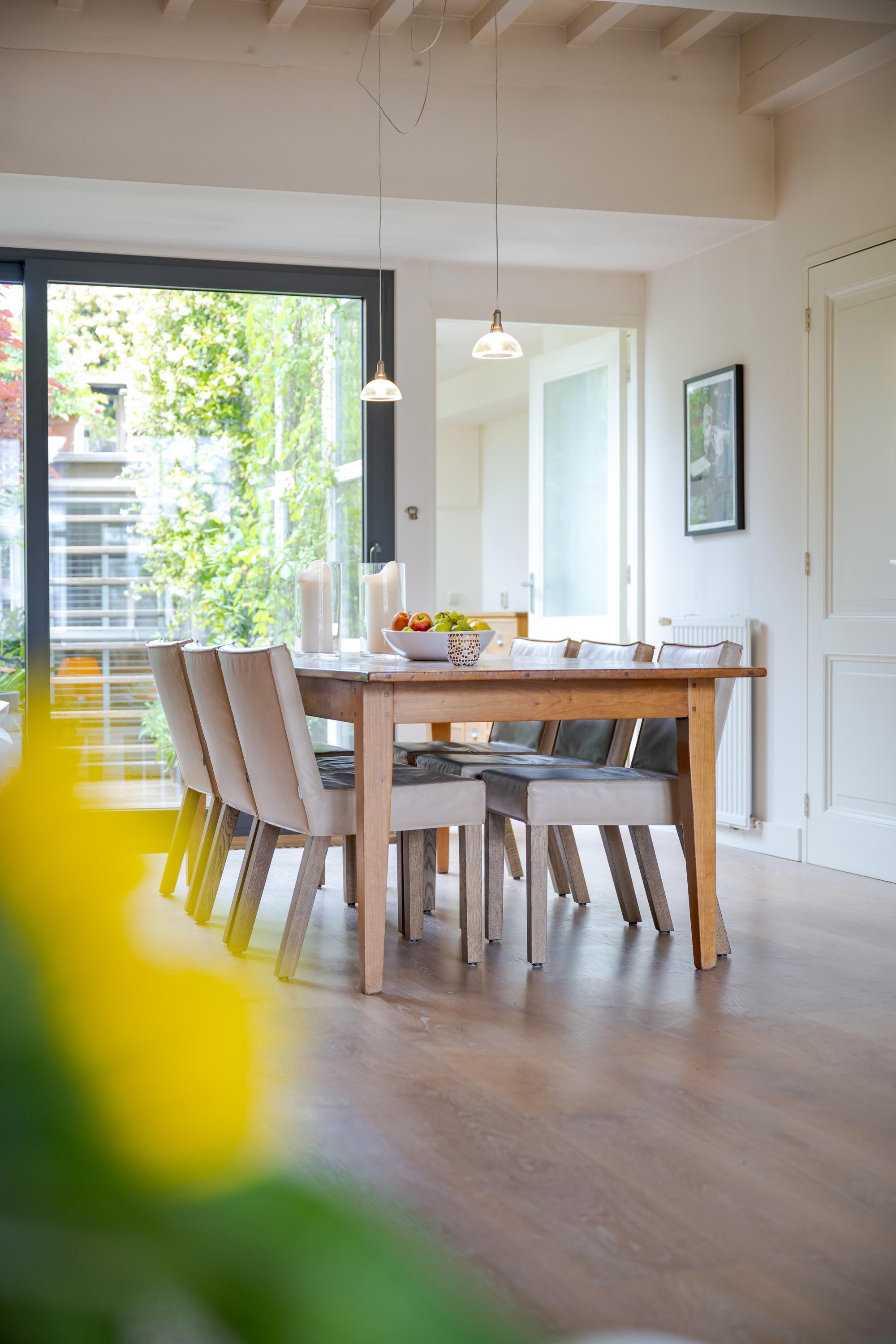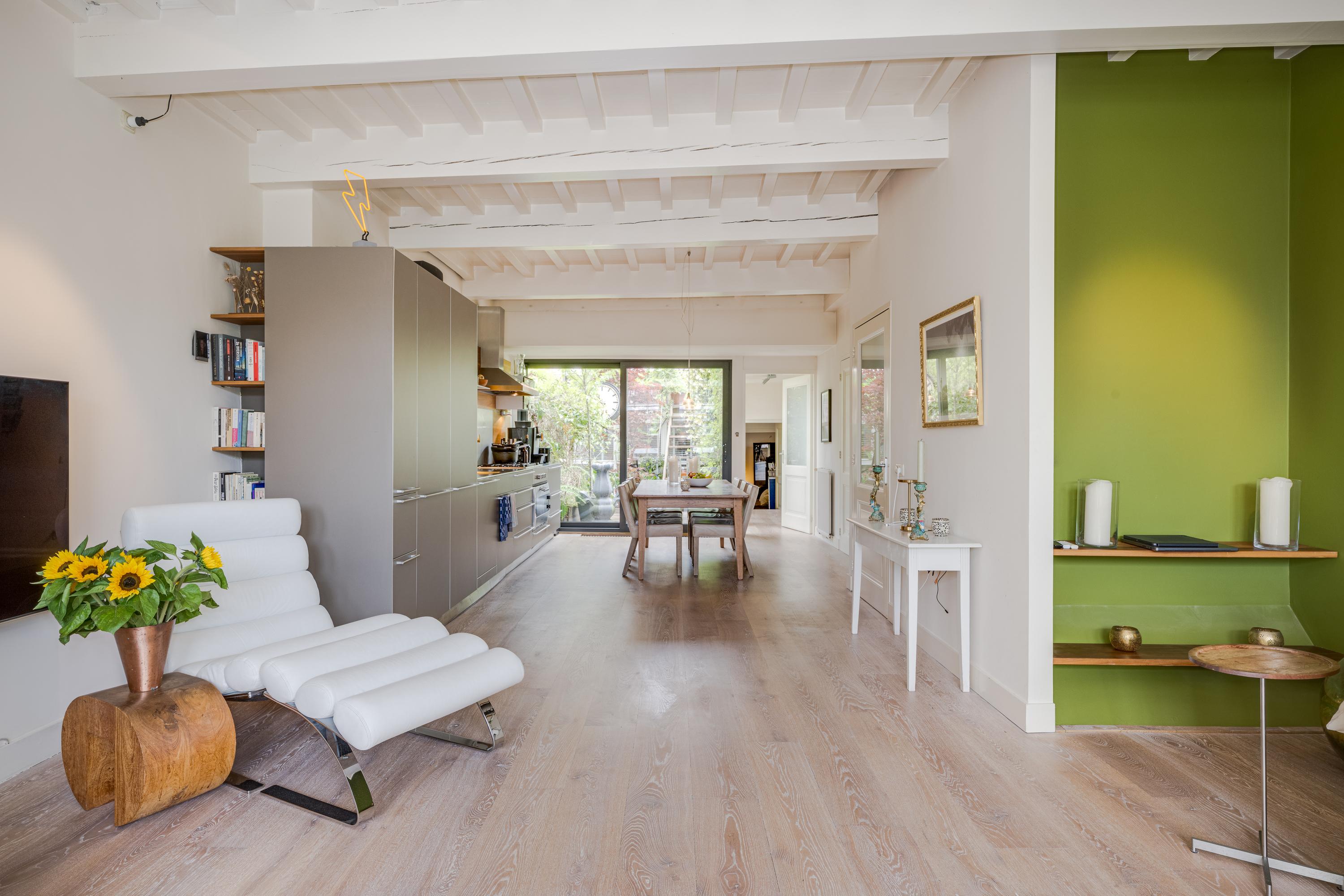 What also makes this property unique is the remarkable combination of a stately, classic façade on the canal side (three windows wide, facing south) and a surprisingly spacious rear garden of over nine meters. On the first floor, at the heart of the house, lies a colorful courtyard garden, and a dozen steps up, a spacious and sunny roof terrace with plenty of privacy and several seating areas.