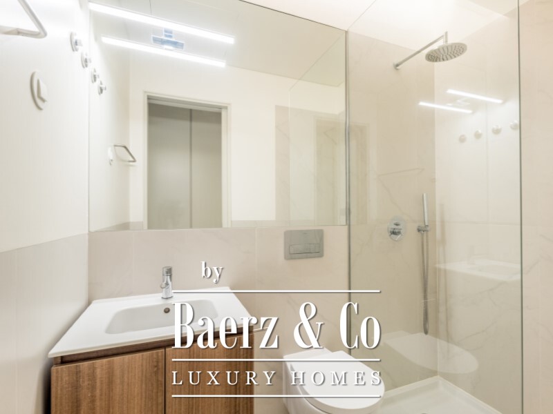 Both bedrooms are en suite, with wardrobes for considered storage, complemented by a guest bathroom for visitors. The living room and kitchen blend in a single open space, fully equipped for quiet evenings or convivial gatherings. Views extend into a private 21 m² garden, inviting rare moments of tranquillity in the city centre.