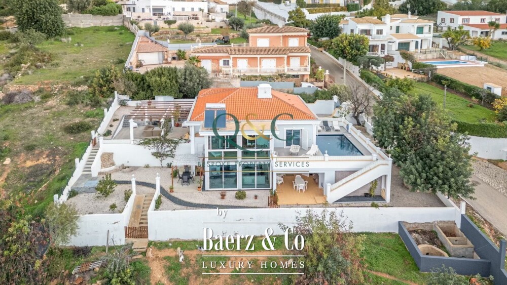 Sitting on 900 m² of the main plot, the property also includes an adjacent building plot of approximately 600 m², offering future opportunities from guesthouse construction to expanded gardens. Features such as air conditioning, solar hot water, security, fireplace, and built-in garage further support comfort. With panoramic sea and countryside views and a versatile layout, this detached villa Loulé is suited for family life, multi-generational living, or as a luxury villa for sale in Loulé appealing to discerning investors.