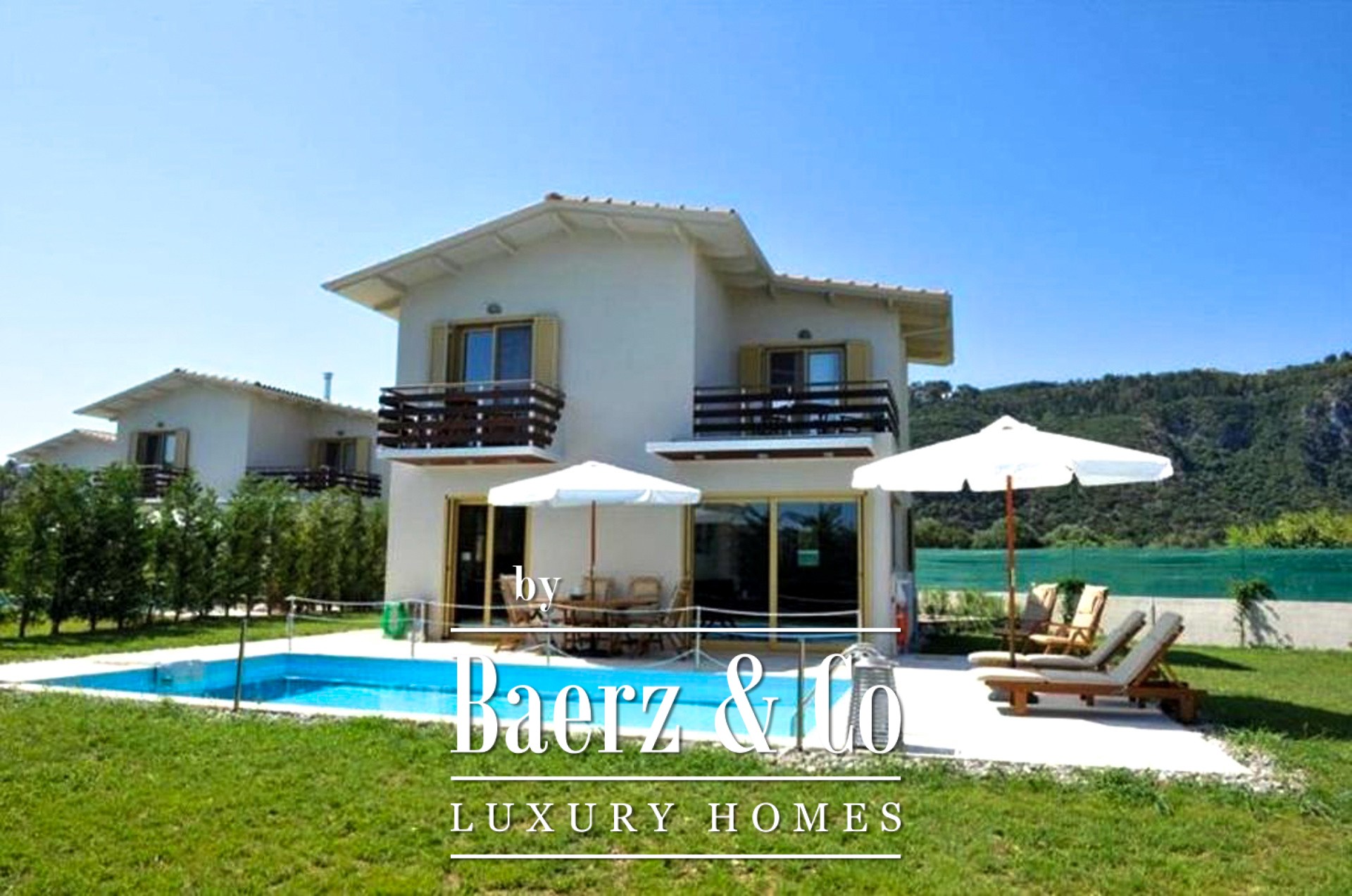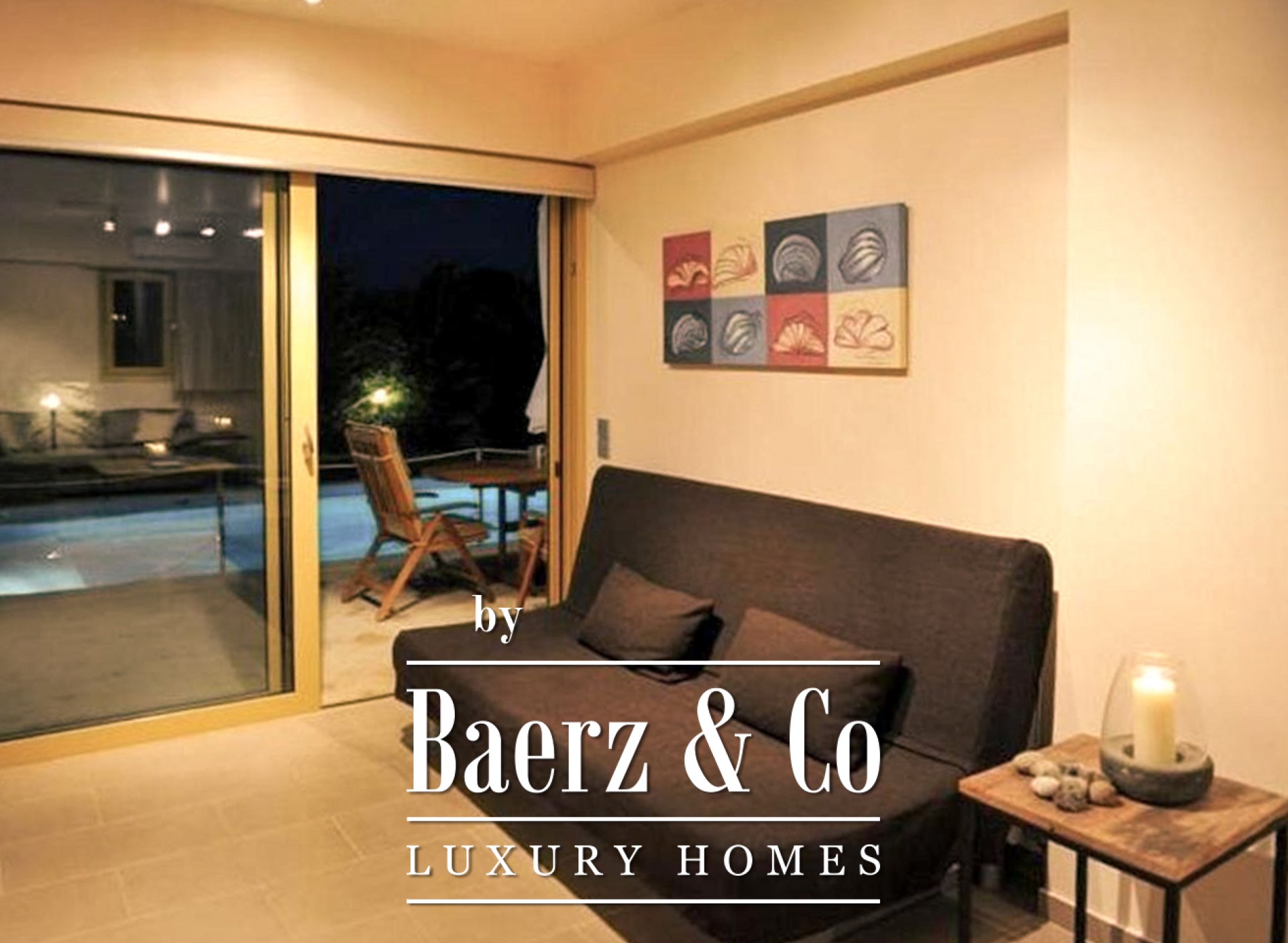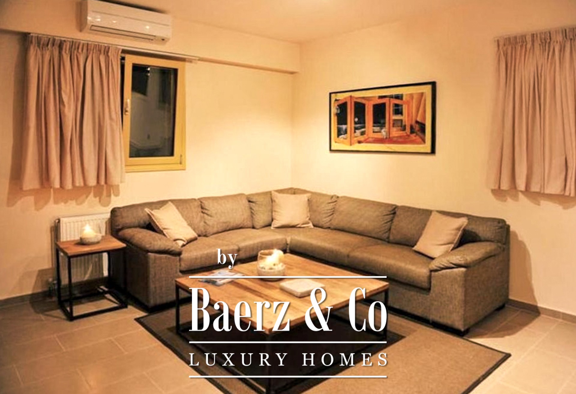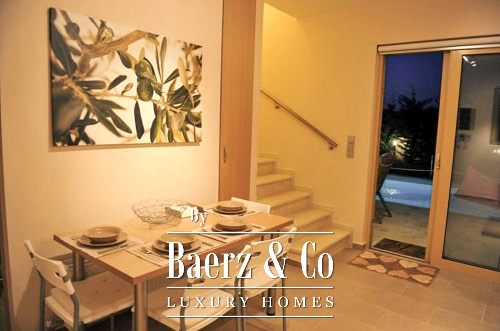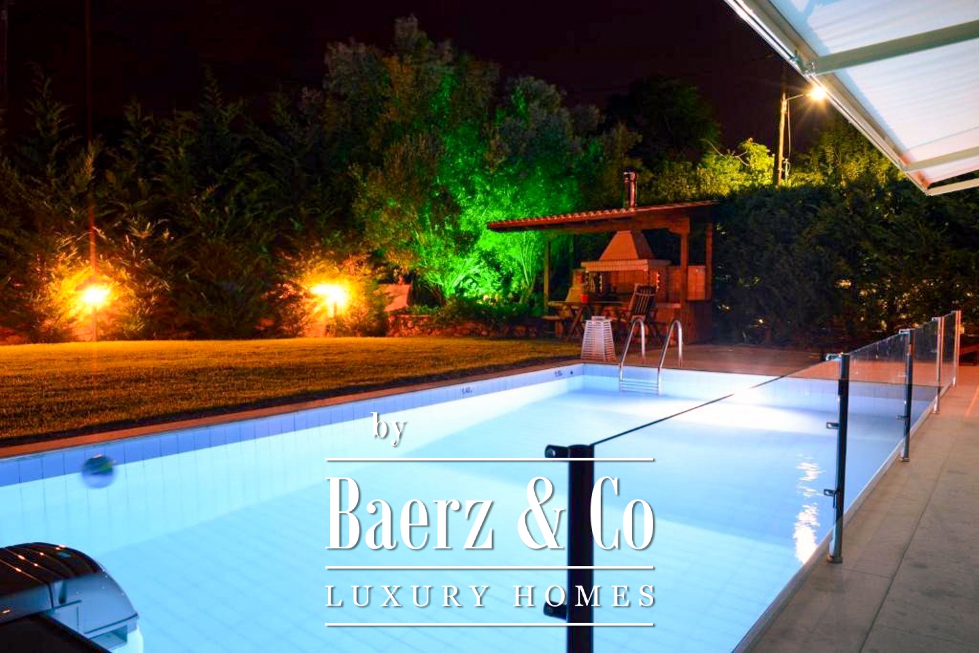 Detached house Agios Ioannis Lefkada is discreetly situated in a prime, tranquil setting just minutes from Lefkada Town and within 500 meters of the sea. This residence, built in 2011 on a 640 m² plot, offers 94 m² of interior space complemented by a private 30 m² swimming pool and thoughtfully landscaped gardens. The house spans three functional levels, with the ground floor opening to a living room featuring an energy-efficient fireplace, a fully equipped kitchen, a WC, and a lounge area. Upstairs, two bedrooms each enjoy en-suite bathrooms and access to three separate balconies, framing sea and unobstructed views. The basement houses a storage room, boiler room, oil tank, and a 160L boiler.