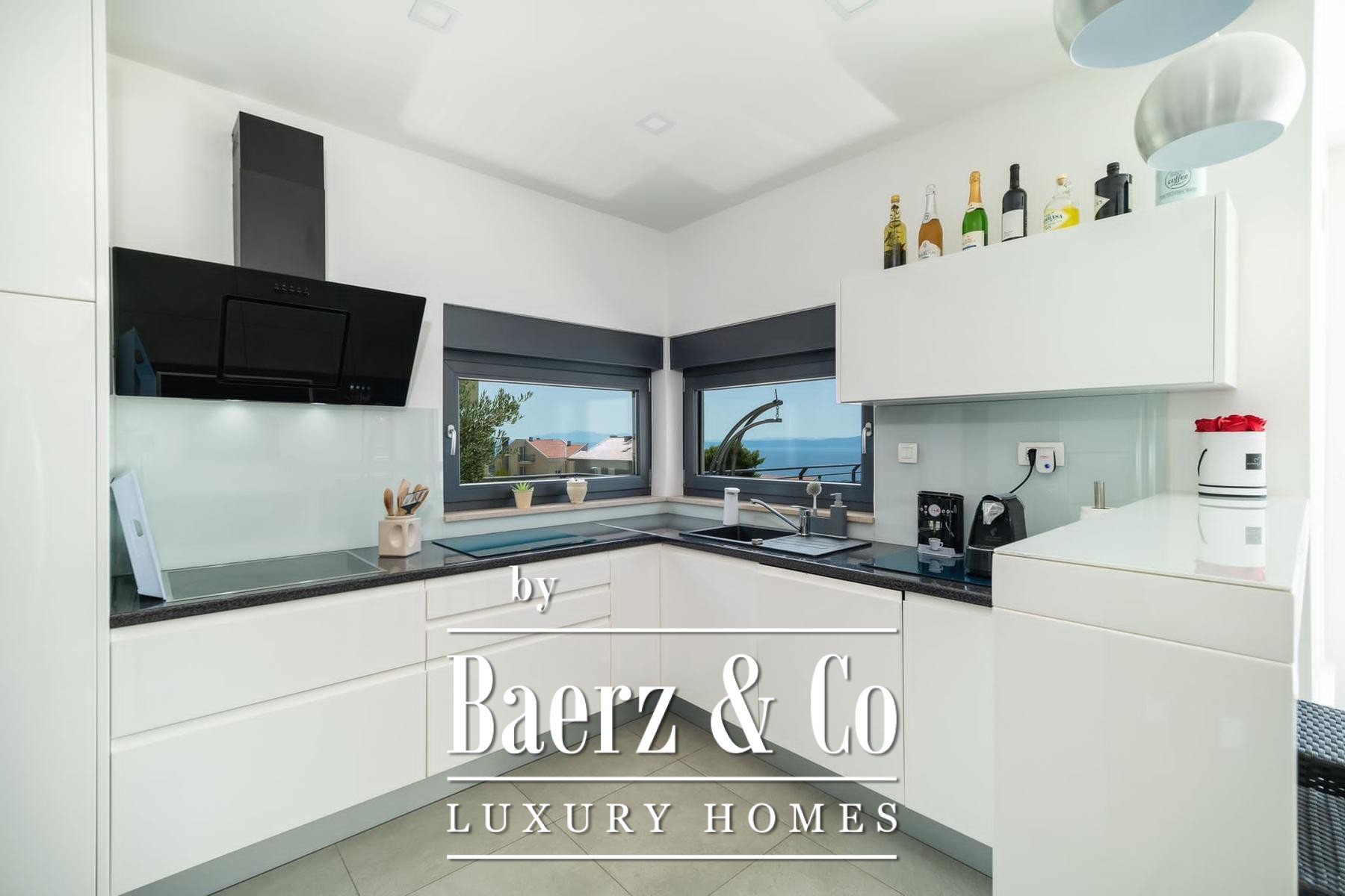 Villa Makarska occupies an elevated position, delivering panoramic views across the sea and the historic town below. This villa in Makarska stretches across 450 m² of living space, integrated into a 448 m² plot that articulates a clear connection between interior and exterior living. The south-facing orientation ensures constant natural light in every principal room, enriching daily life with views that shift from dawn to evening.