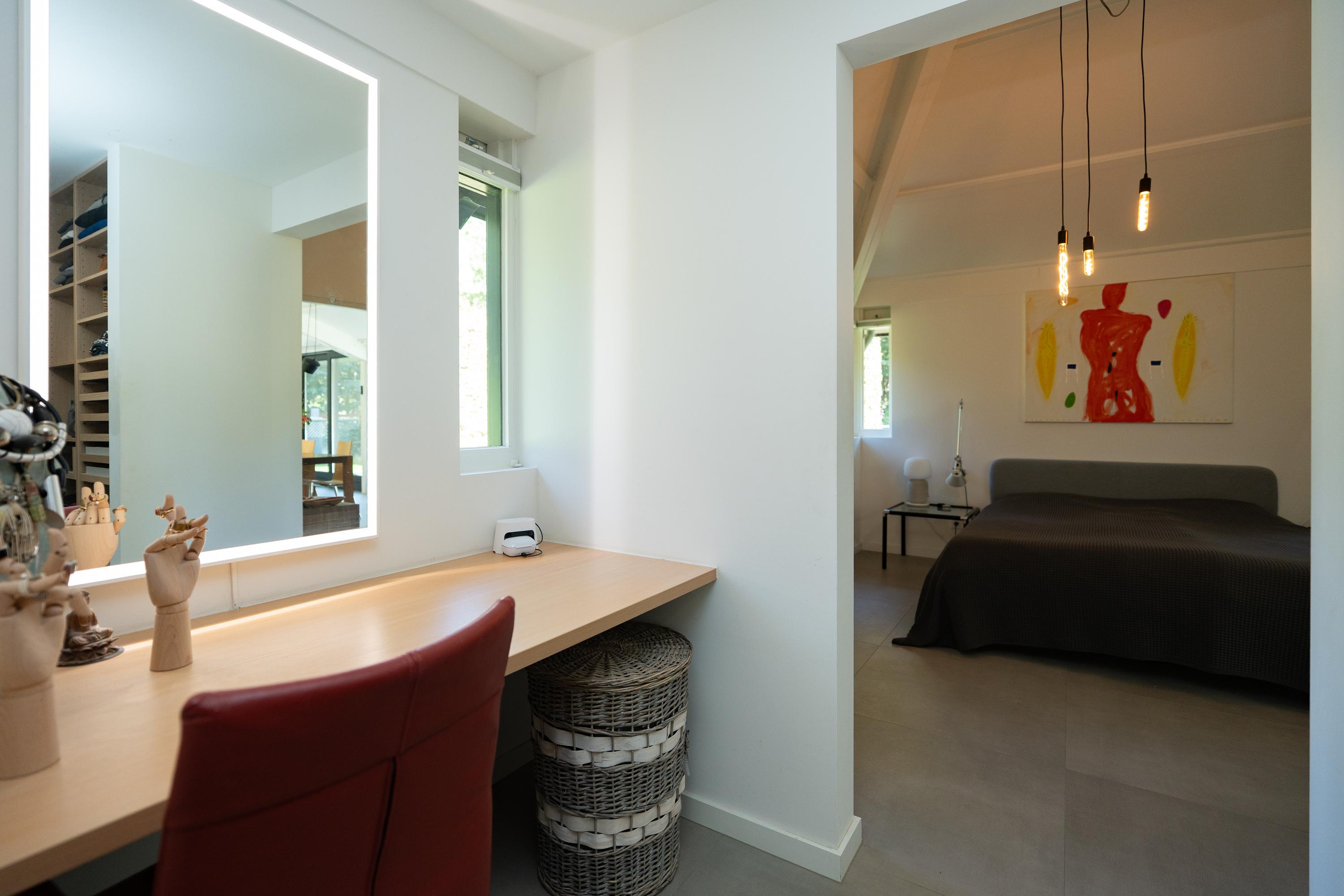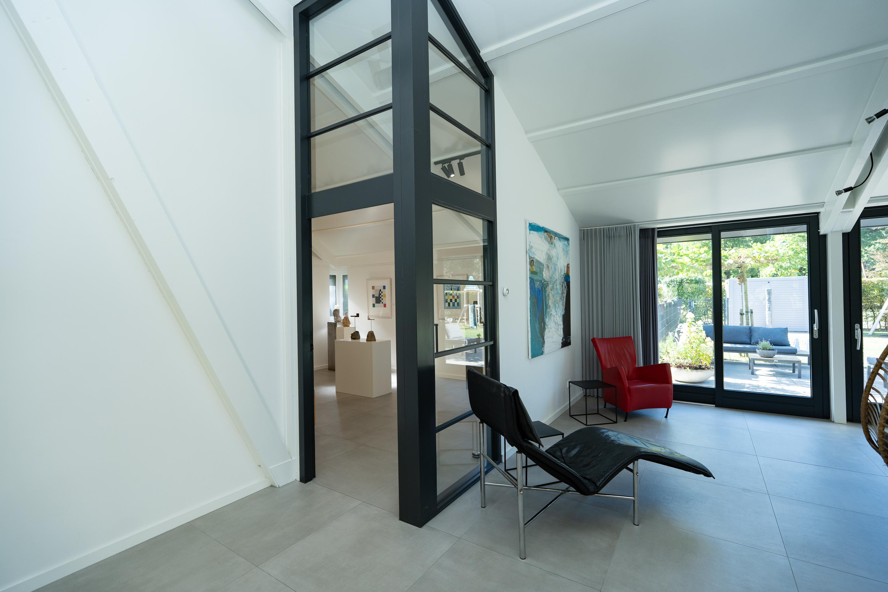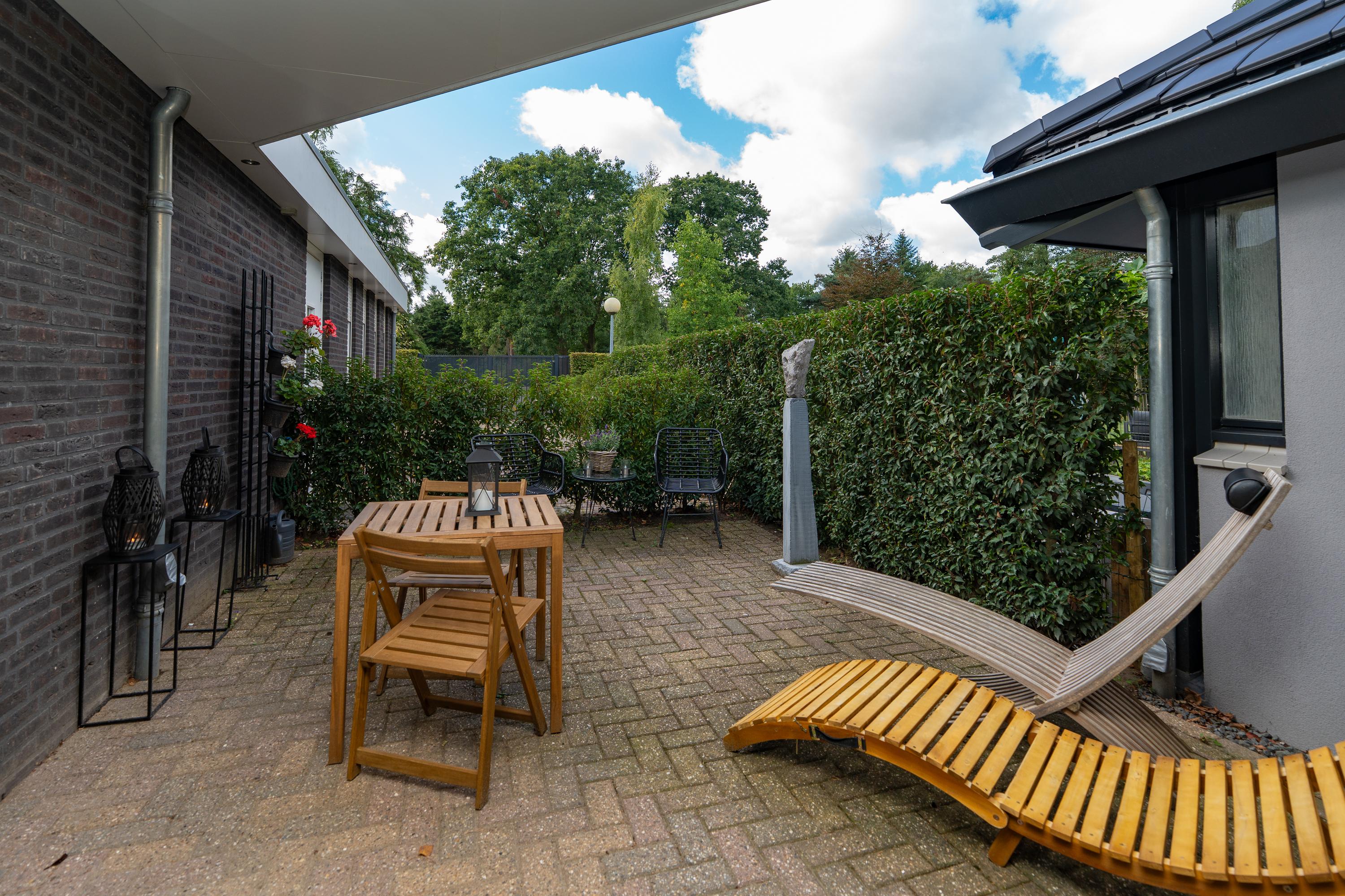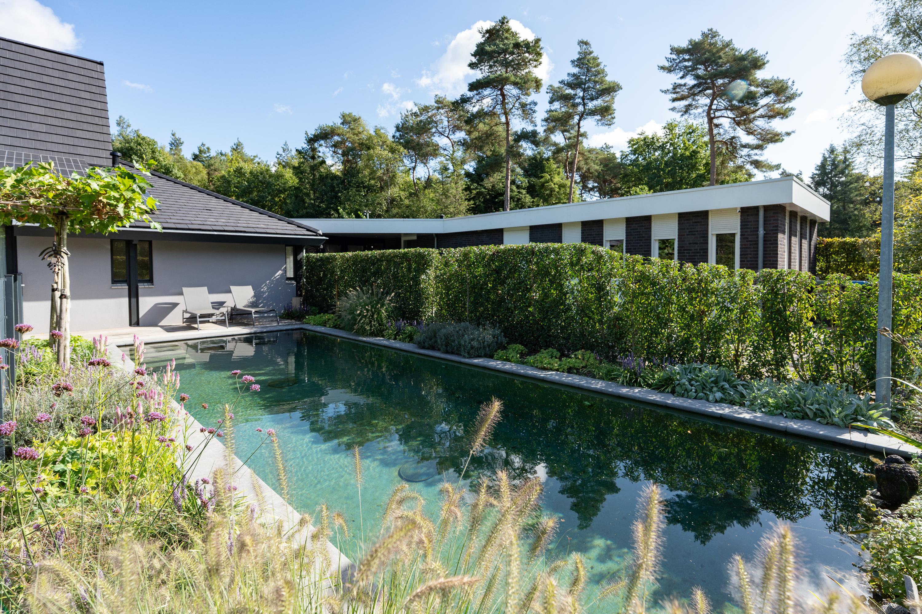 This bungalow offers a great opportunity to live on one level and still enjoy a garden, in one of the most popular residential areas in the region! In addition to the spacious living area, the house has a multifunctional (studio) space with its own entrance, kitchen and bathroom. There is also an attached workshop with a kitchenette and separate toilet, offering additional possibilities for a hobby or practice space. Together with the sustainable renovation and the beautiful swimming pond, this makes it a particularly versatile home.