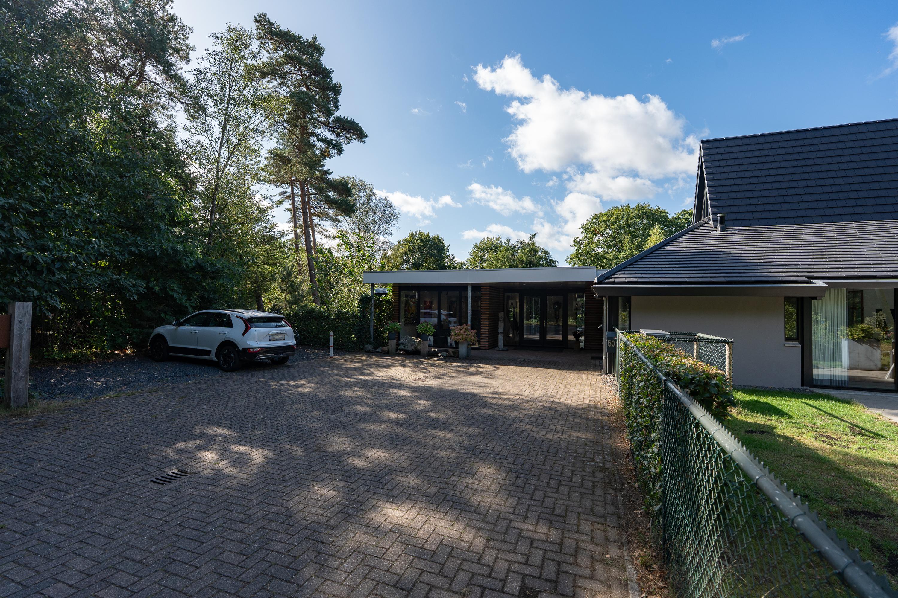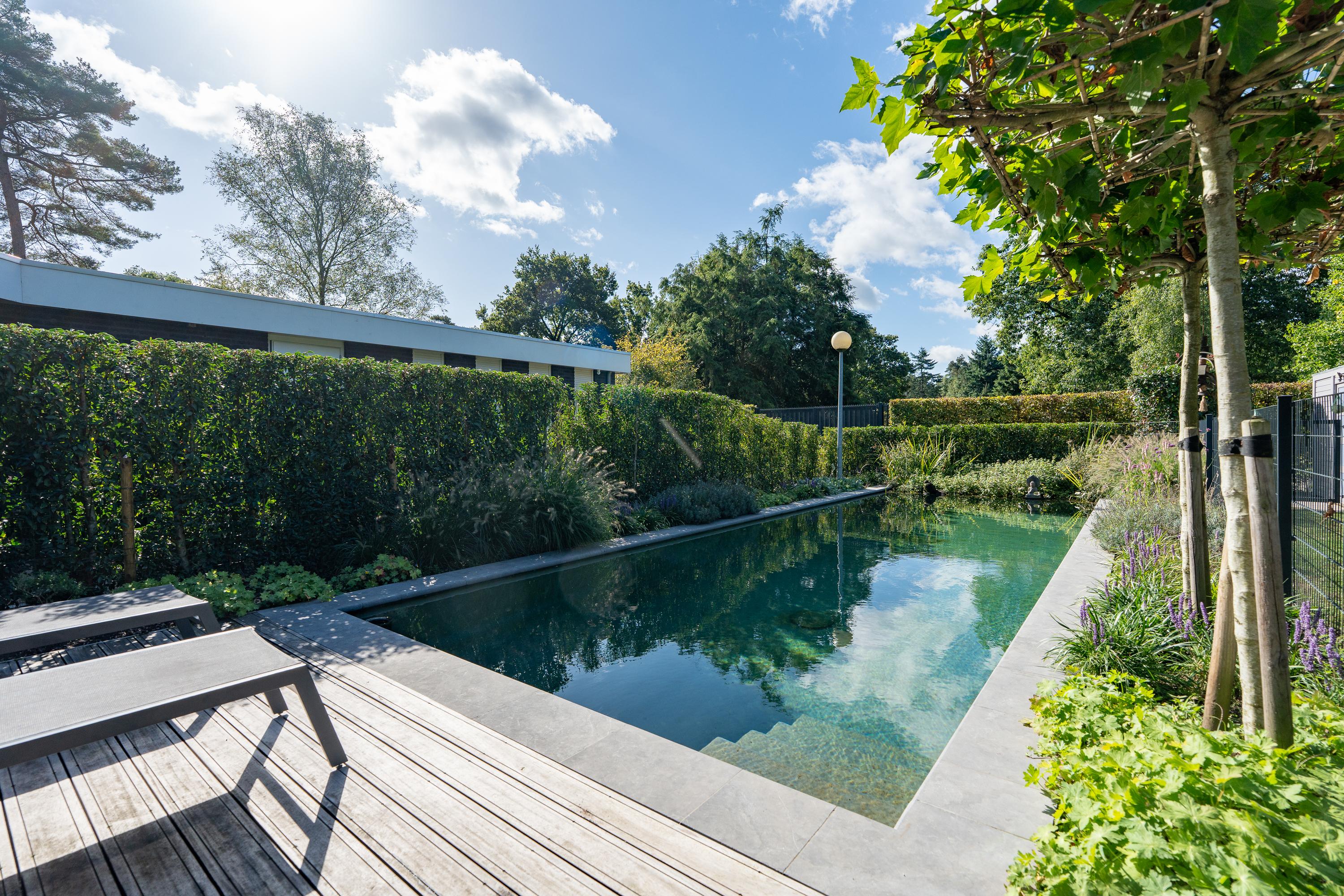 The property is surrounded by a well-maintained front, side and back garden, with several terraces so you can find a nice spot in the sun or shade at any time of the day. There is also an additional storage room. The fenced swimming pond is a real eye-catcher and gives the garden a special look. There is also ample parking space on the property.