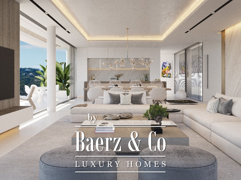 Each villa, between approximately 500 m² plus terraces and expansive gardens, is situated on plots ranging from 1,107 m² up to 10,005 m². Generous, light-filled living spaces are heightened by windows that vanish into the walls, allowing the lounge to merge seamlessly with the terrace. The inside flows naturally outside, supporting year-round Mediterranean living. Three to four en-suite bedrooms ensure privacy and comfort, while selected residences include garage parking or covered spaces. Custom-designed furnishings and curated art elevate the interiors for those who value provenance and individuality.