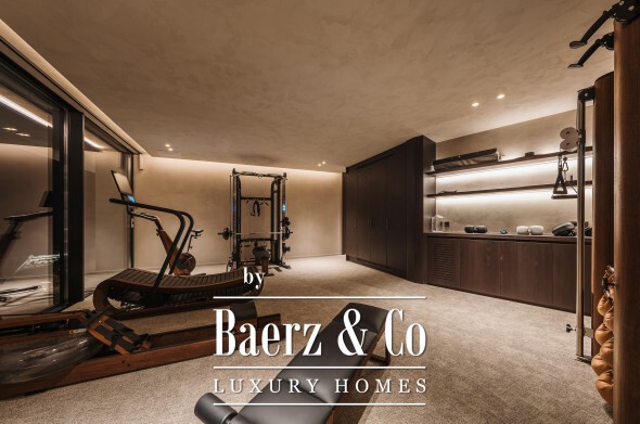 A cosy main living room boasts an integrated fireplace. Chic wood panels and exposed brick offer up an immaculate, healthy ambiance in the lounge. Another fireplace divides a magnificent Master bedroom and a luxurious bathroom, both with wooden floors and feature walls. Imagine waking up to awe-inspiring sunrises, savouring the tranquillity of the surrounding nature of Monte Mayor, and witnessing sensational sunsets from the comfort of your own home. In a sleek fully fitted kitchen and dining area space, modern accents steal the show. Cooking will be an art and fun in all 4 inspiring kitchens (of which one for a personal chef) equipped with superb Gaggenau appliances including gas, induction, teppanyaki and BBQ. A walk-in refrigerator of 6 m² provides fantastic access and ample storage space. Interior design by Signature Design concepts.