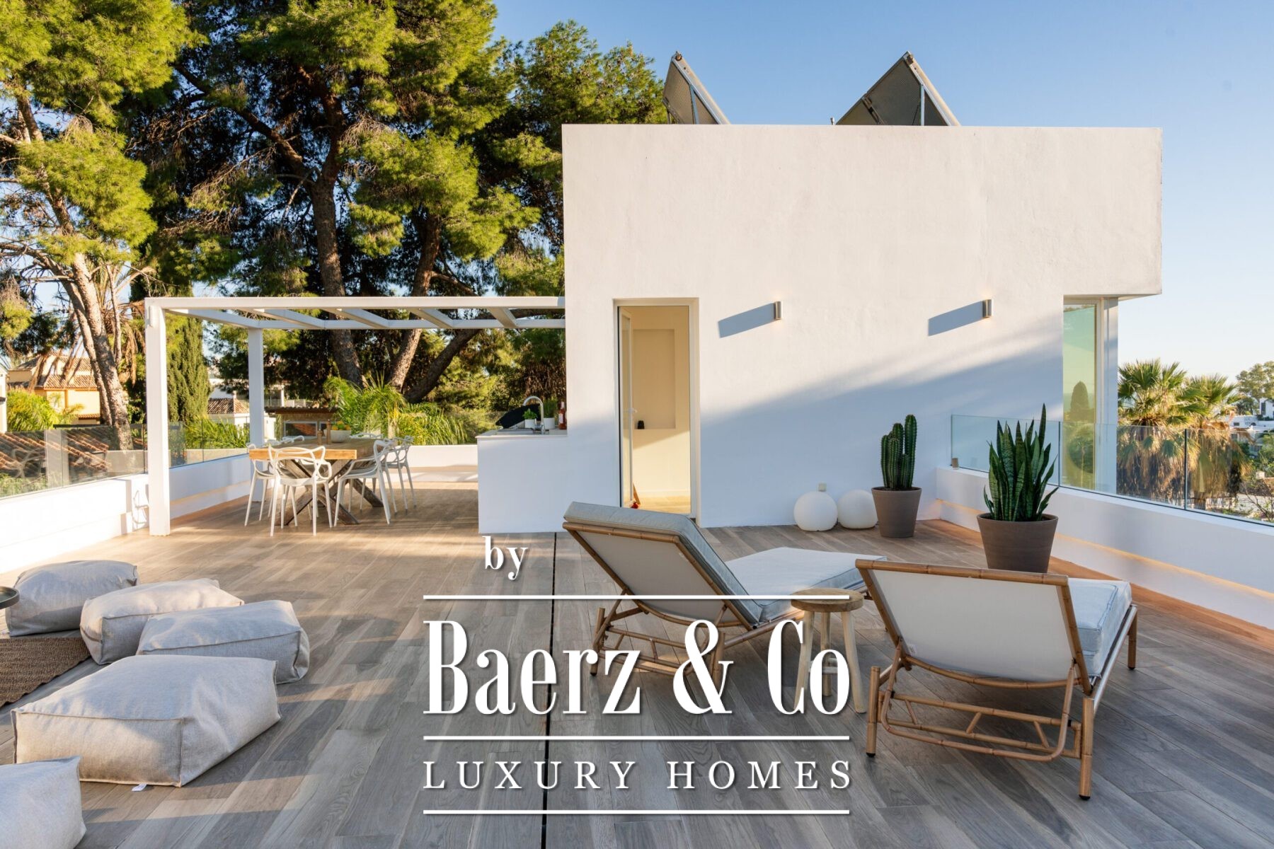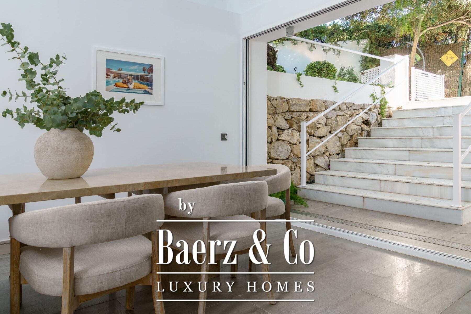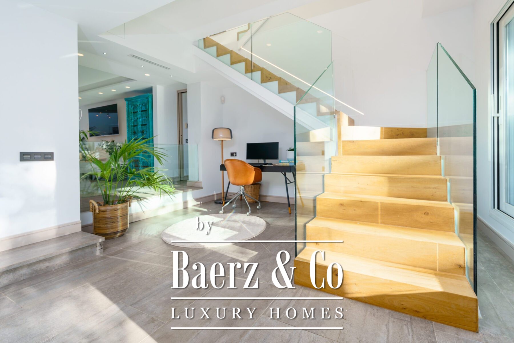 Villa Nueva Andalucía with sea and mountain views stands as an elegant example of contemporary architecture meeting thoughtful transformation. Across 310 m² of living area on a 1,150 m² plot, the villa offers a sense of calm in a coveted Marbella address, with effortless access to local shops, renowned restaurants, and essential services within walking distance.