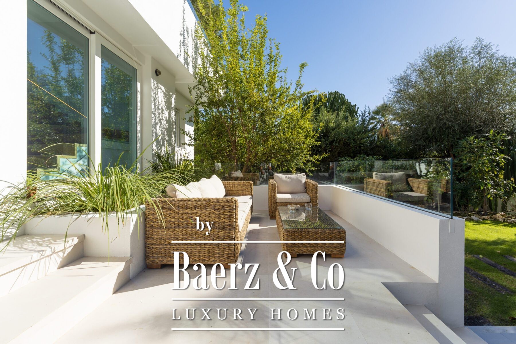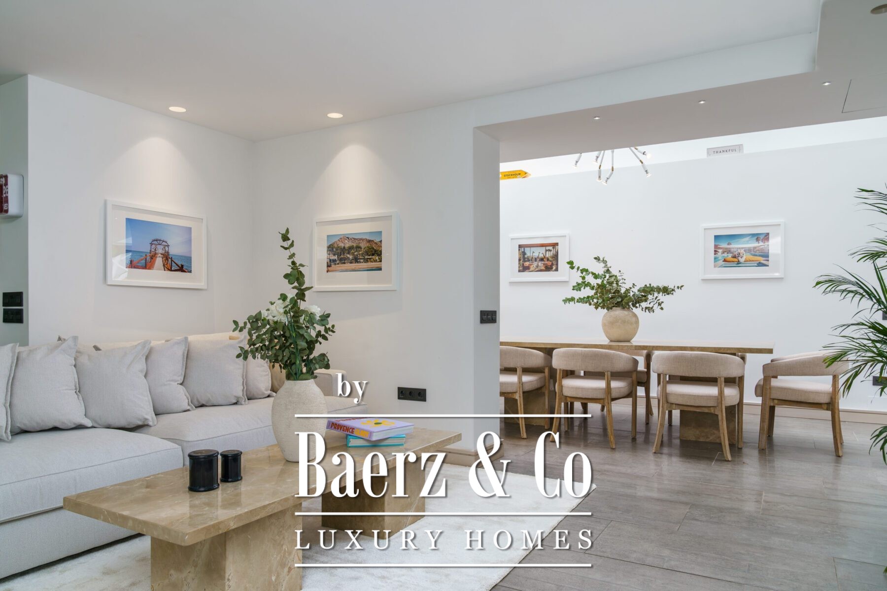 Set in lower Nueva Andalucía, the villa is moments from the beaches, Centro Plaza Shopping Center, distinguished schools, and celebrated golf clubs such as Las Brisas and Aloha Golf. The tranquil setting, comprehensive amenities, and modern elegance establish this property as a sophisticated choice for those seeking a luxury villa for sale in Nueva Andalucía.