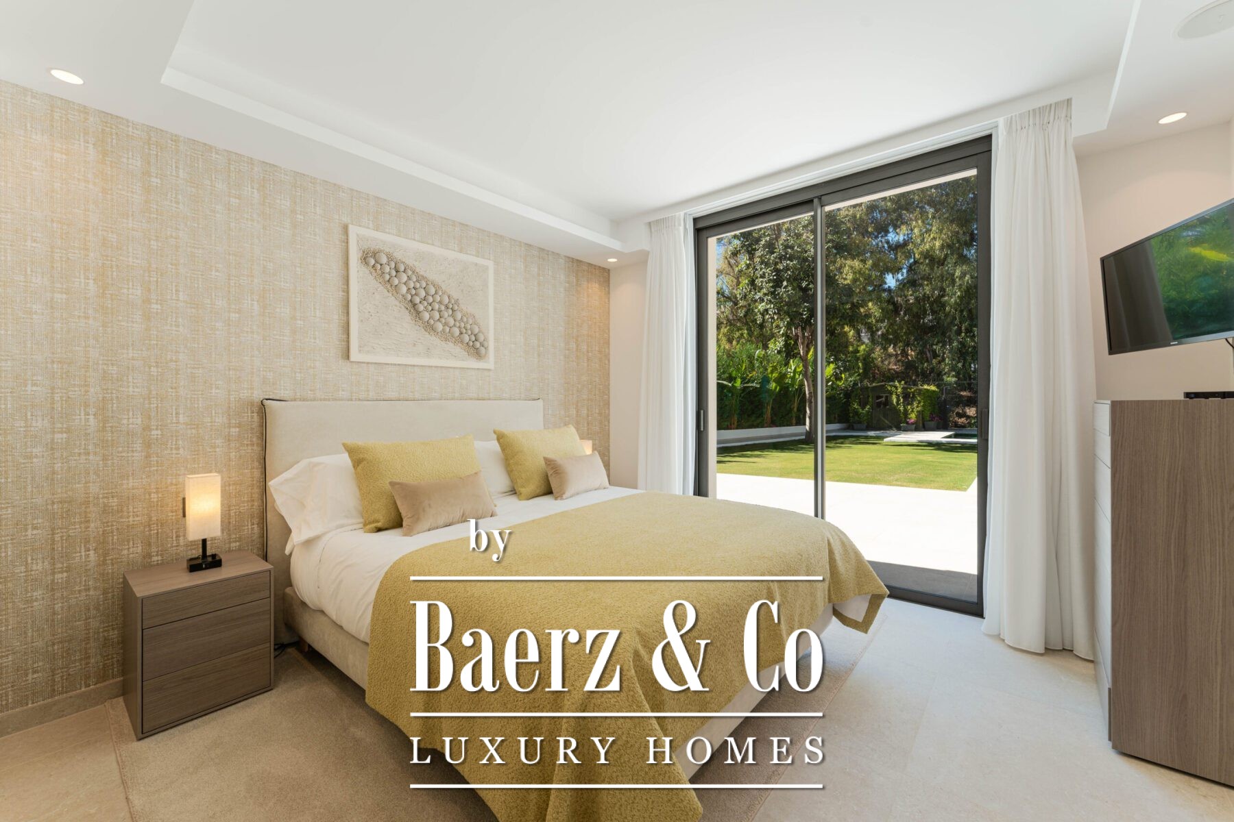Carefully landscaped grounds enclose a private, heated swimming pool and generous terraces equipped with an outdoor kitchen, dining area, and chill-out zones for timeless alfresco living. Features such as underfloor heating, zoned air conditioning, and advanced security meet the expectations of international buyers. The villa offers total privacy while maintaining proximity to top international schools, Marbella Sports & Tennis Club, and seamless AP-7 motorway connectivity.