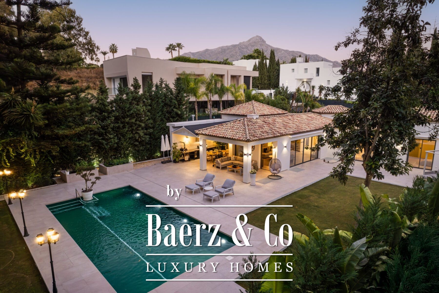 This villa for sale in Nueva Andalucía Marbella combines exquisite architecture and spatial harmony with a location of enduring value, appealing to those who seek a discreet lifestyle without compromise.