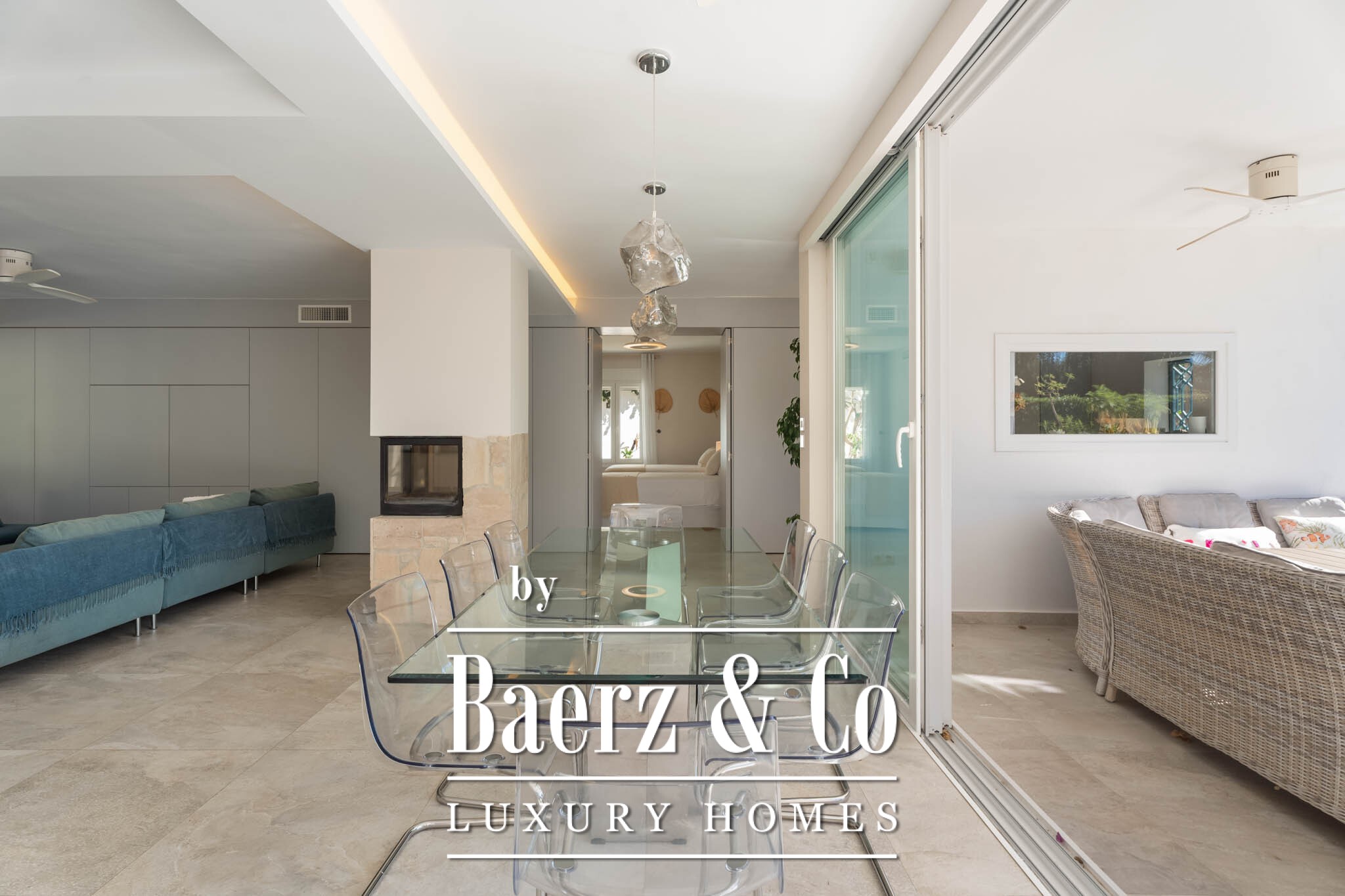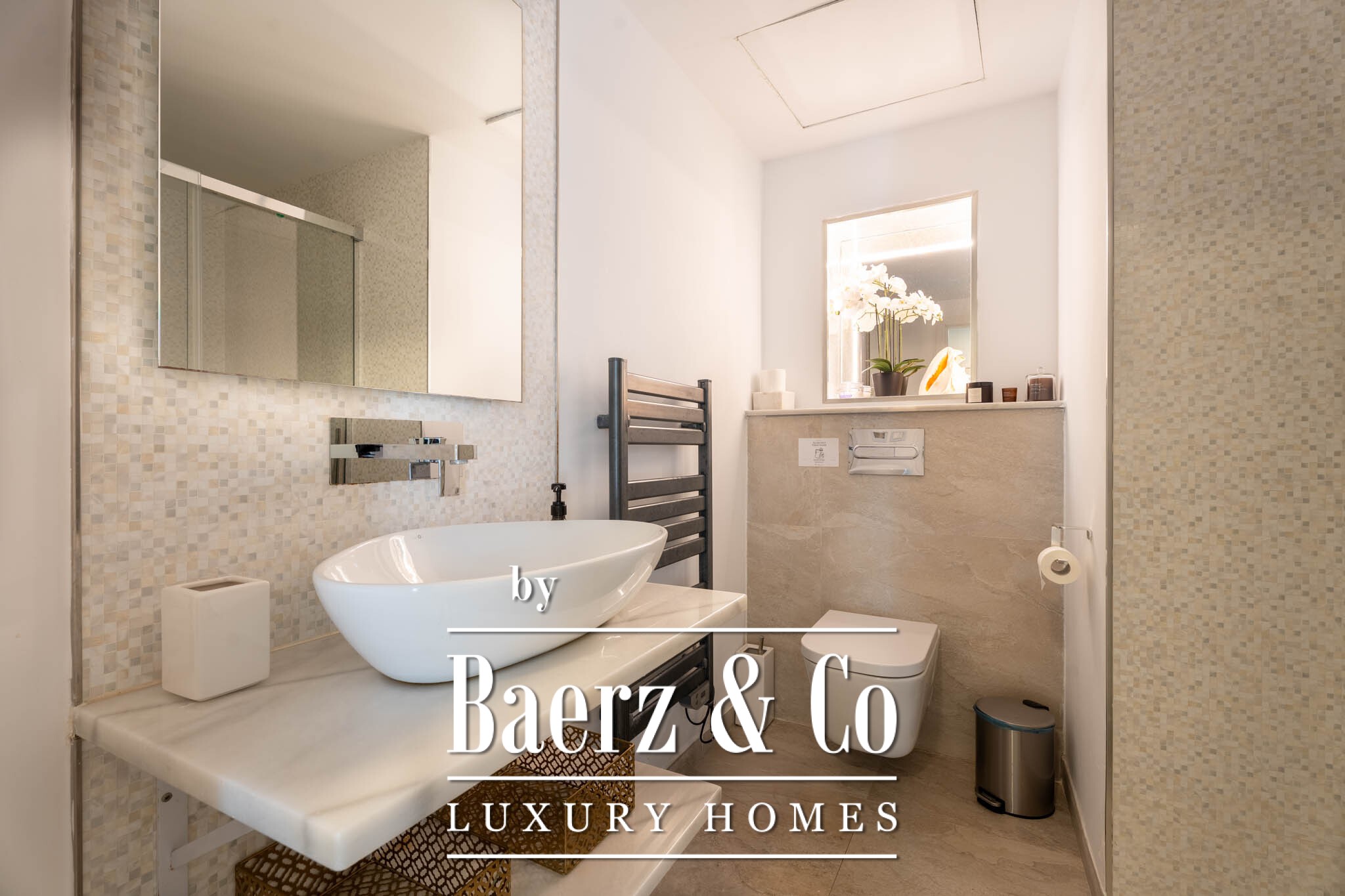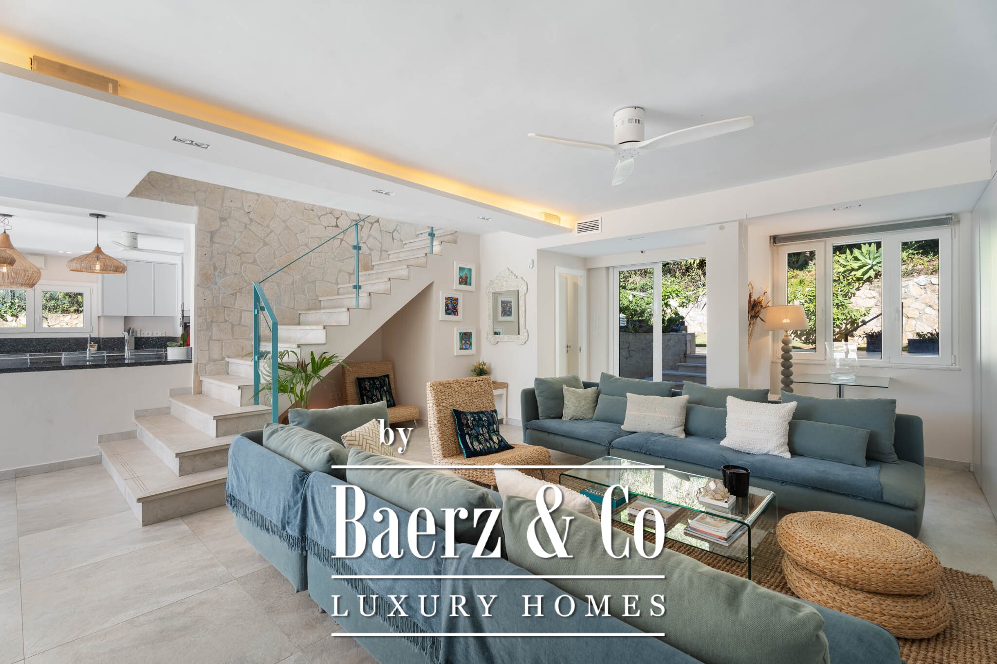 Multiple terraces, a solarium and thoughtfully landscaped grounds ensure year-round enjoyment. The villa integrates solar panels, dual car parking, air conditioning, a surround sound system and the benefit of a touristic license. A 45 m² enclosed space on the lower level serves for storage or future adaptation.