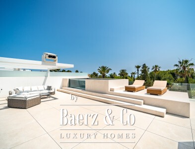 This semi-detached villa Marbella is situated in the heart of Nueva Andalucía, enveloped by the region’s most coveted golf courses and within moments of Michelin-starred restaurants, pristine beaches, and the vibrant energy of Puerto Banús. Completed in December 2023, the villa expresses a restrained contemporary vision, with approximately 423 m² of interior space, 246 m² of surrounding terraces, and a private garden measuring 91 m².