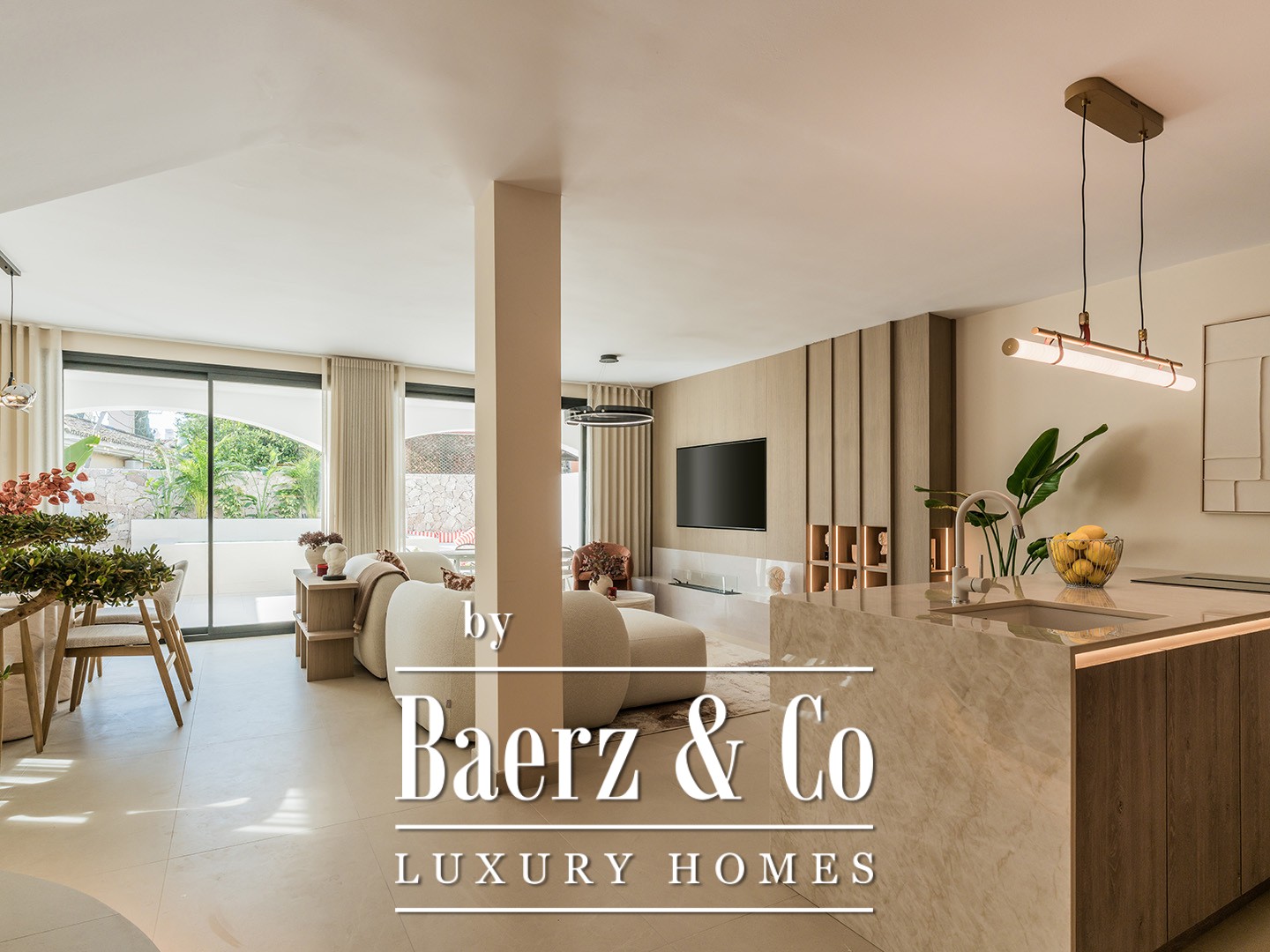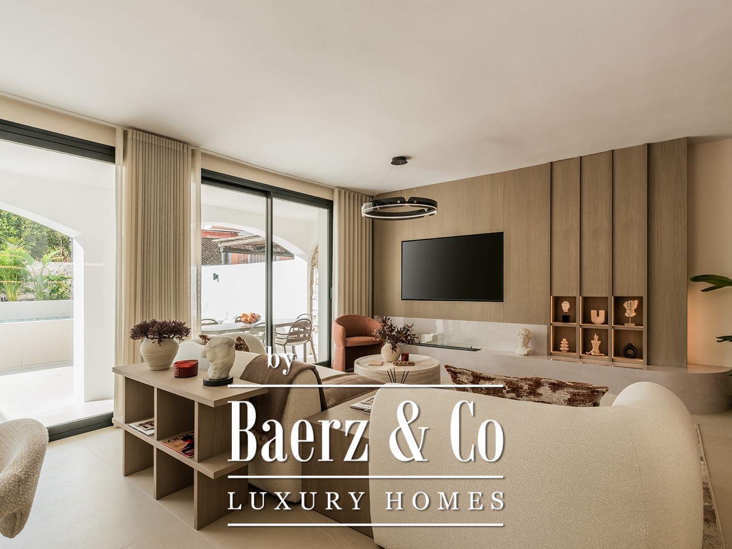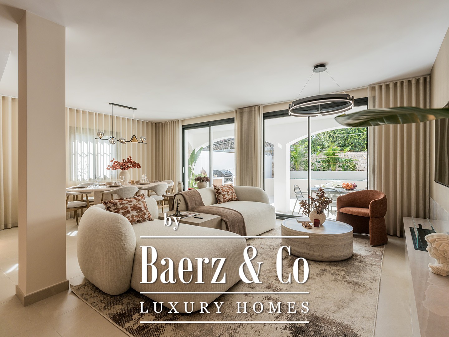 Semi detached house San Pedro Beach Marbella captures the essence of contemporary design and comfort in a coveted Marbella setting. This fully renovated home is nestled within a secure gated community just moments from the shoreline, offering both serenity and connectivity. With a living area of 163 m² on a 170 m² plot, the residence seamlessly blends elegant interiors with outdoor living.