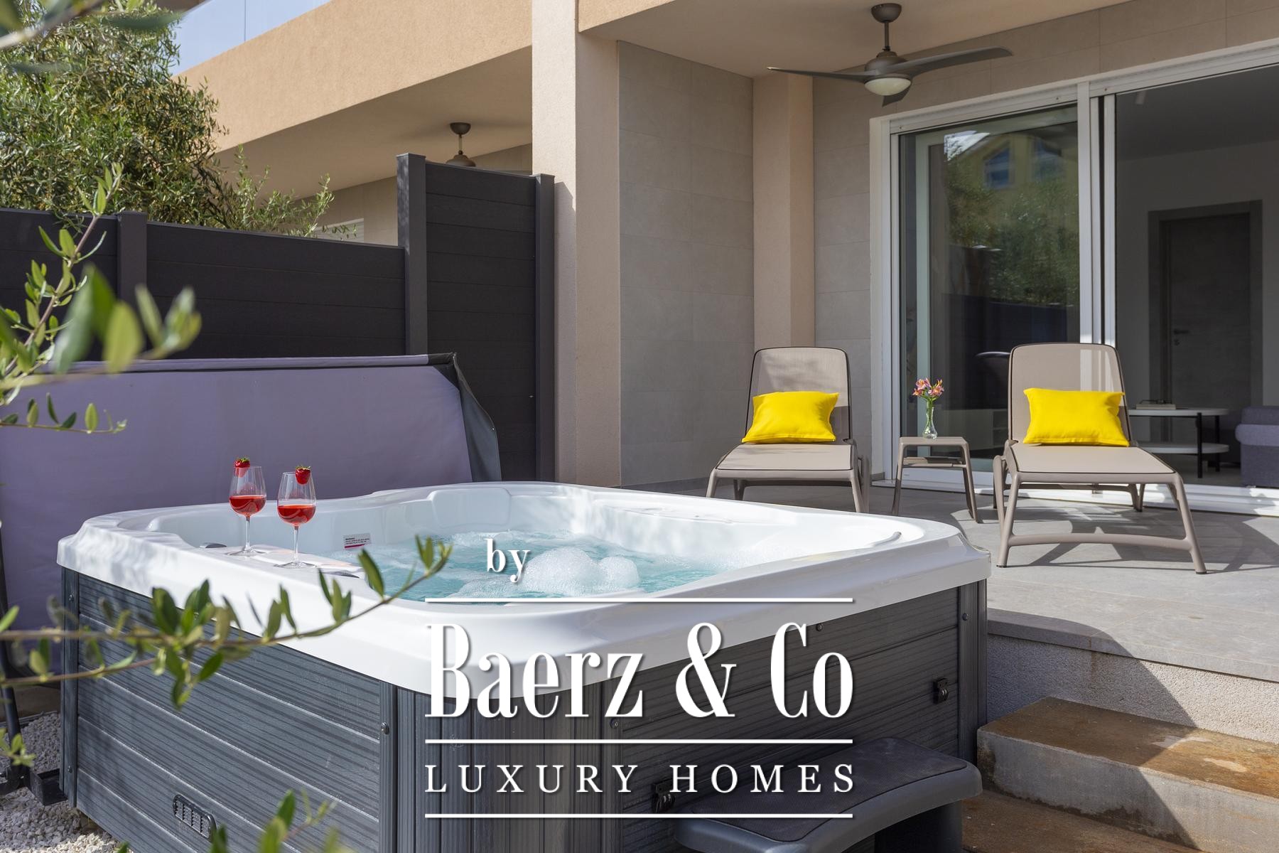 Details such as air conditioning in every room, PVC joinery with mosquito screens and electric shutters, as well as solar panels, reflect a commitment to comfort and efficiency. The landscaped garden, enriched with olive trees, an irrigation system, and a jacuzzi, creates quiet outdoor spaces, while two parking spots, an electric vehicle charging station, and the possibility for more highlight practical modern living. Medulin’s promenade, marina, and proximity to Pula International Airport support a pace of life that is as steady as it is connected. This is a luxury villa for sale in Medulin where family living and investment meet with understated refinement.
