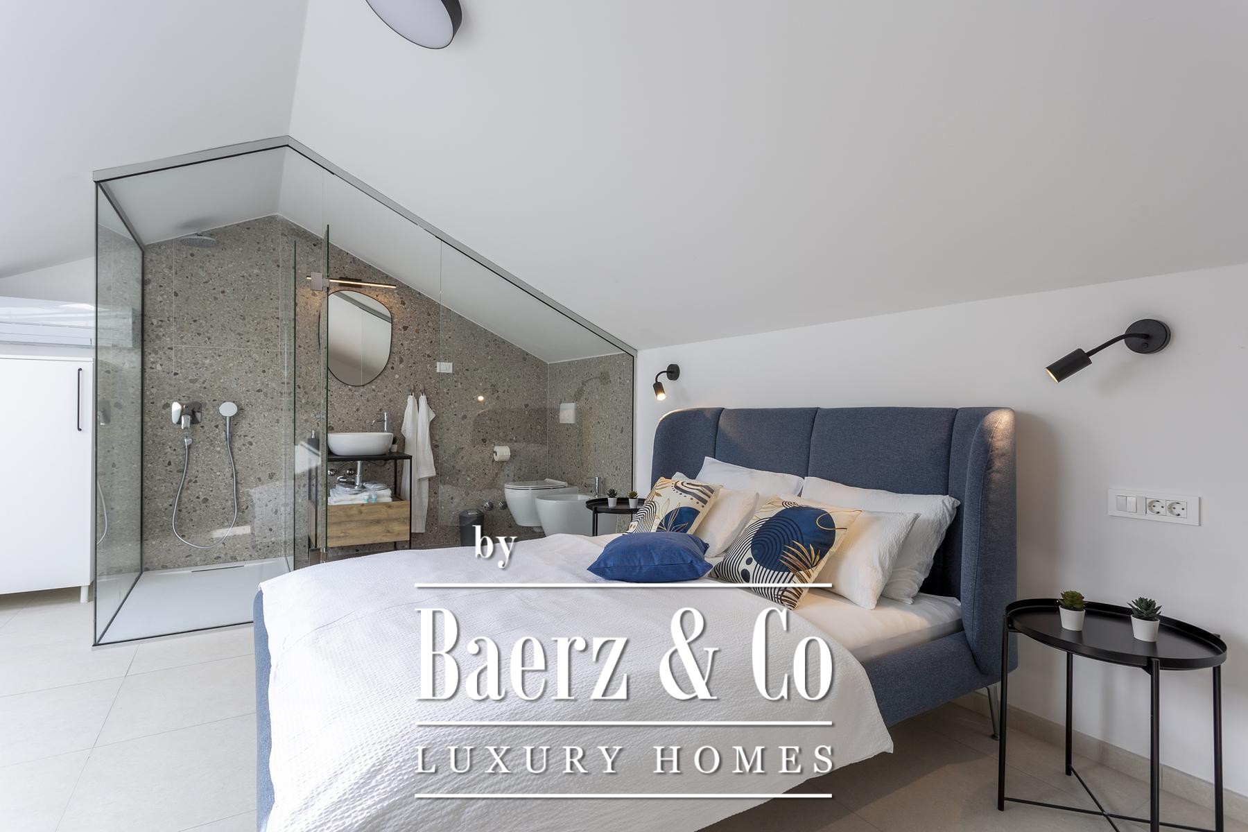 Spanning four thoughtfully arranged levels, the house opens with an expansive ground-floor living area, seamlessly connecting kitchen, dining, and lounge spaces. Each level maintains a natural flow, from the terrace-linked bedrooms on the first floor to the panoramic second-floor terrace with a summer kitchen. The attic completes the composition with a private en-suite bedroom. Throughout, four bedrooms and four bathrooms allow for versatile family life or guest accommodation.
