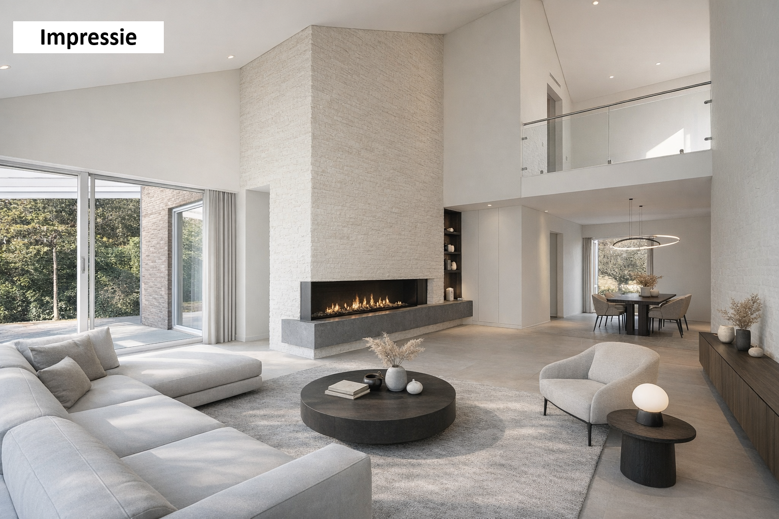 Spacious entrance/hallway with access to the living area, toilet, cloakroom, office space, meter cupboard, and kitchen. The spacious living room of approx. 42m² has an attractive loft. There is a beautiful view at the front and optimal garden contact at the rear through large windows and sliding doors. The dining room (approx. 9m²) can also be accessed from the living room and also has a garden view. The kitchen area (approx. 11m²) is equipped with U-shaped cabinets and various built-in appliances.