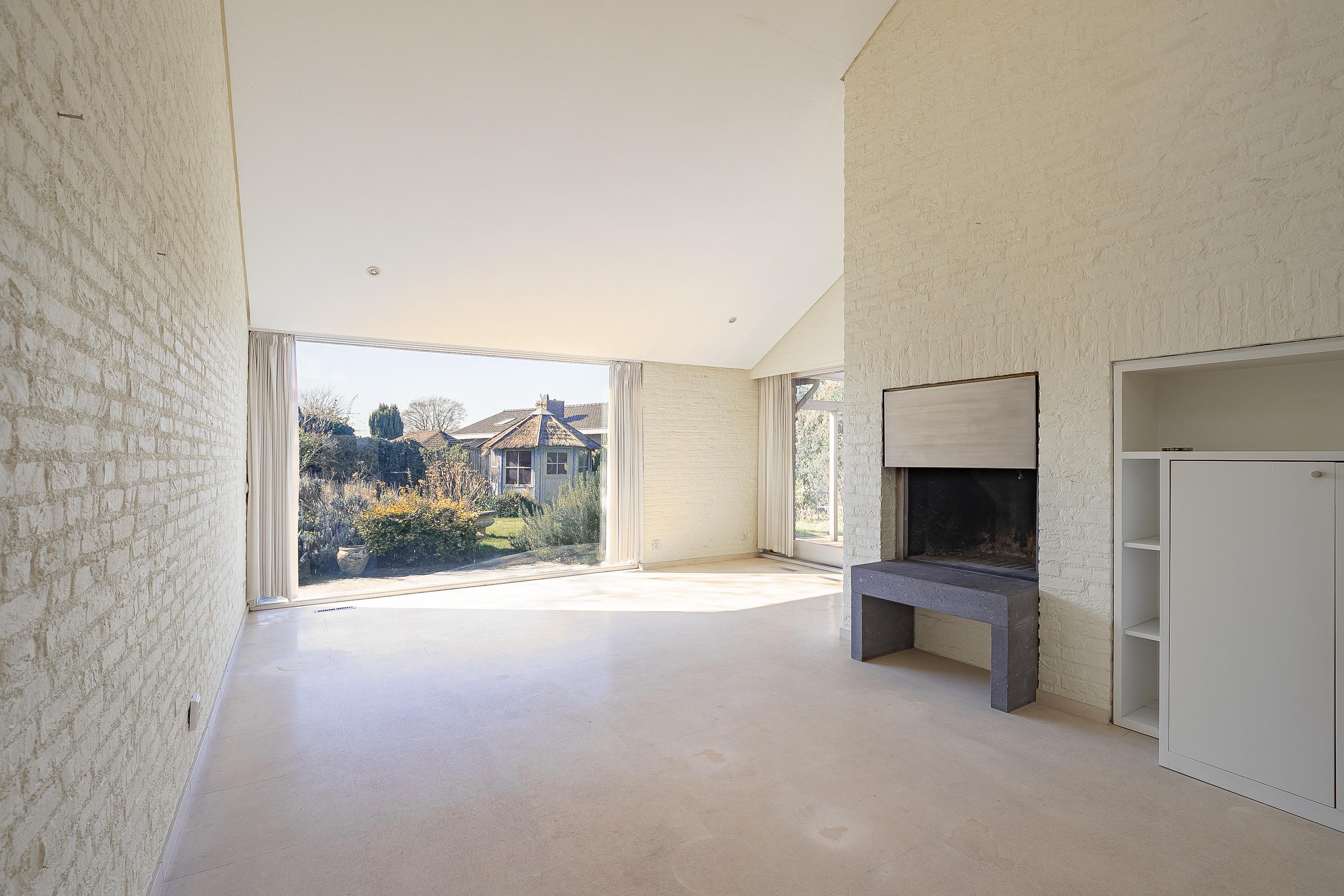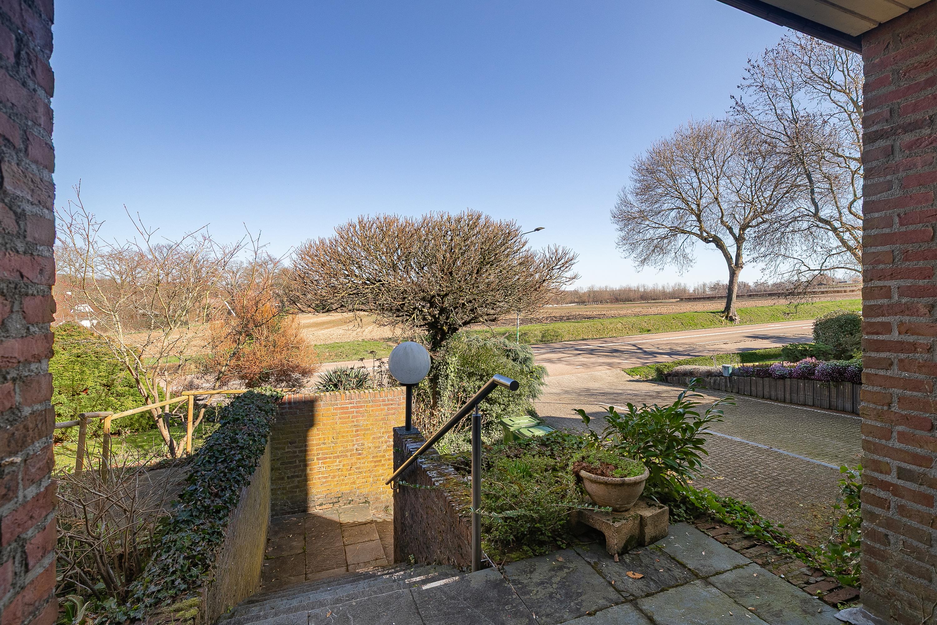The house is centrally located on the plot, resulting in spacious outdoor areas at both the front and rear. The sunny backyard is private and offers several terraces/seating areas with canopies, a lovely lawn, various mature plants, a practical garden shed, and a double back entrance. The front yard with spacious driveway offers panoramic views of the fields.