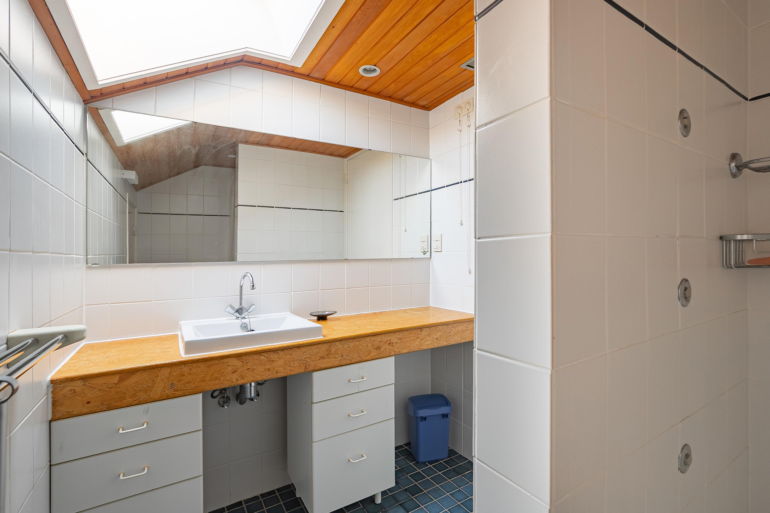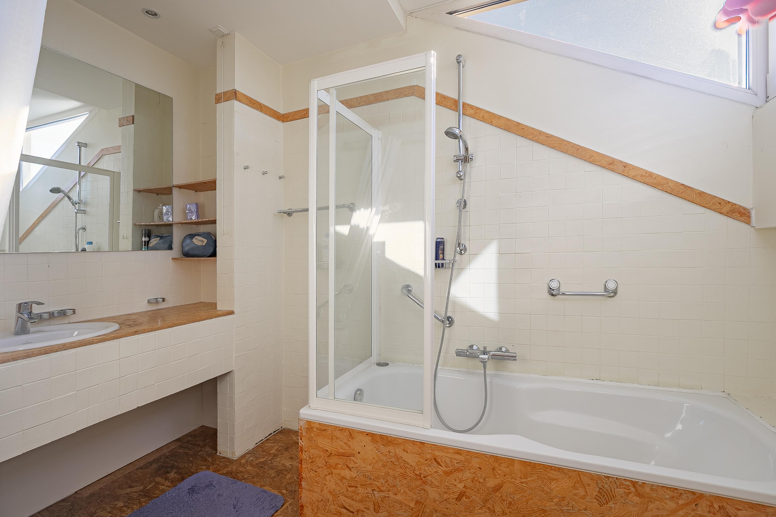 The beautiful semicircular staircase leads to the spacious landing with access to three bedrooms, a bathroom, separate toilet, and a hallway. The bedrooms at the front are approx. 7 and 9.5m² in size and offer beautiful views. The bathroom is approx. 4m² and has a shower, sink, skylight, and access to a storage room. The master bedroom is located at the rear (approx. 17m²) and has an en-suite bathroom. This bathroom (approx. 6m²) has a bath/shower combination, sink, and a dormer window. The porch of approx. 8m² overlooks the living room but can easily be transformed into an extra bedroom.