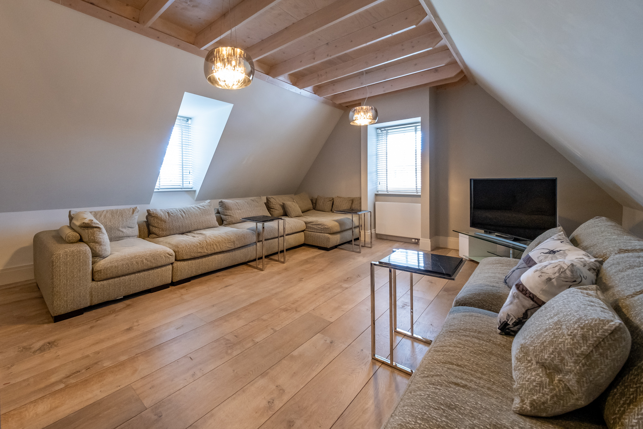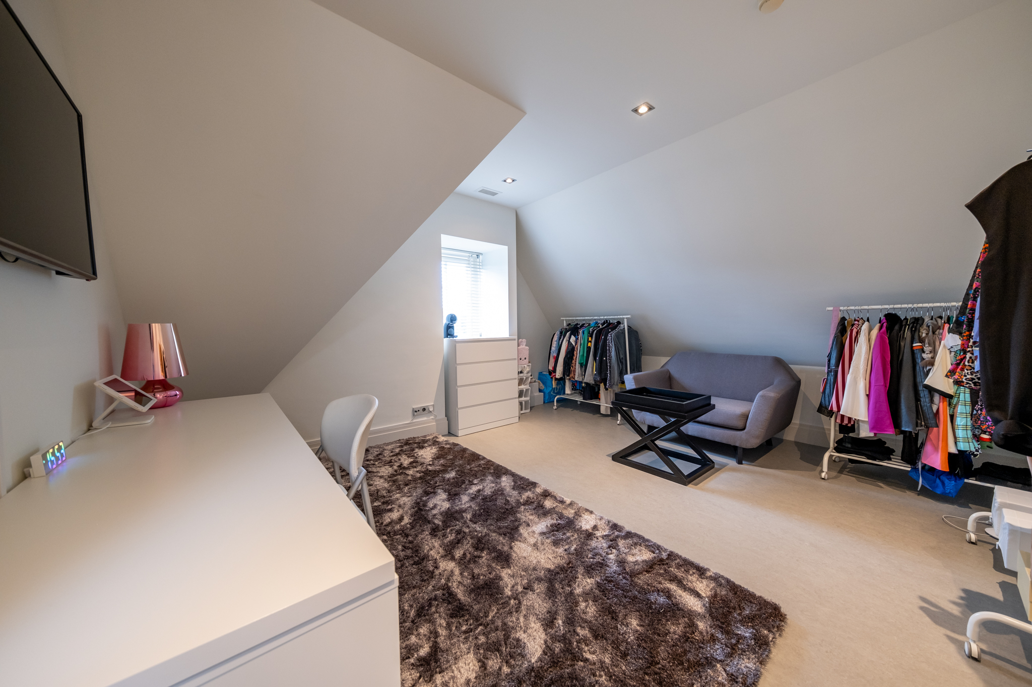 Loft above the garage with private entrance, ideal as a home cinema, hobby space, playroom, office, or separate living quarters
