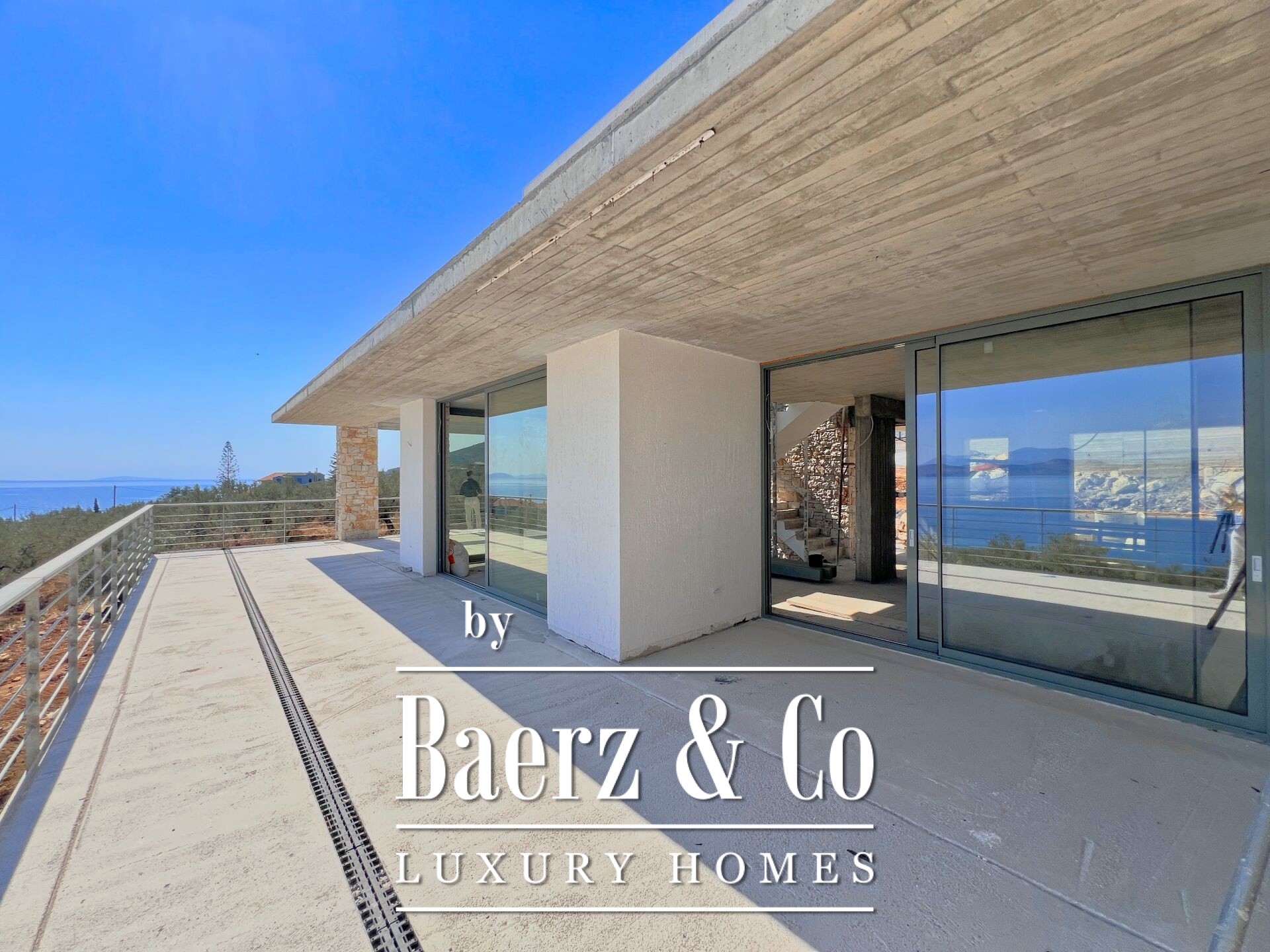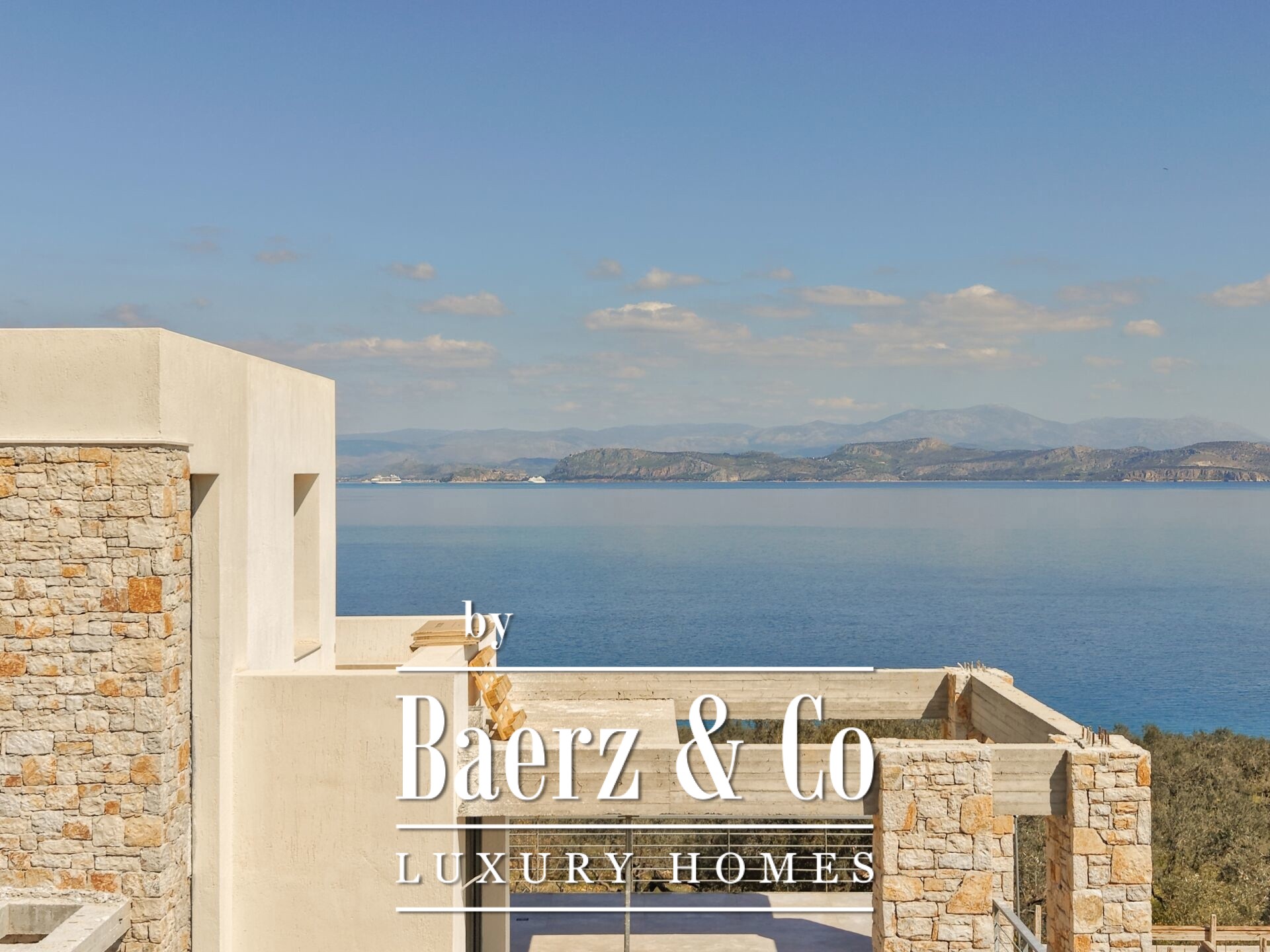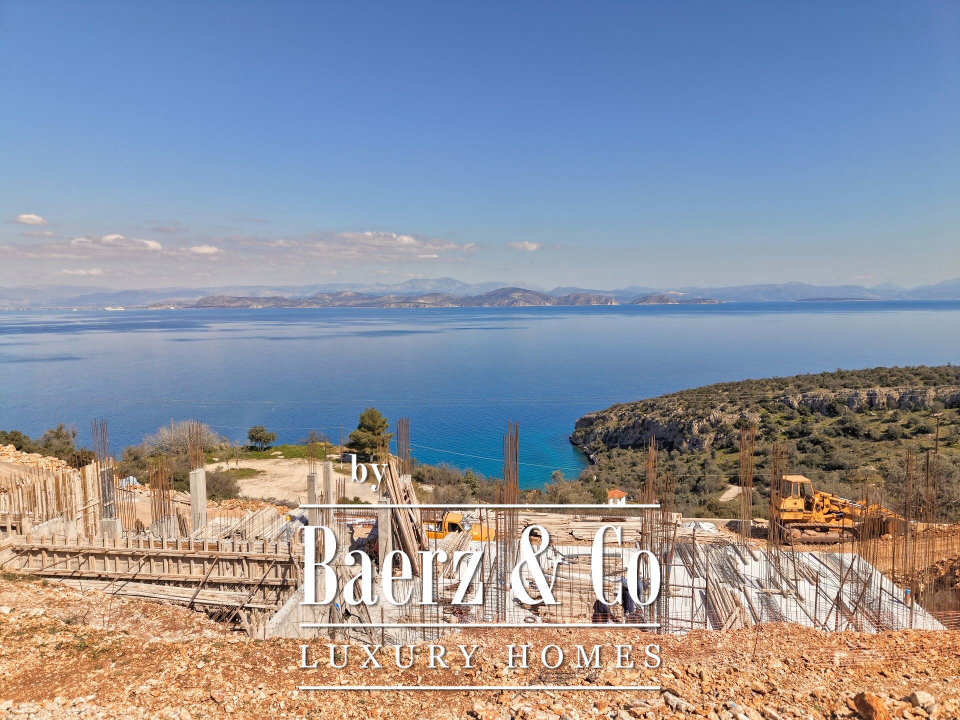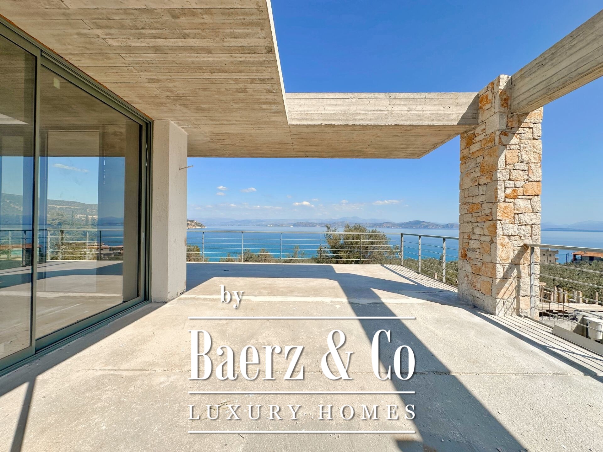 Contemporary villa Nafplio is offered for sale just 250 meters from the coastline, set within a private 2,000 m² plot. This villa, currently under construction by an experienced architectural firm, expresses a modern living philosophy aligned with the Mediterranean landscape and lifestyle. The interior living area of 285 m² unfolds over two levels and a mezzanine, emphasizing seamless transitions between interiors and expansive outdoor spaces. Throughout, large glass openings invite abundant natural light and frame uninterrupted sea views.