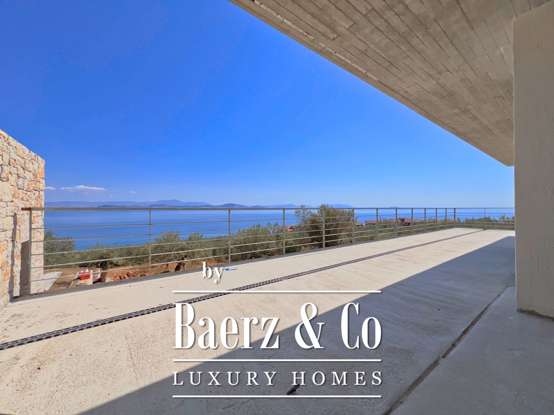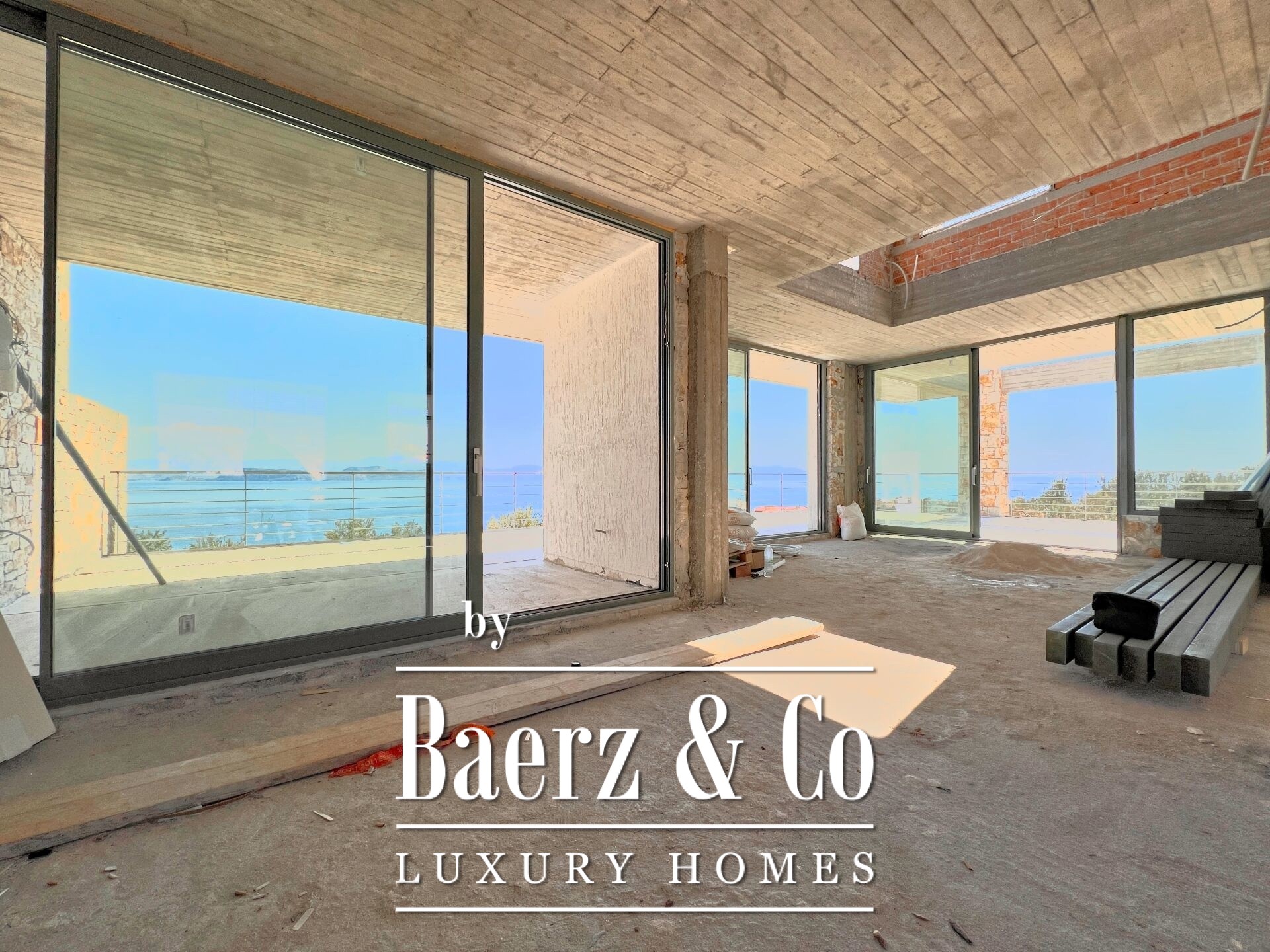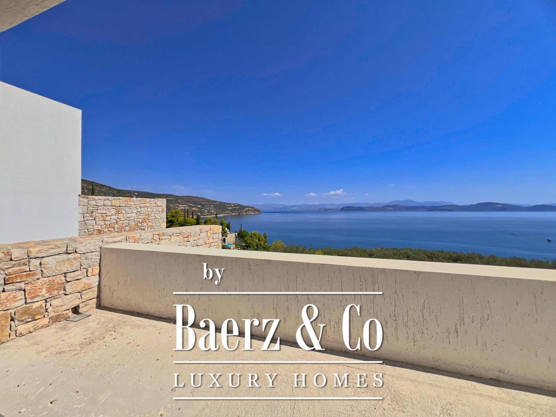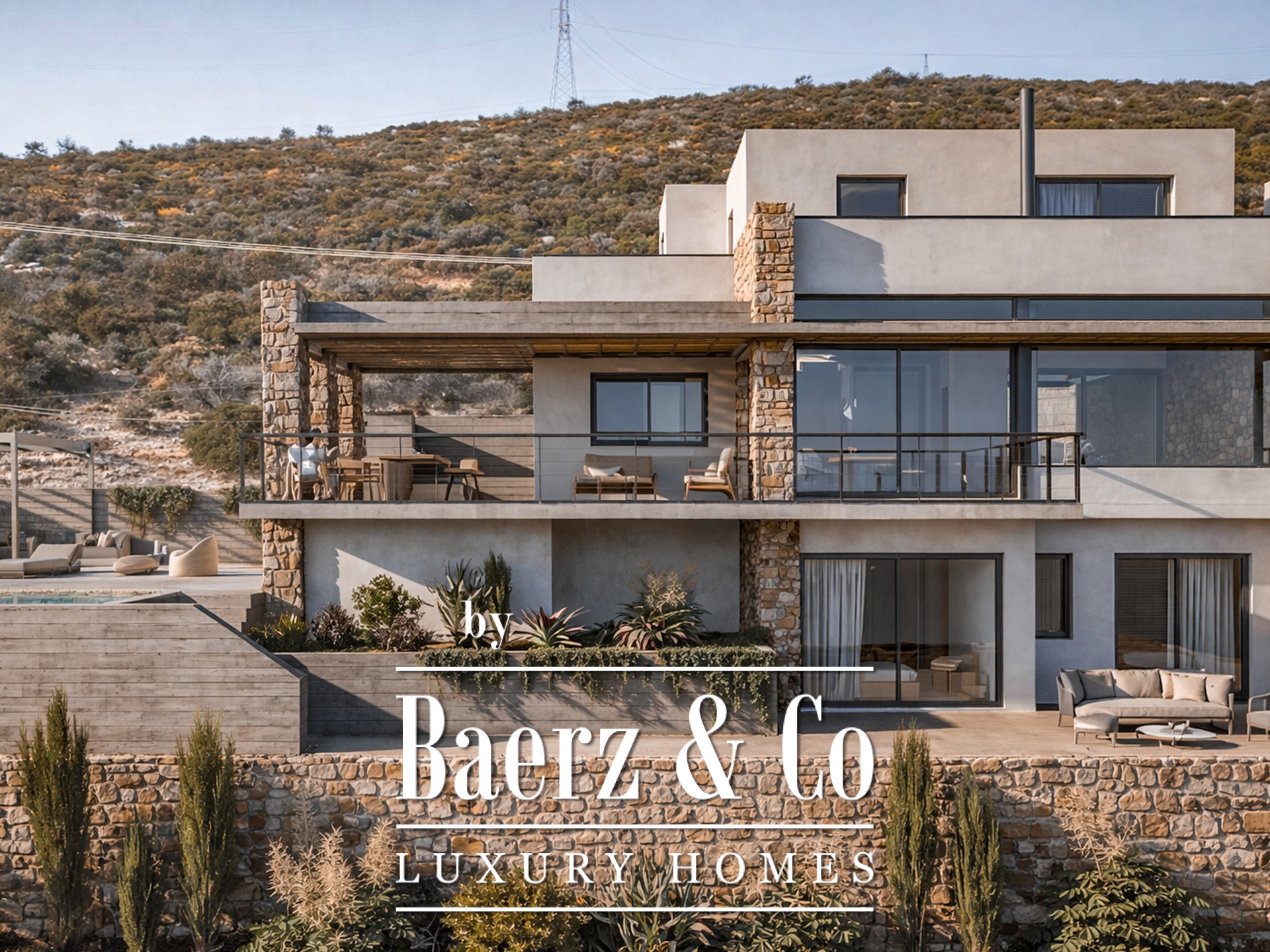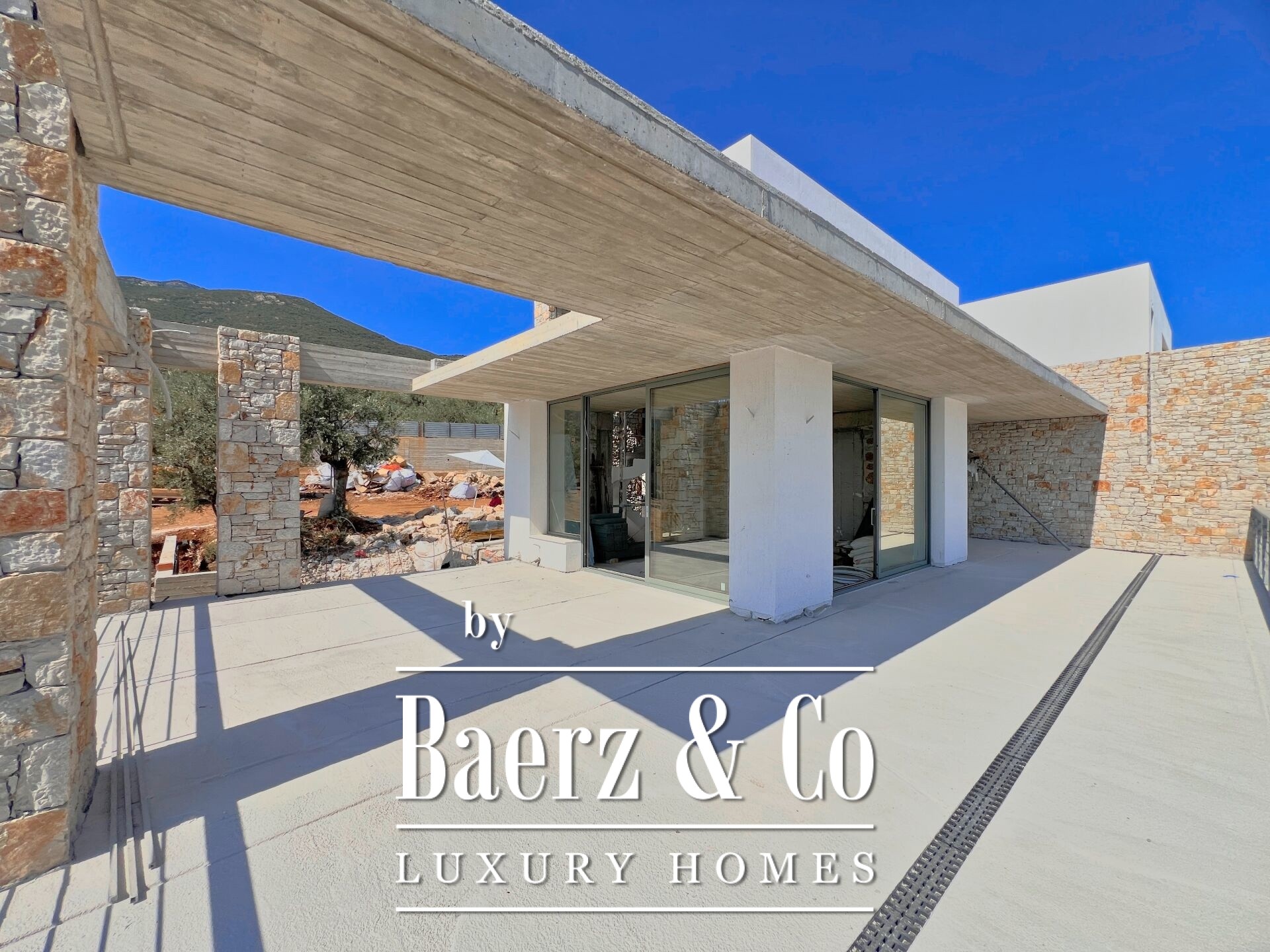 Contemporary villa Nafplio is offered for sale just 250 meters from the coastline, set within a private 2,000 m² plot. This villa, currently under construction by an experienced architectural firm, expresses a modern living philosophy aligned with the Mediterranean landscape and lifestyle. The interior living area of 285 m² unfolds over two levels and a mezzanine, emphasizing seamless transitions between interiors and expansive outdoor spaces. Throughout, large glass openings invite abundant natural light and frame uninterrupted sea views.