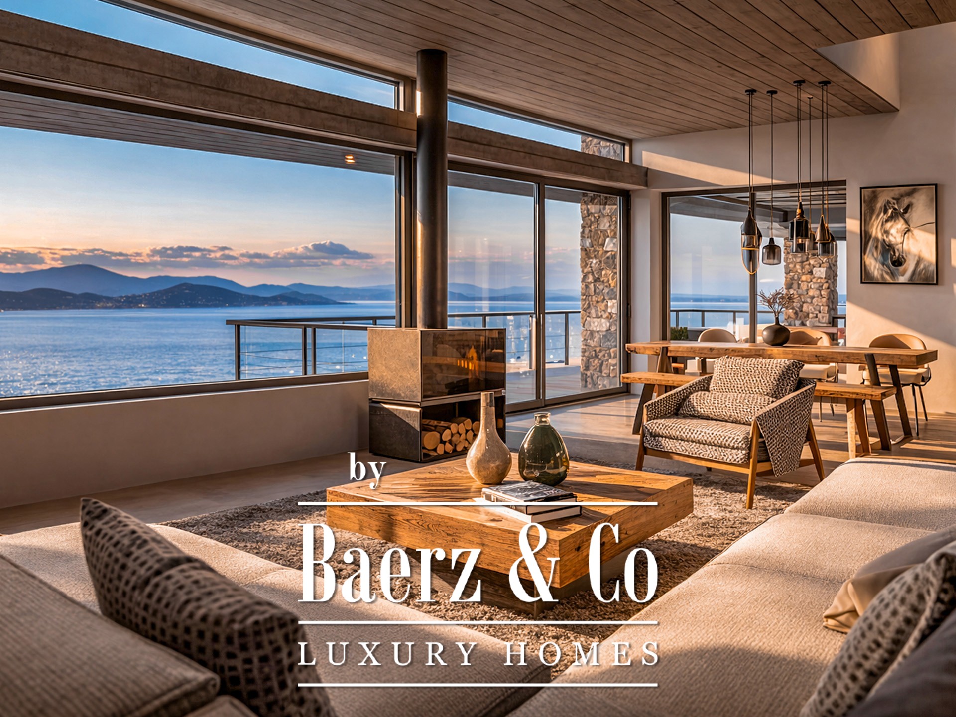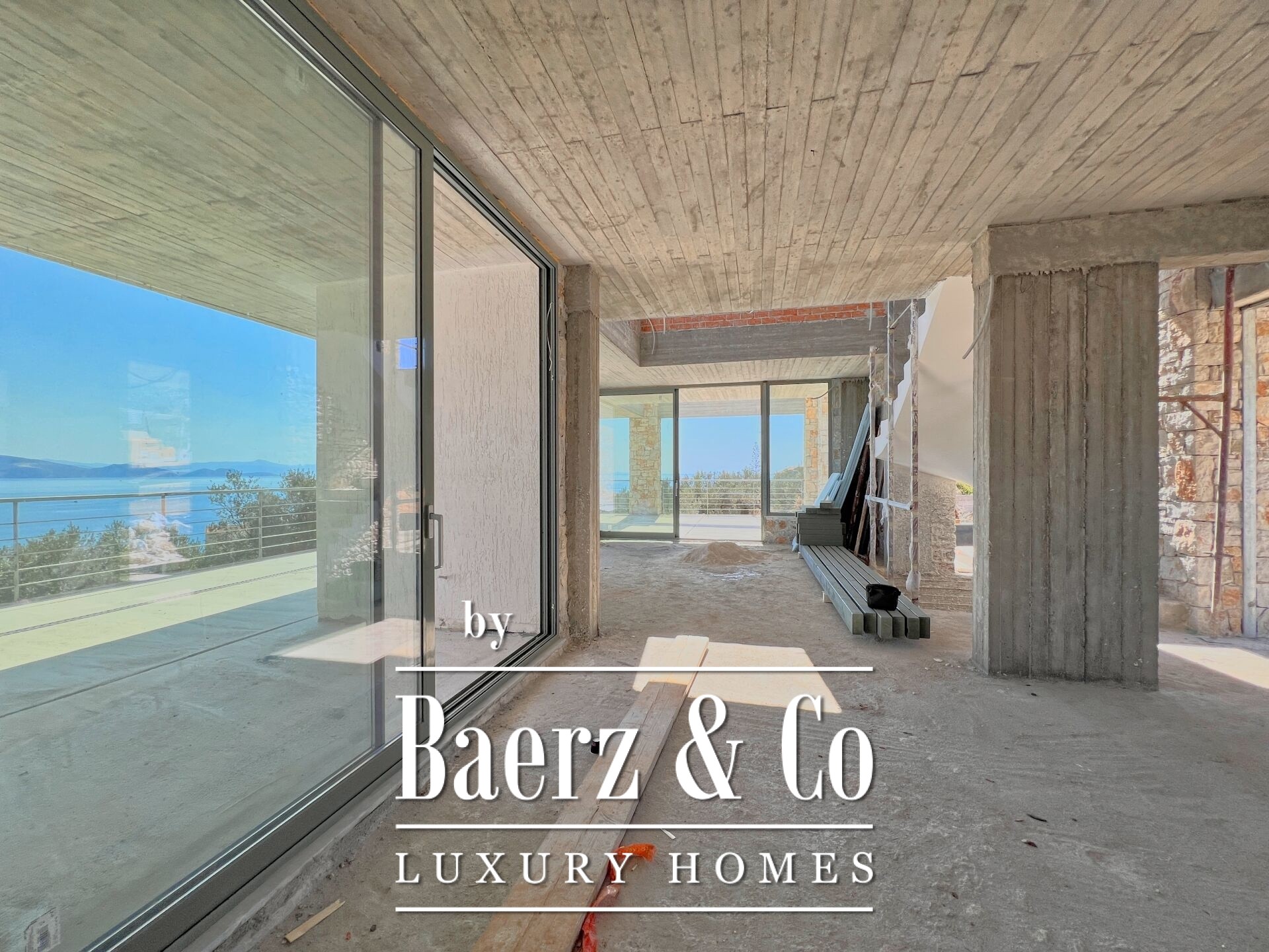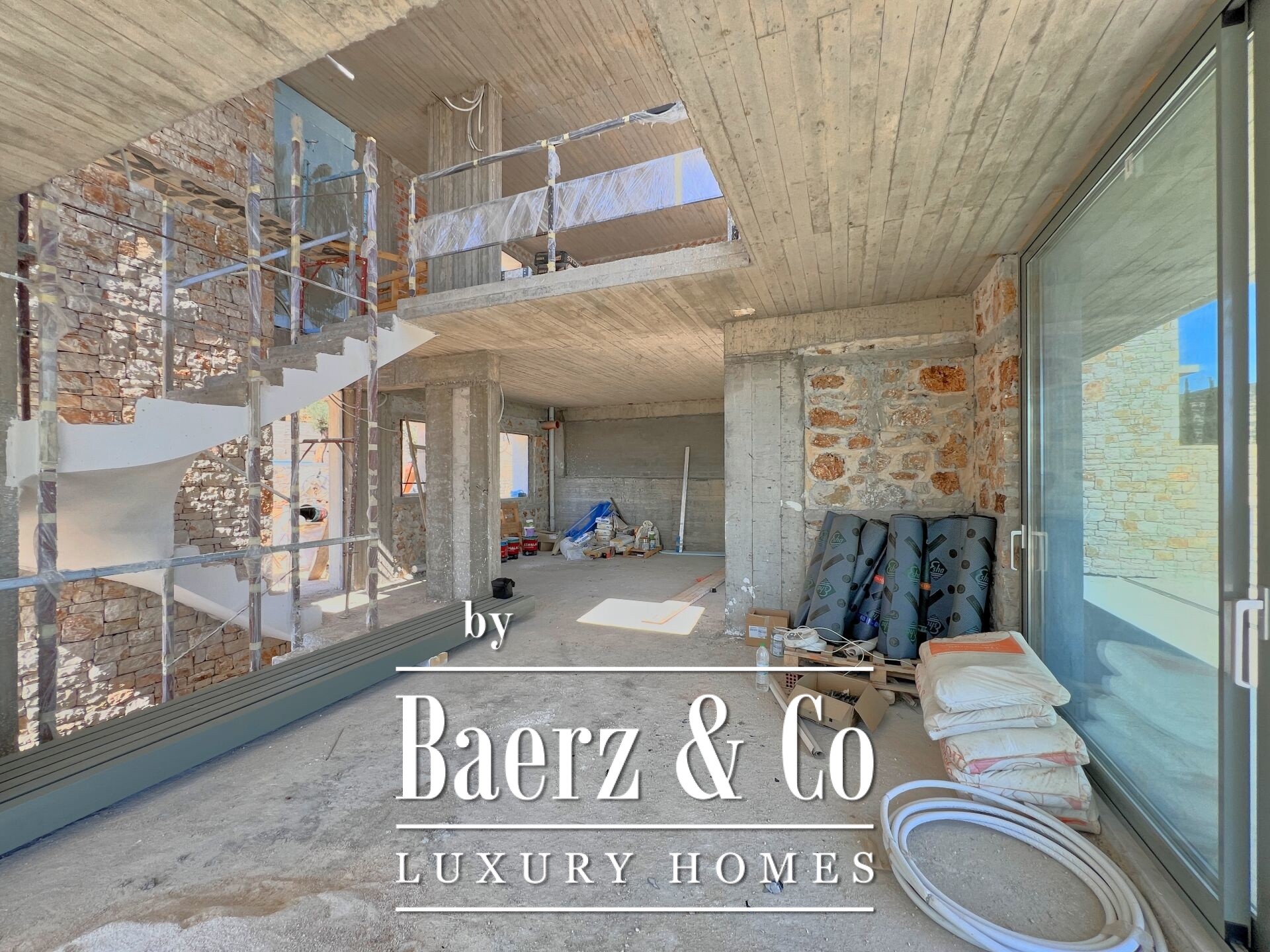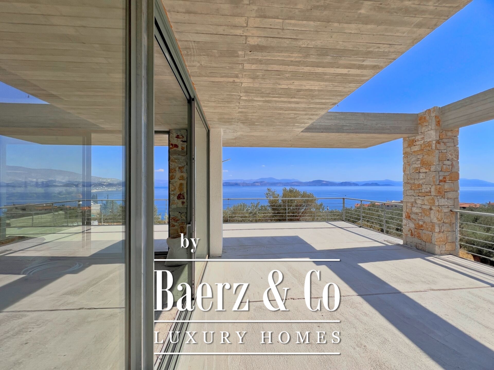 Contemporary villa Nafplio is offered for sale just 250 meters from the coastline, set within a private 2,000 m² plot. This villa, currently under construction by an experienced architectural firm, expresses a modern living philosophy aligned with the Mediterranean landscape and lifestyle. The interior living area of 285 m² unfolds over two levels and a mezzanine, emphasizing seamless transitions between interiors and expansive outdoor spaces. Throughout, large glass openings invite abundant natural light and frame uninterrupted sea views.