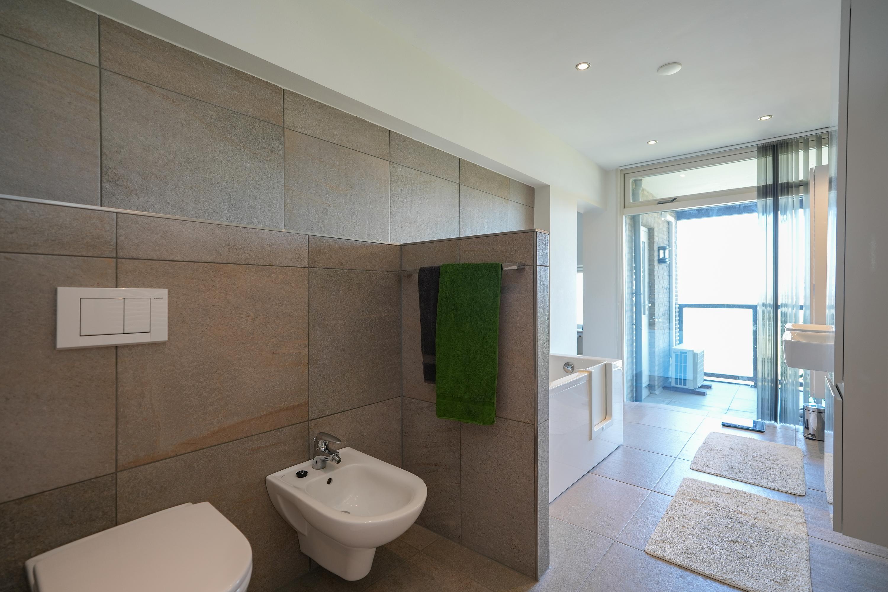 The kitchen is equipped with various built-in appliances and provides access to the first, south-facing balcony. Adjacent to the kitchen is an internal utility room offering additional storage and workspace. From the living room and the balcony there are beautiful views over the city of Nijmegen and Radboud University. A gas fireplace separates the dining area from the television/lounge area on the south-west side. The west-facing balcony offers lovely views towards the River Waal and the iconic Waal Bridge.