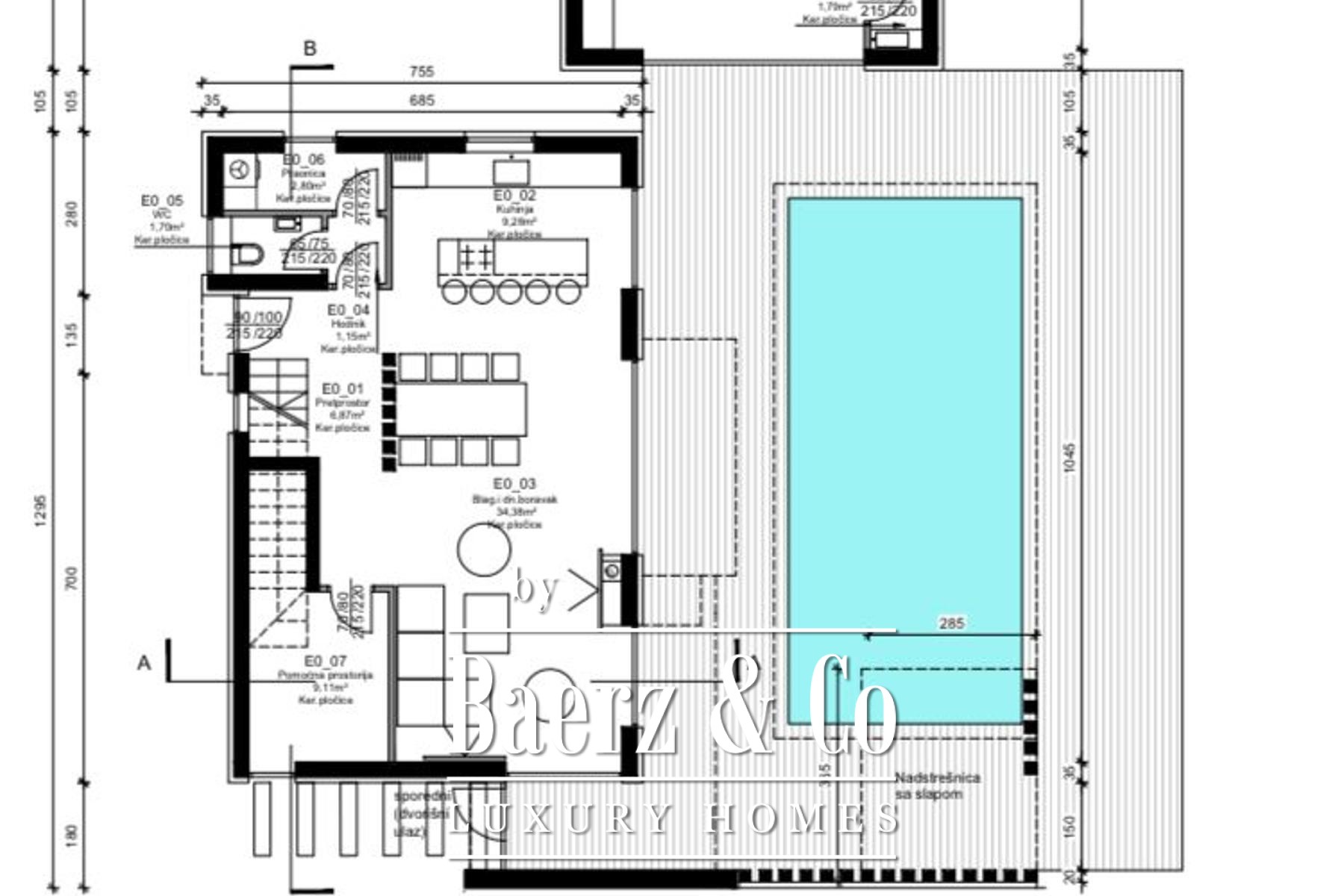 Zadar, Pridraga, this luxury villa, nestled in the peaceful village, represents the perfect blend of elegance, comfort, and a prime location. With its 169.29 m2 of living space, this property offers a spacious and functional layout ideal for family living. Situated in the picturesque surroundings of the Zadar County, the villa provides not only peace and privacy but also easy access to all necessary amenities and beautiful beaches.The ground floor of the villa features a spacious living room and a modern, fully equipped kitchen, creating an open space perfect for socializing and relaxation. An additional bathroom and a practical utility room enhance the functionality of this floor. From the living room and kitchen, there is direct access to a beautiful outdoor pool and a spacious garden, providing the perfect place to relax during the warm summer months. The garden is meticulously landscaped, creating an oasis of peace and beauty, ideal for family gatherings and enjoying nature.A special addition to this property is the konoba