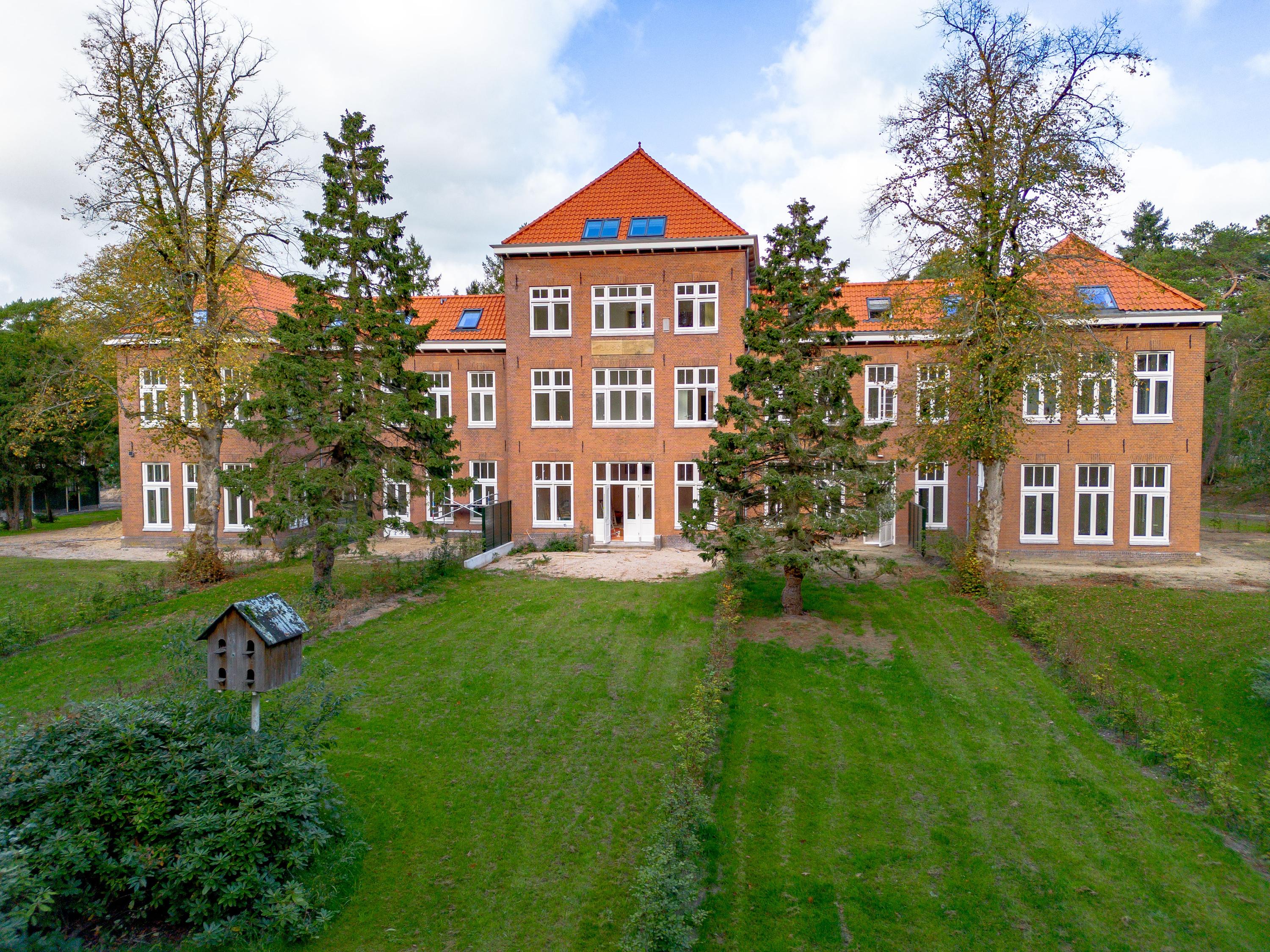 Op de Veluwe, omringd door weelderig groen en oude bomen, staat het Boschhuis: een voormalig sanatorium uit 1925, recentelijk getransformeerd in zeven exclusieve bosvilla’s. De geliefde vooroorlogse bouwstijl, met zijn kenmerkende symmetrie, grote overstekken en monumentale gevels, is zorgvuldig behouden en gerestaureerd.