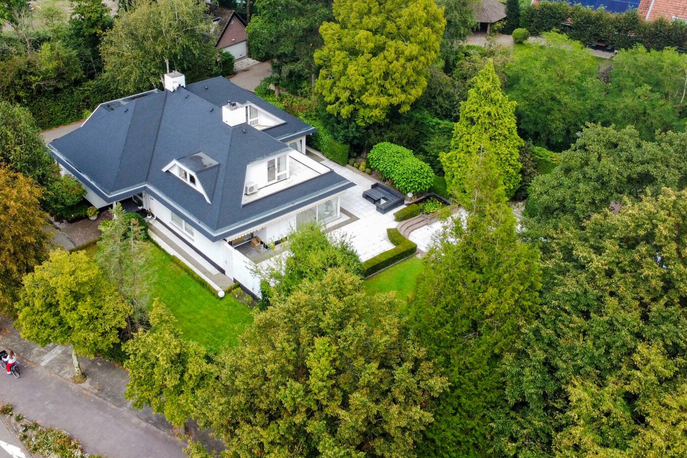 This elegant villa with a bright white exterior, with a combined living area of no less than 416 m2, is situated on a beautiful plot of 1,580 m2. The house is ideally located on the edge of Oegstgeest, surrounded by streets on all sides, with no adjoining neighbours, providing a sense of space and privacy without isolation. It is close to the greenery of Poelgeest Castle and the Leidse Hout; the lakes, marinas, and golf course of Warmond; and the schools, sports clubs, and shops of Oegstgeest, including the International School Rijnlands Lyceum. Leiden CS and the centre of Leiden are also easily accessible by bike. The house is conveniently situated near major roads providing easy access to both The Hague and Amsterdam (A44/A4), as well as Delft/Rotterdam via the new N434.