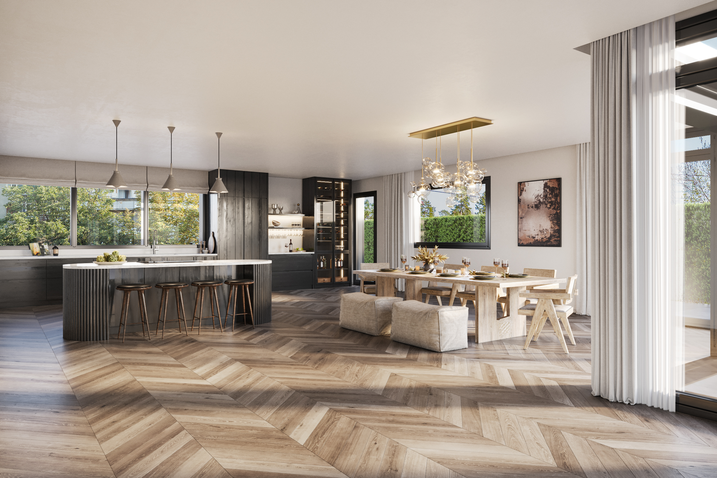 The ground floor is equipped with a high-end Bang & Olufsen sound system, providing excellent sound quality throughout the living area.