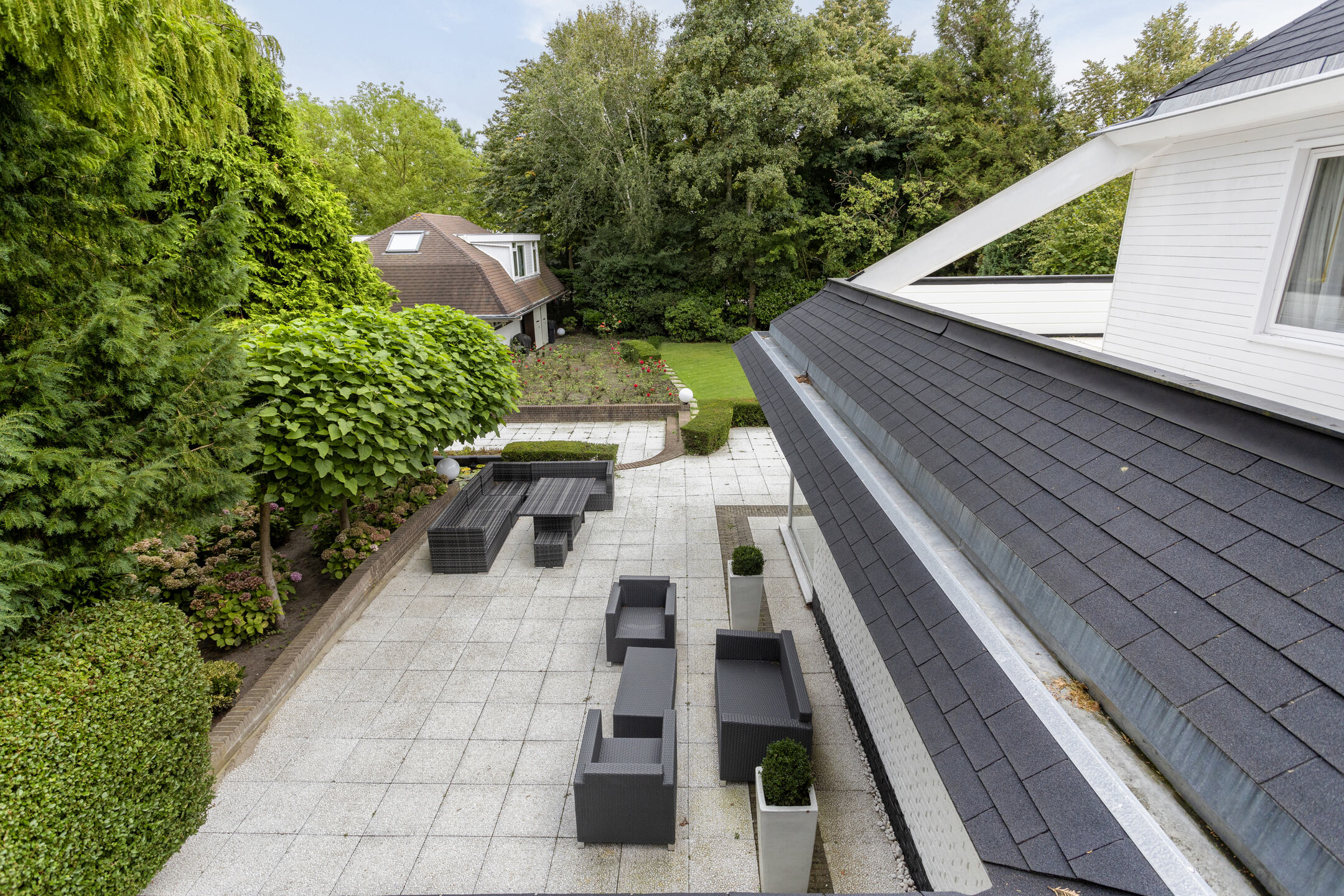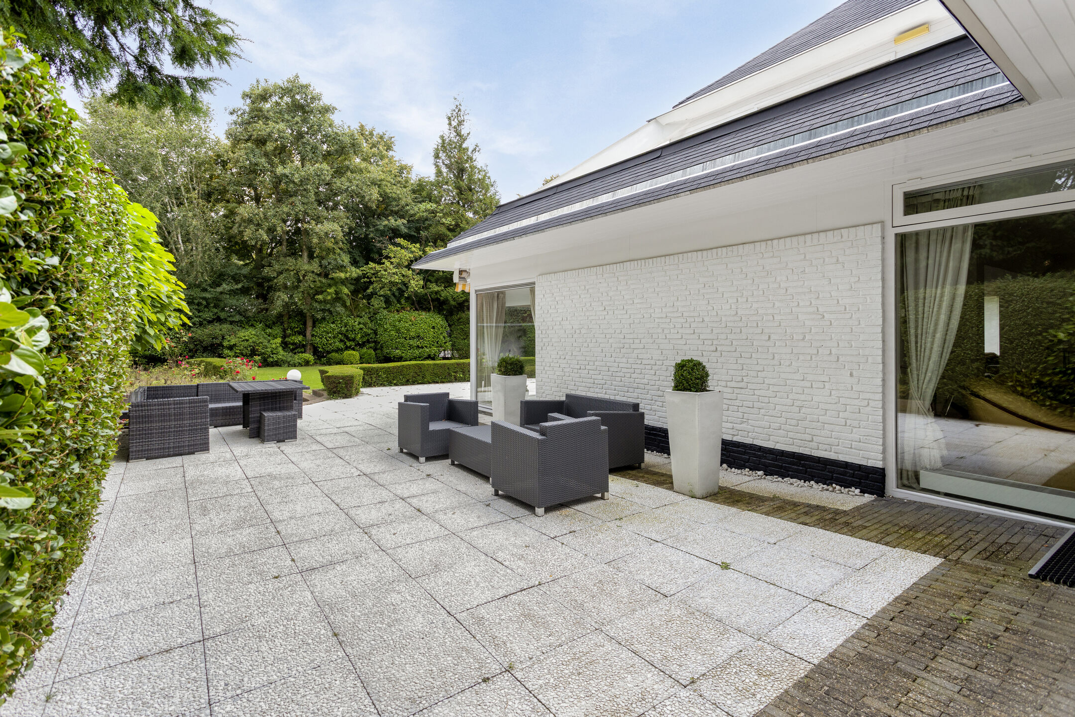Sliding doors from each room give access to the terraces around the house.
