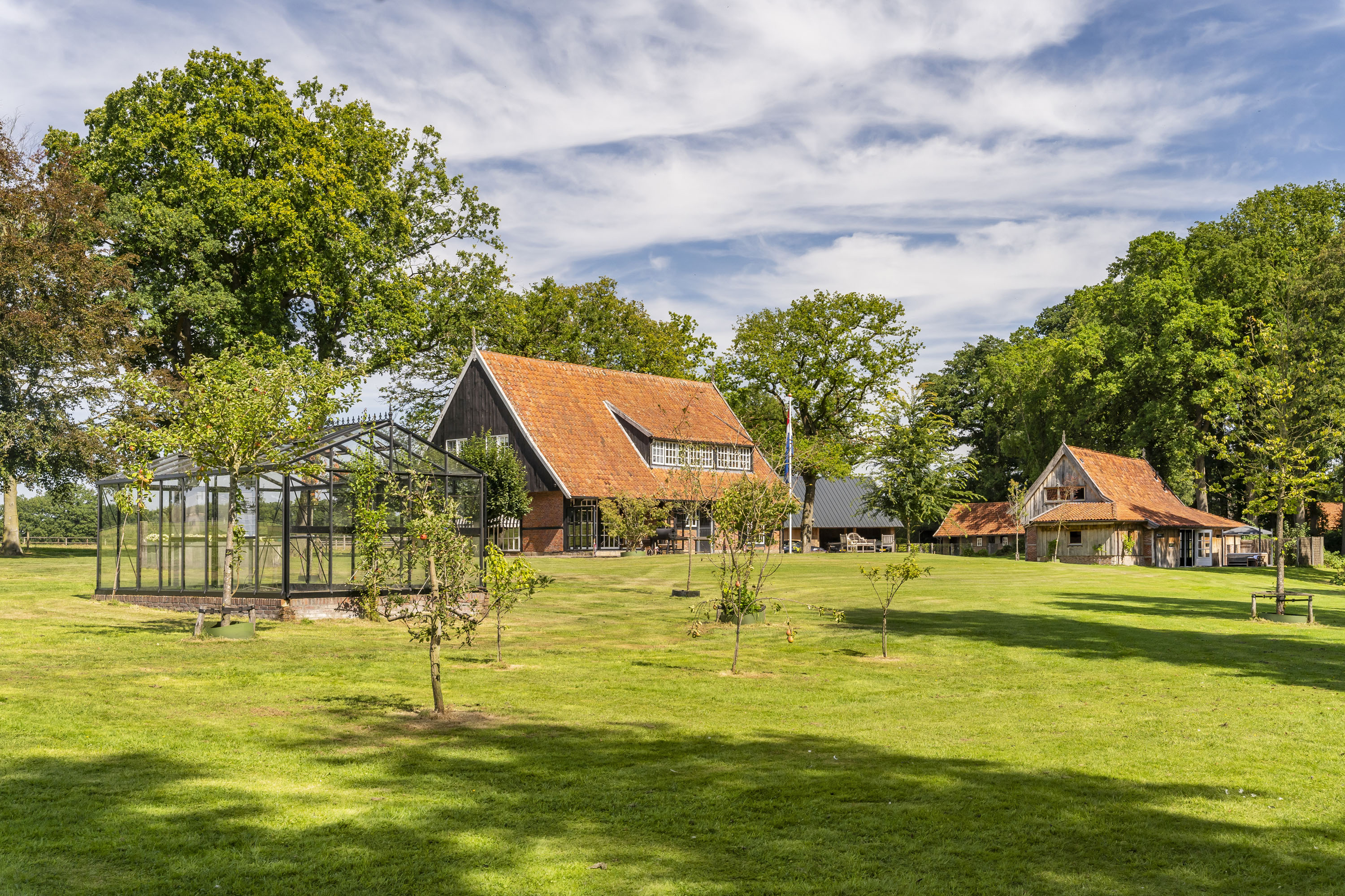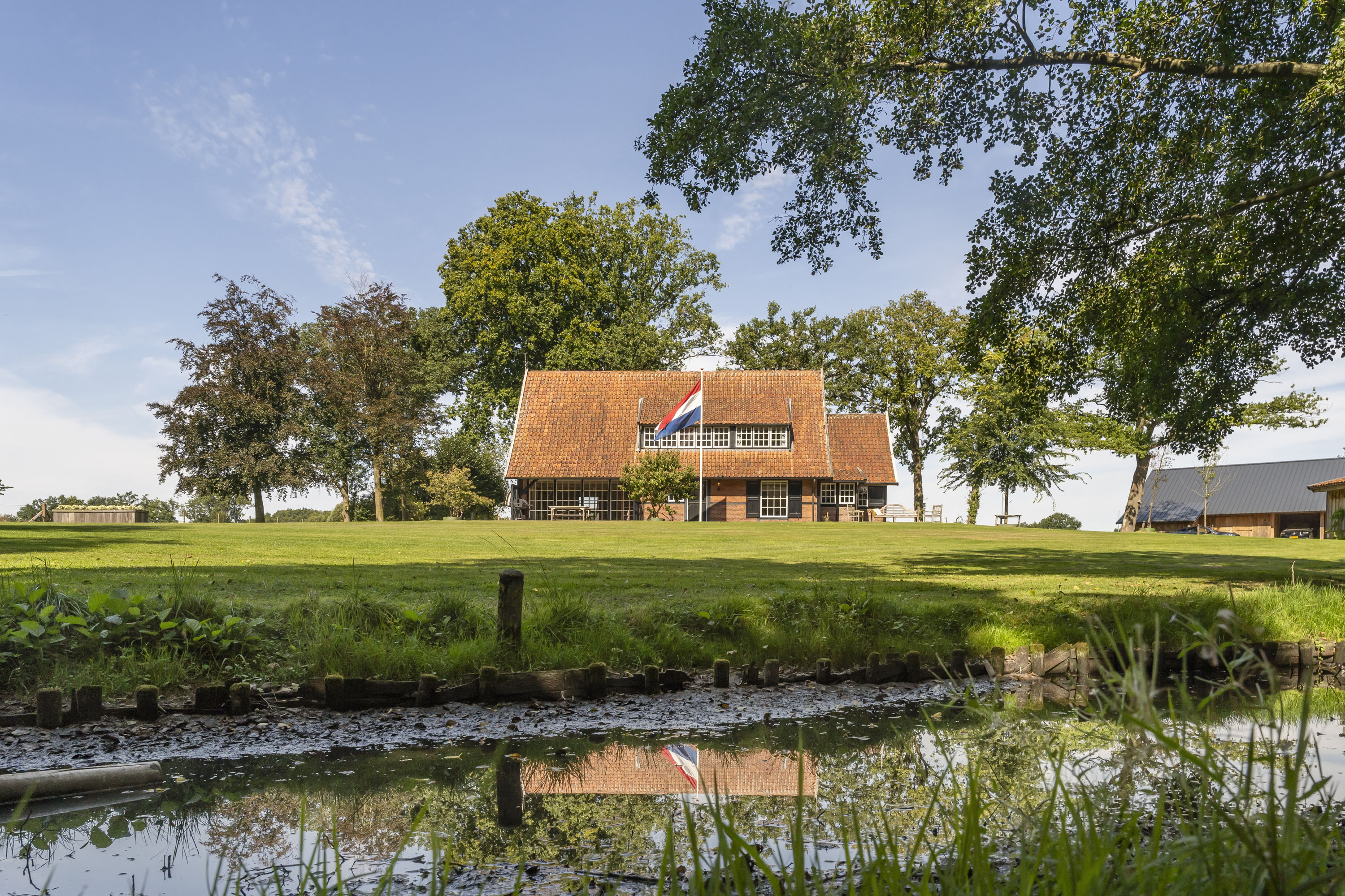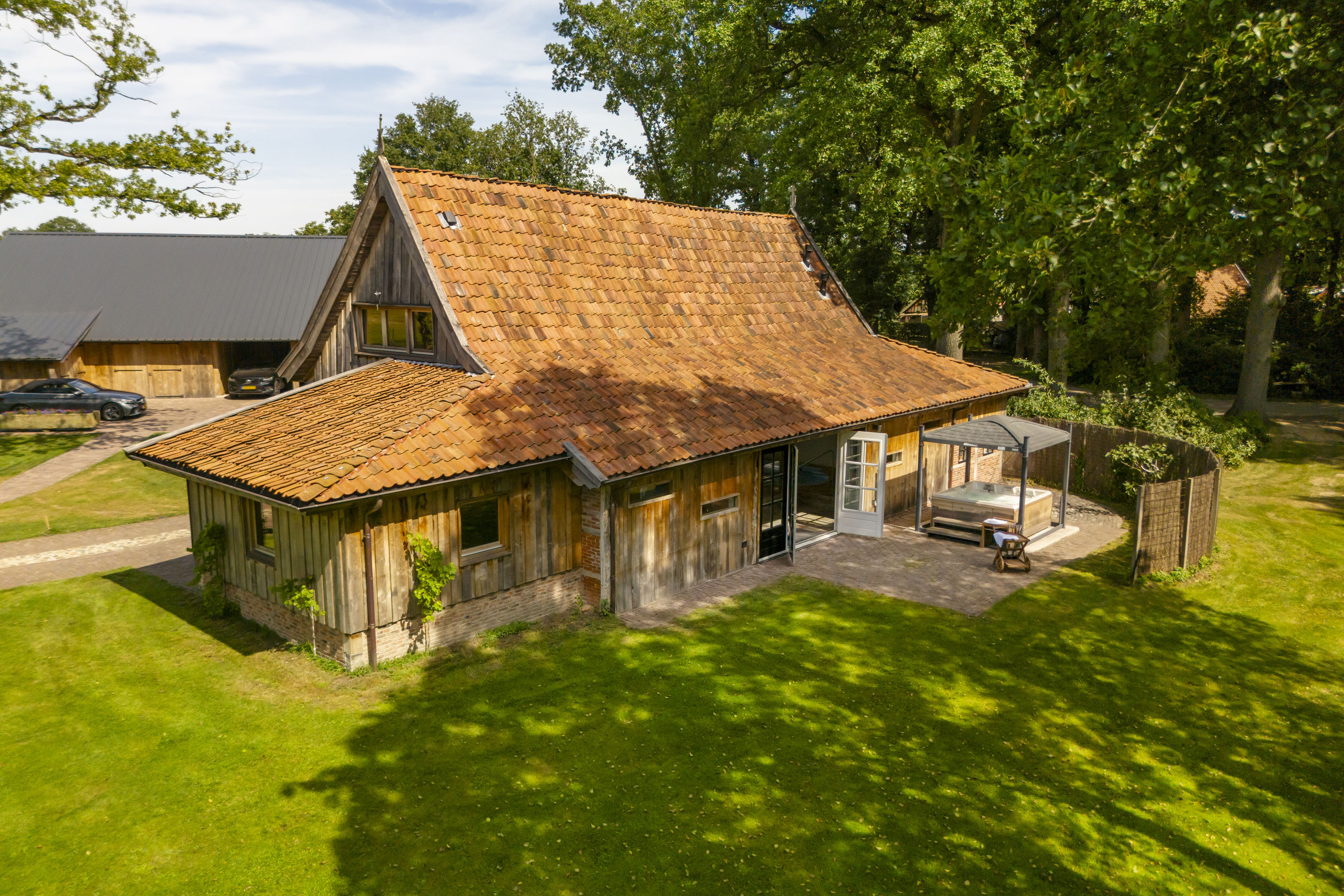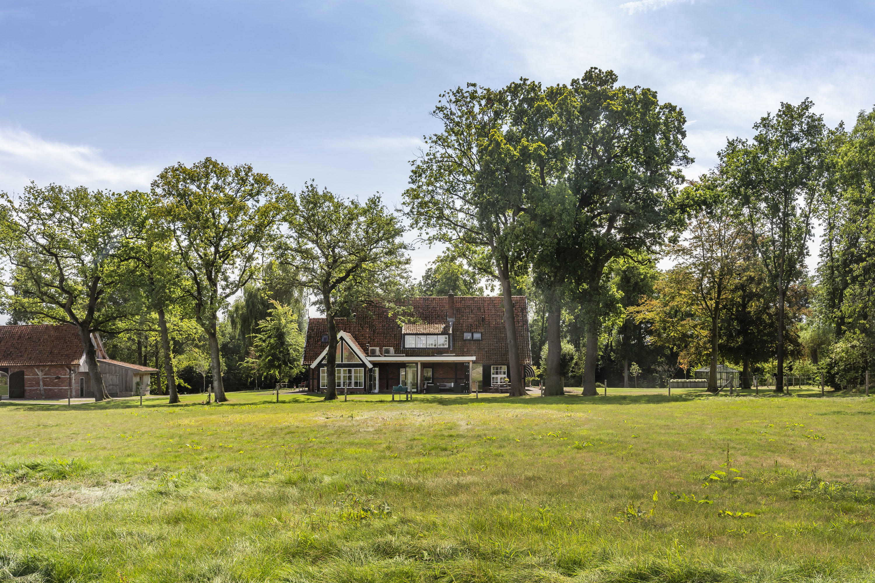 Enkele jaren geleden is een nieuwe multifunctionele schuur op het erf verrezen. Opgetrokken uit eikenhouten gebinten en wanden, sluit dit bouwwerk qua uiterlijk naadloos aan op het klassieke Twentse landschap en verbergt het de luxe en moderne voorzieningen die aanwezig zijn. Het gebouw is geheel onderkelderd en voorzien van een verwarmde hellingbaan, waardoor het geschikt is om werktuigen, groot of klein binnen te stallen. Bovendien is het volledig geïsoleerd zodat het dienst kan doen als atelier, stalling van oldtimers of andere ruimtevragende activiteiten. Maar ook een kantoor of stijlvolle herenkamer behoort tot de mogelijkheden.
