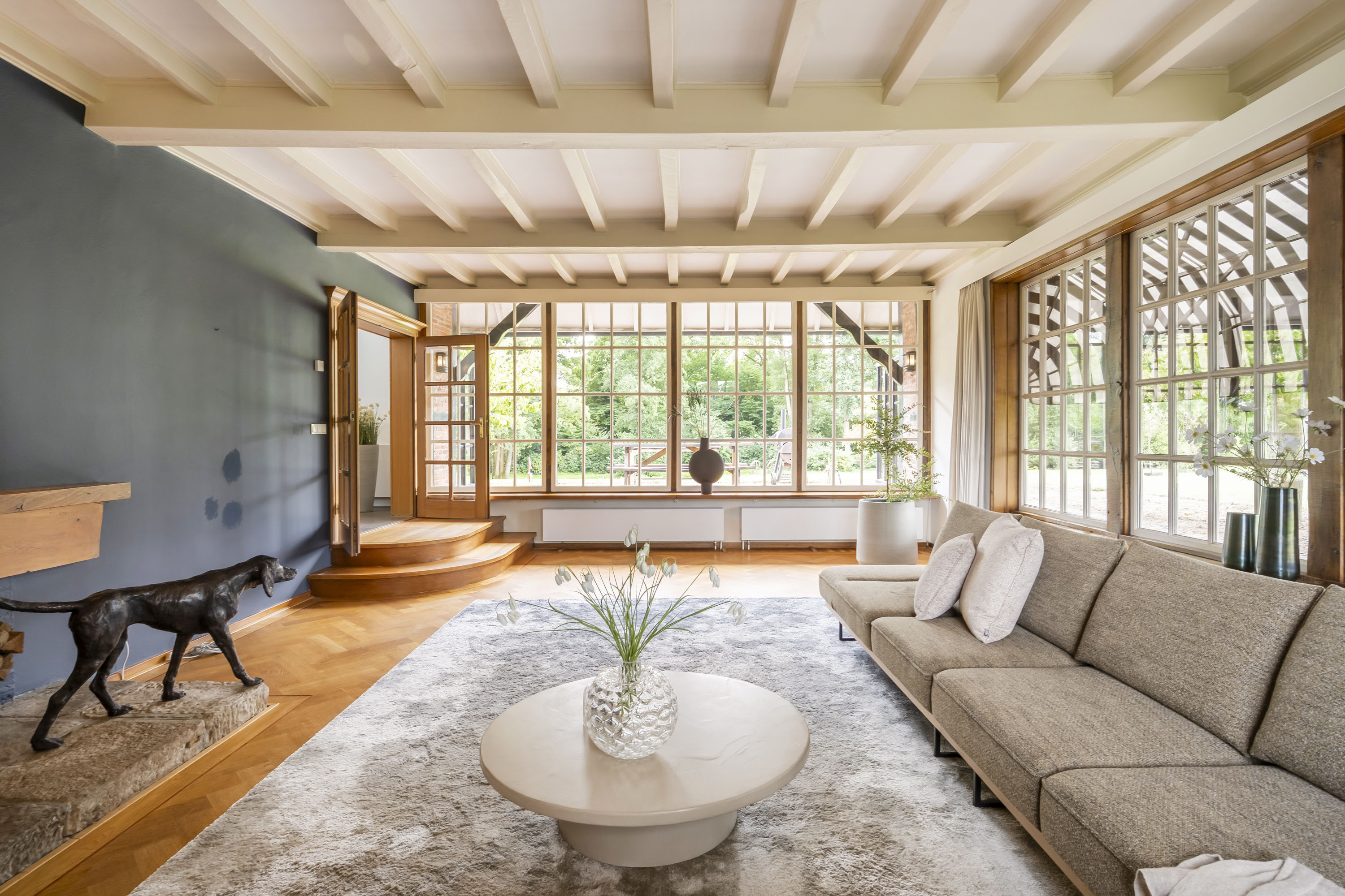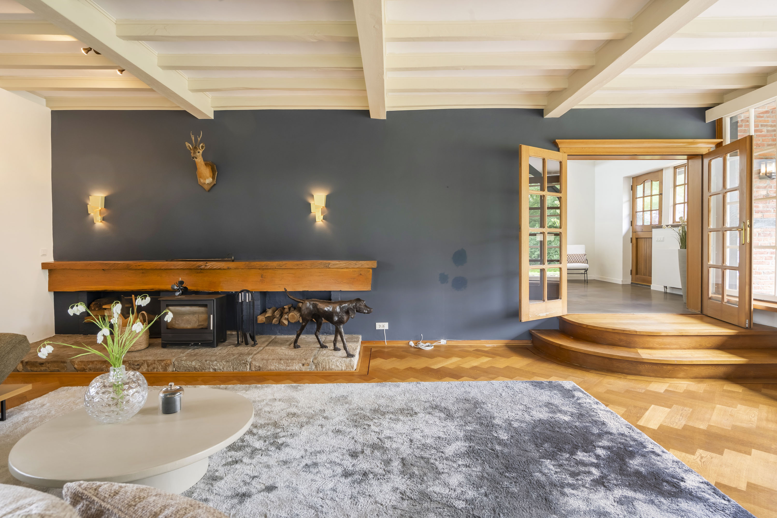 Het historische silhouet van de voormalige hoeve is behouden, terwijl het interieur met gevoel voor stijl en luxe is ingericht. Hier vindt u een royale moderne leefkeuken, sfeervolle woonvertrekken en meerdere slaapkamers en badkamers, afgewerkt met hoogwaardige materialen. Een huis dat warmte en grandeur combineert, waar zowel het dagelijks leven als het ontvangen van gasten een waar genoegen is.