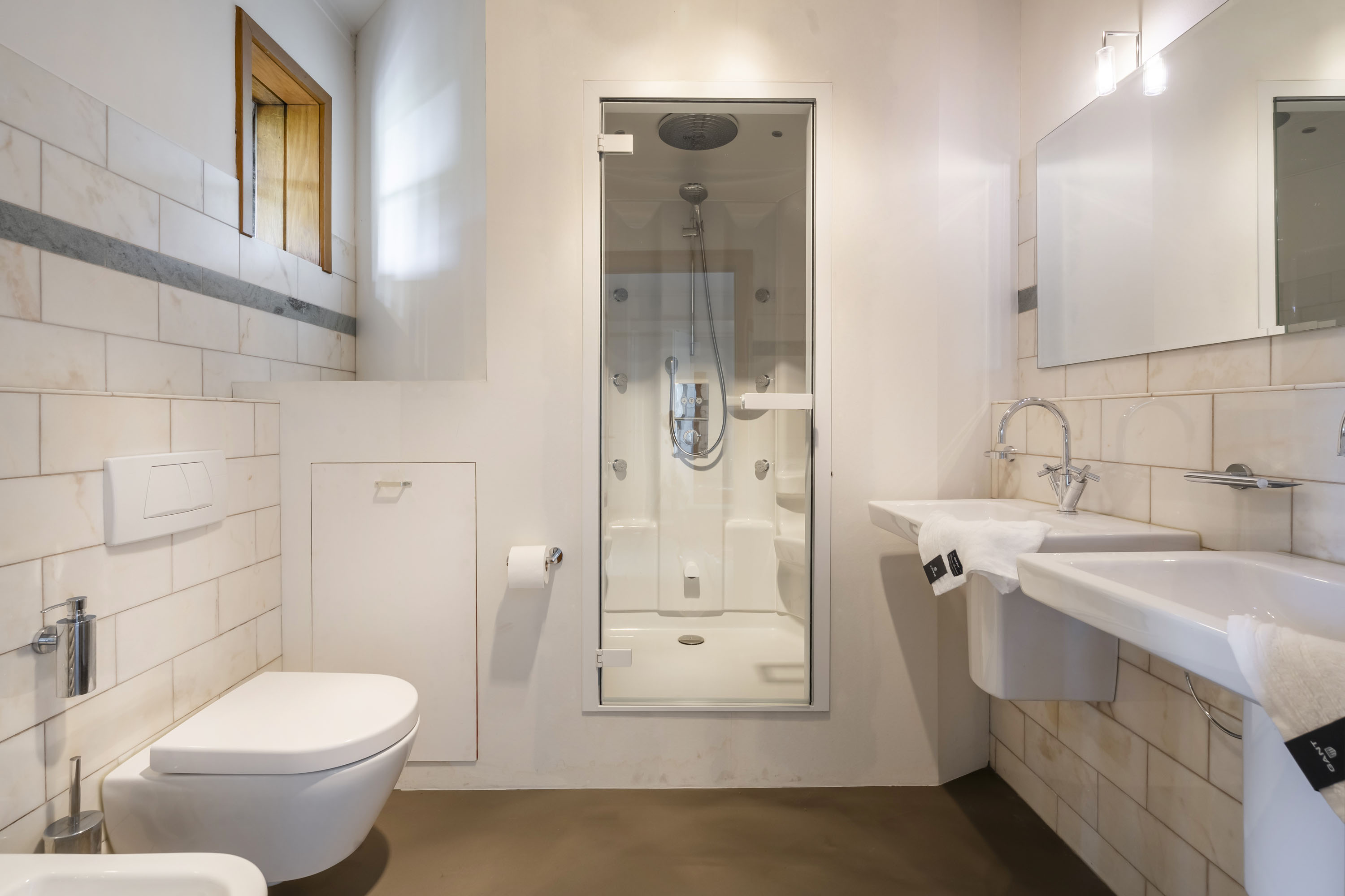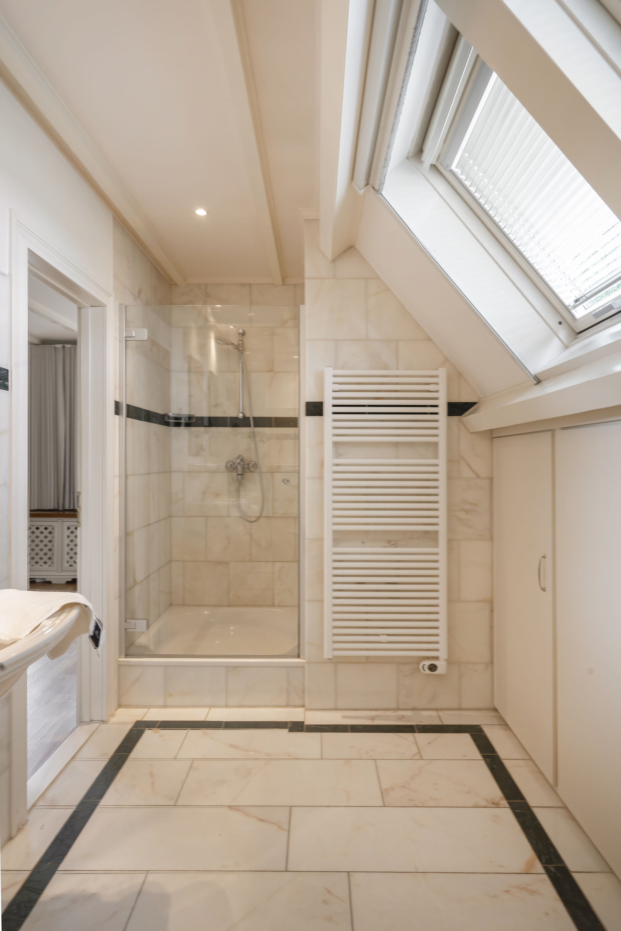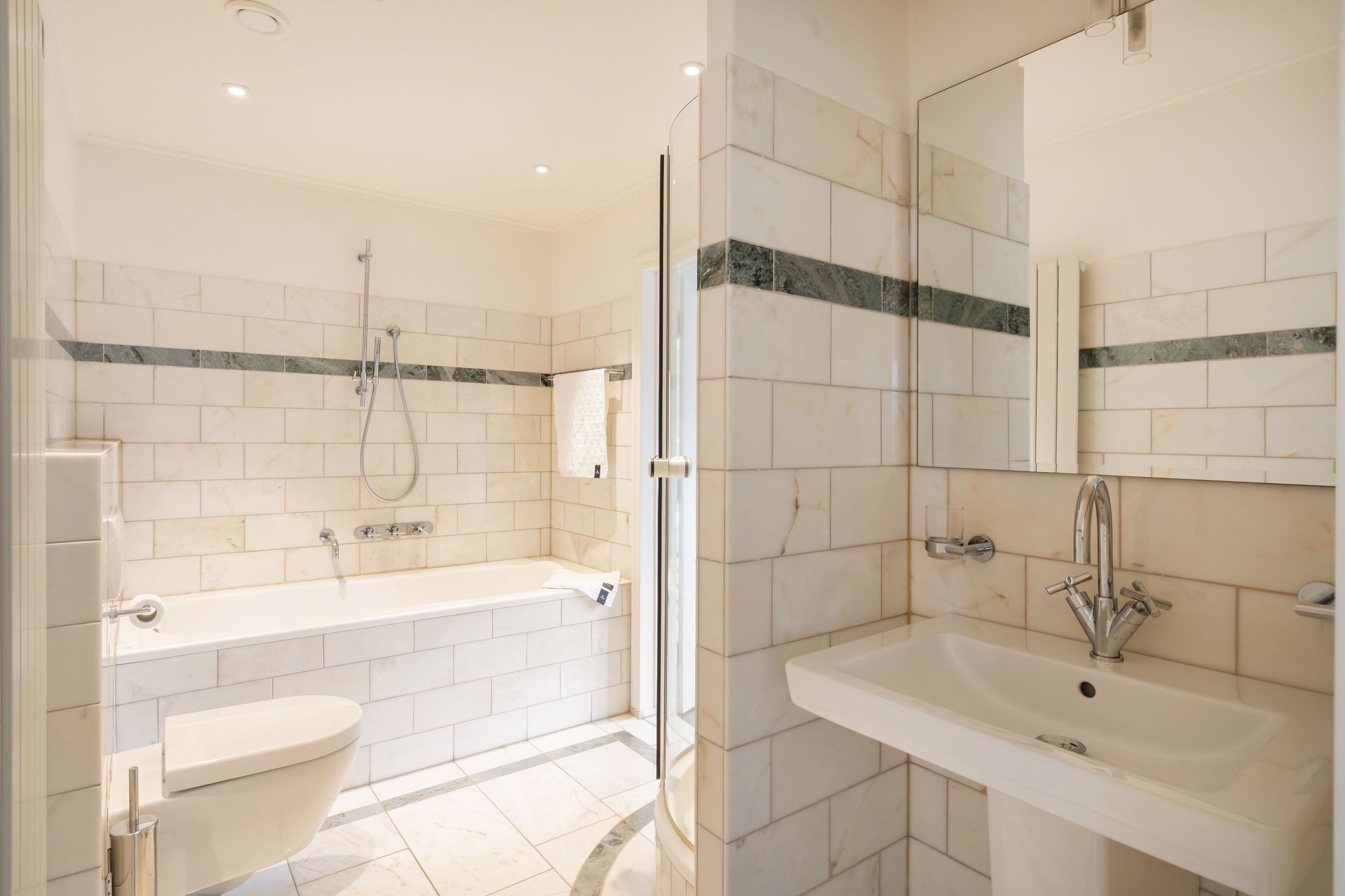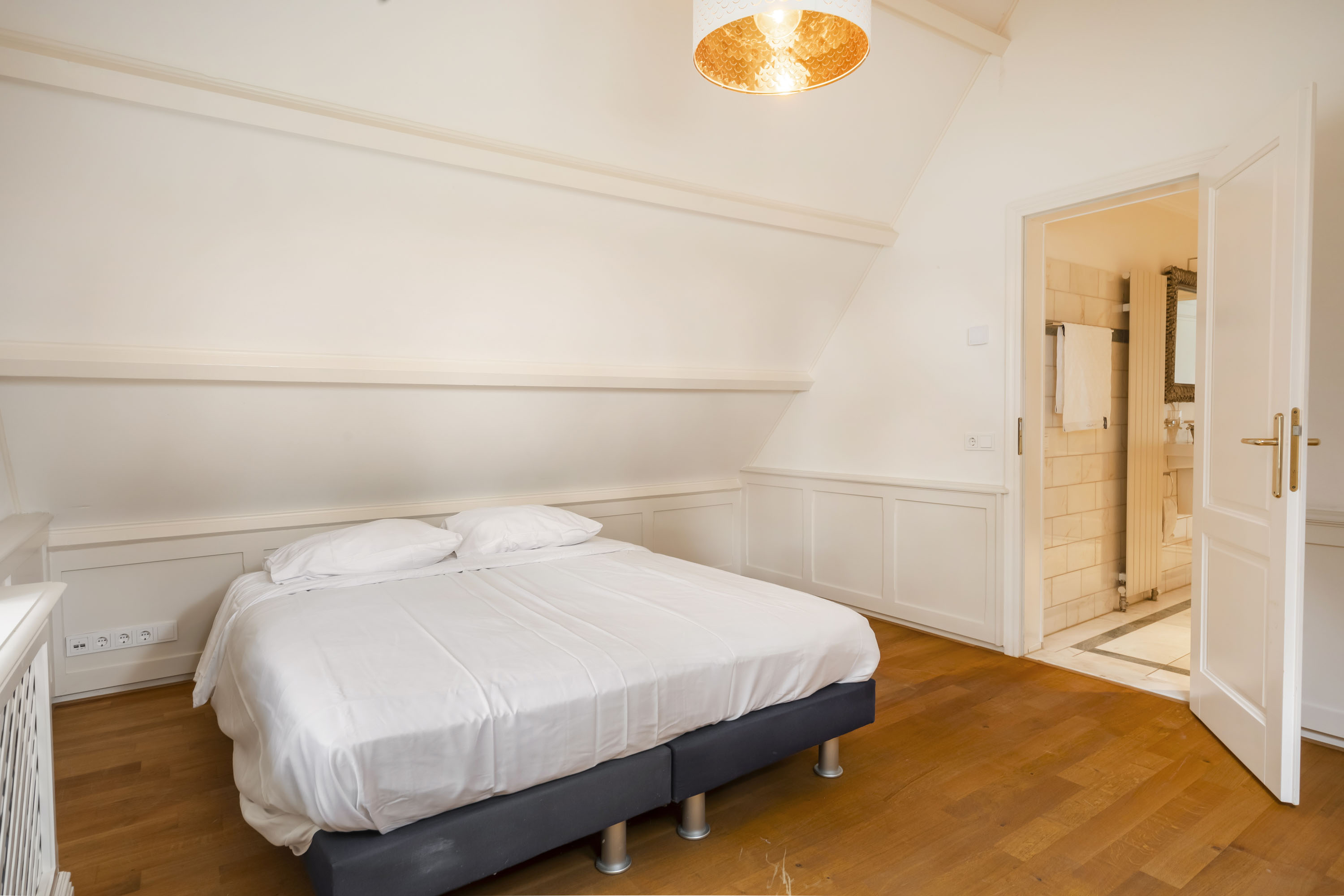 - slaapkamer eveneens voorzien van badkamer, uitgevoerd met hoekbad en douche, toilet, bidet en wastafel.