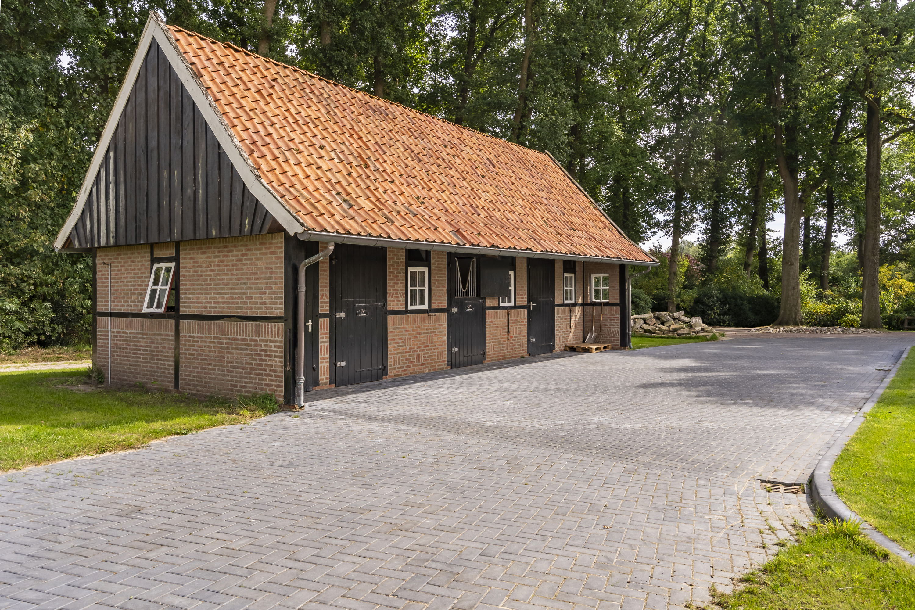 Paardenliefhebbers komen hier voor hun hobby niets tekort. Verspreid over twee gebouwen zijn er 4 stallen met aanpalende ruimtes die geschikt zijn voor bijvoorbeeld solarium en ruwvoer- of strooiselopslag.
