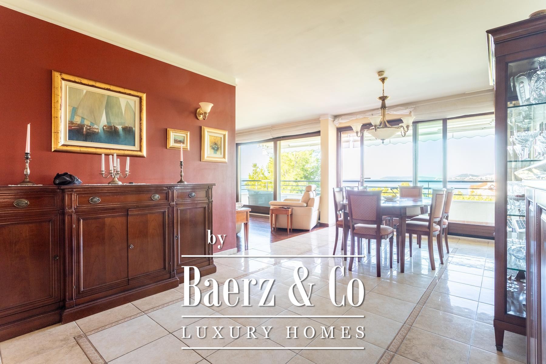 We present an extraordinary opportunity to purchase a luxurious apartment located in the heart of Podstrana. This prestigious property is situated in the first row to the sea, offering an unparalleled experience of coastal living. From the fifth floor of the building, a spectacular, panoramic view of the crystal-clear Adriatic Sea unfolds, transforming every sunrise and sunset into an unforgettable spectacle.The apartment spans a total area of 102.16 m2, cleverly arranged to ensure maximum comfort and functionality. It consists of a spacious kitchen with a dining area and an elegant living room, ideal for family gatherings and socializing. Two comfortable bedrooms provide peace and privacy, while a bathroom, a separate WC, an anteroom, and a practical wardrobe are carefully designed for daily needs.Special emphasis is placed on the outdoor space that enriches this