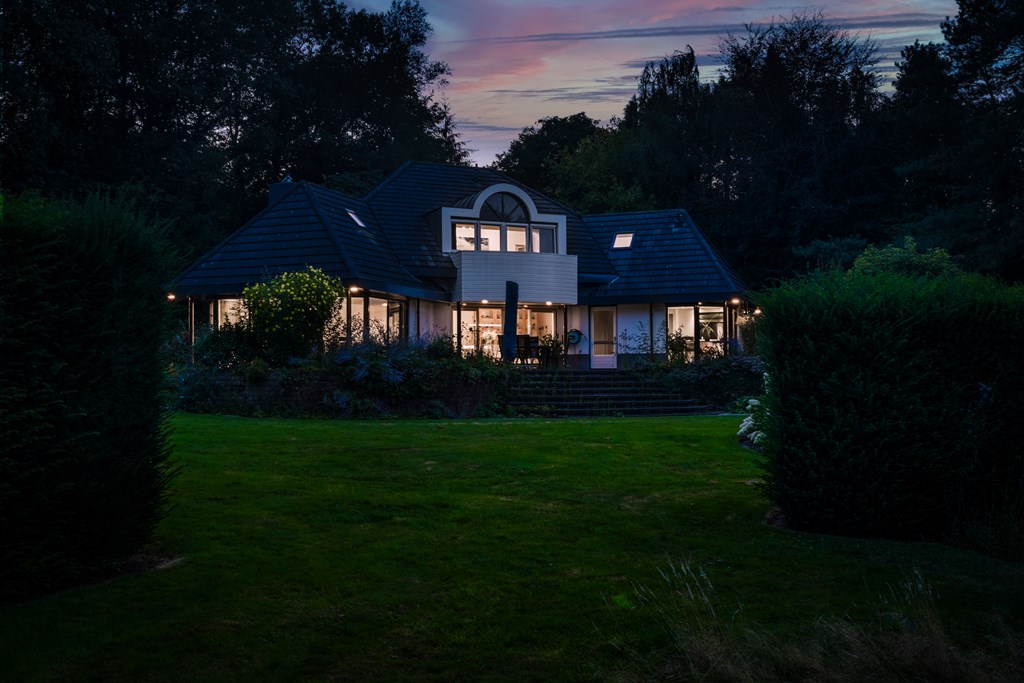 U komt binnen in een ruime, lichte hal die toegang geeft tot de woonkamer, een werkkamer, toiletruimte, meterkast (21 groepen + glasvezel) en de trapopgang. De werkkamer is ideaal en perfect bereikbaar om bijvoorbeeld klanten te ontvangen. De royale woonkamer heeft een bijzondere indeling, waardoor u gemakkelijk verschillende zithoeken kunt creëren. De grote ramen rondom bieden een prachtig uitzicht op de tuin en zorgen voor veel licht. Een sfeervolle gashaard voegt extra warmte toe. Via een dubbele schuifpui loopt u zo de zonnige achtertuin in. Aan de zonnige kant zorgen screens voor extra comfort. De ruime keuken met een eigen deur naar de tuin is ideaal voor het bereiden van maaltijden. Aangrenzend aan de keuken vindt u een bijkeuken met een aanrecht voorzien van spoelbak en aansluitingen voor de wasmachine en droger. De gehele benedenverdieping is voorzien van een natuurstenen vloer met vloerverwarming. In de woonkamer bevindt zich ook een airco.