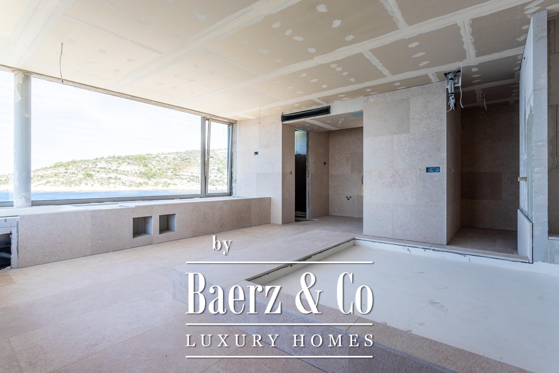 Materials specified include natural stone, tiles, and first-class American walnut parquet. High-end fixtures blend Grohe sanitary ware and a Mitsubishi multi VRF air conditioning system. Otis elevators serve each level, while modern designer furnishings echo the contemporary character and natural setting. Outdoor amenities include five parking spaces, barbecue and kitchen area, dedicated to restful gatherings by the sea. Completion is expected in December 2024, promising a villa in Croatia tailored to the discreet tastes of a global audience.
