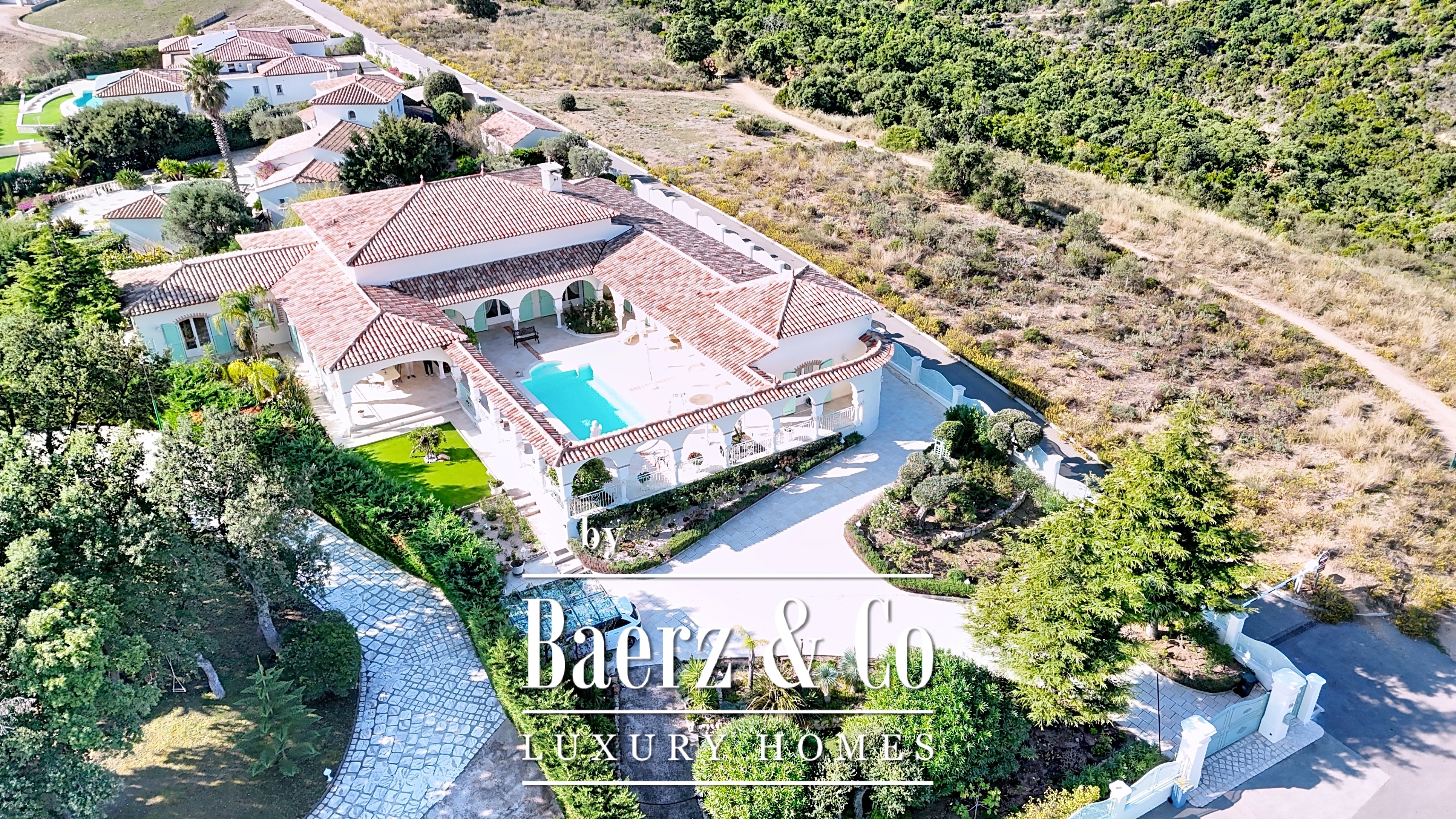 Exclusive Listing — A stunning single-storey villa inspired by the hacienda style, offering a panoramic view over the Mediterranean, the Estérel hills and the Gulf of Saint-Tropez. A rare sanctuary where elegance, light and serenity converge. Set on more than 2,000 m² of landscaped gardens, the property unfolds 400 m² of refined living spaces bathed in natural