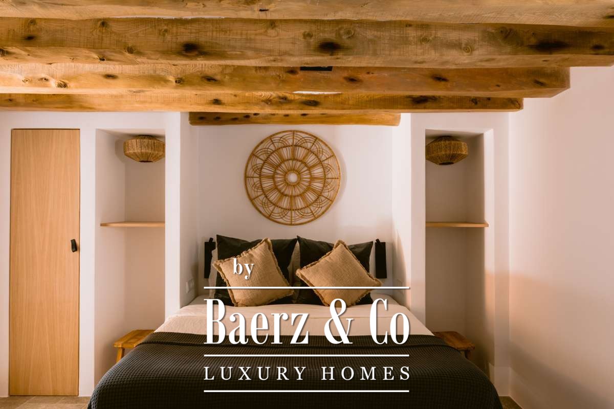 The surroundingsNestled in the heart of Sant Jordi, Ibiza, this exceptional property offers a unique location just a 3-minute drive from the airport and a 10-minute drive from bustling Ibiza Town. Moreover, within a 10-minute drive you will also find the island's most renowned coastal gems, including Las Salinas, Sa Caleta, Cala Jondal and the exclusive Blue Marlin Beach Club. These beautiful beaches and hotspots are close to the residence, in the heart of the island's vibrant lifestyle. This is a perfect location for those who are looking for privacy yet would like to live close to the center. This residence offers a harmonious blend of serenity and easy accessibility.The villaThis beautiful villa, renovated in 2023 with high-quality materials, exudes a unique bohemian chic style. Upon entering, you are welcomed by the open-plan living and dining room, which feature different floor levels. These flow seamlessly into one another and create an inviting and cozy atmosphere. The finca features a fully equipped designer kitchen with modern appliances. Every detail of the house has been carefully chosen to match the new modern style with the authentic Ibicencan charm. The main house consists of 5 spacious, beautiful bedrooms, each with an ensuite bathroom equipped with luxurious rain showers. The master bedroom also features a comfortable bathtub. In addition, there is a charming guest house, the "casita," consisting of a fully equipped open-plan living-dining room, two bedrooms and a shared bathroom.