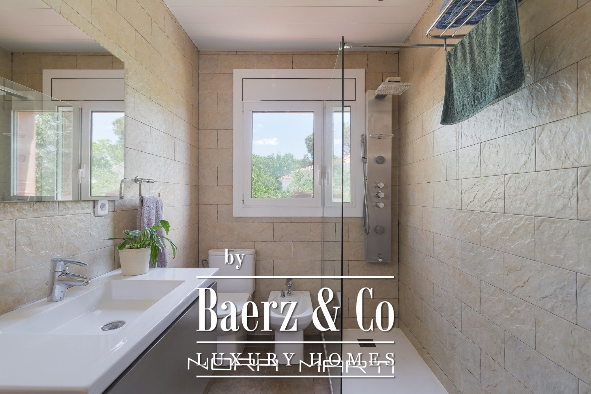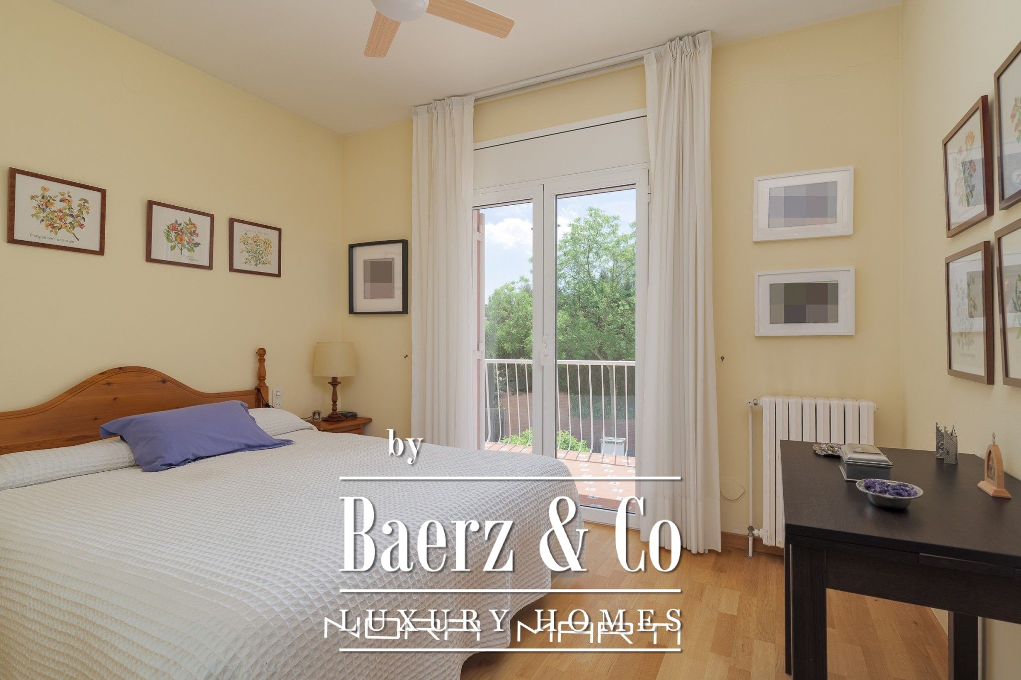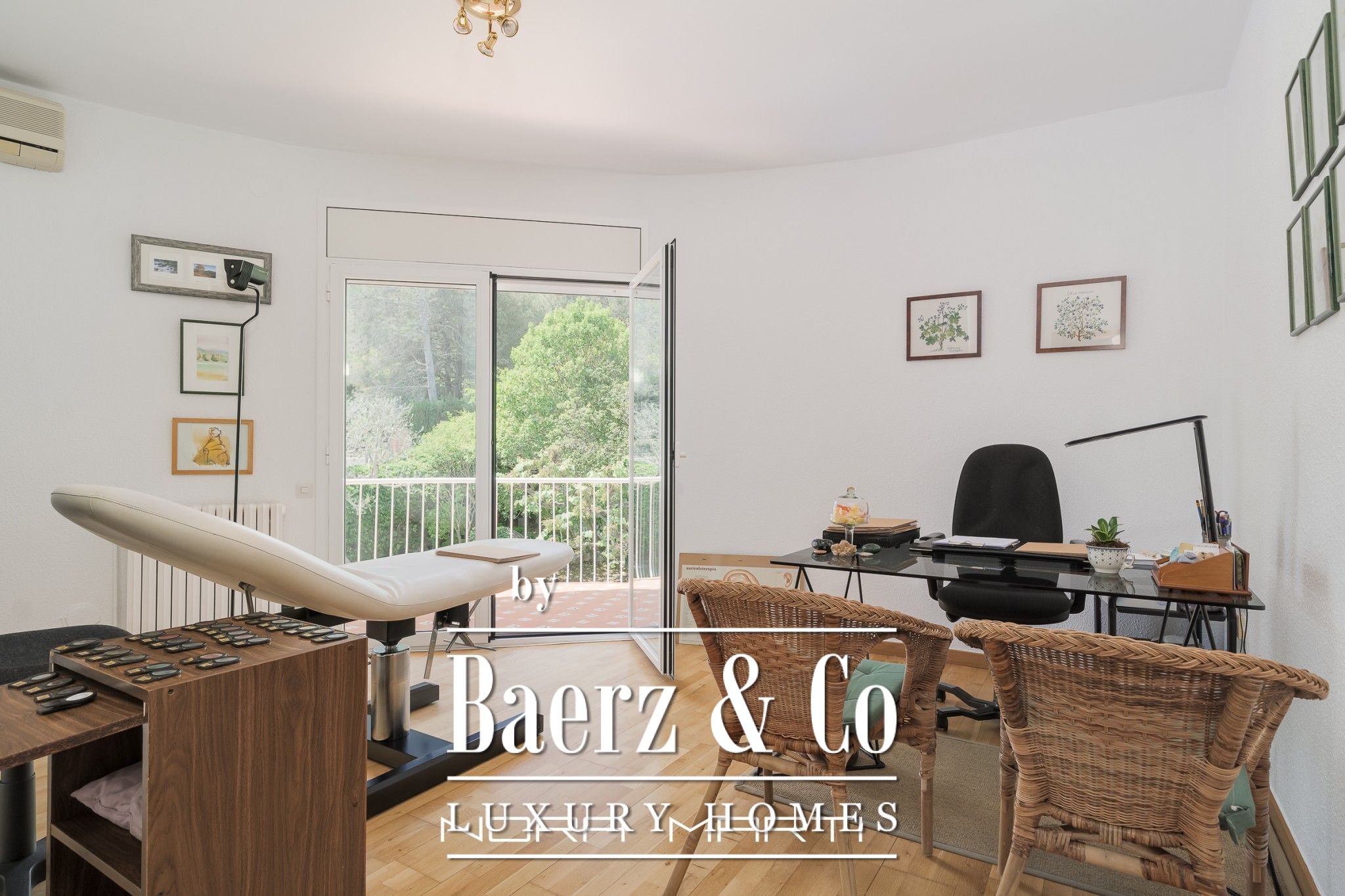 Outdoor dining, a surrounding terrace, and two independent parking accesses enhance both convenience and privacy. Located in a tranquil yet well-connected area, this house in Sant Cugat creates a serene context for family and entertaining life.