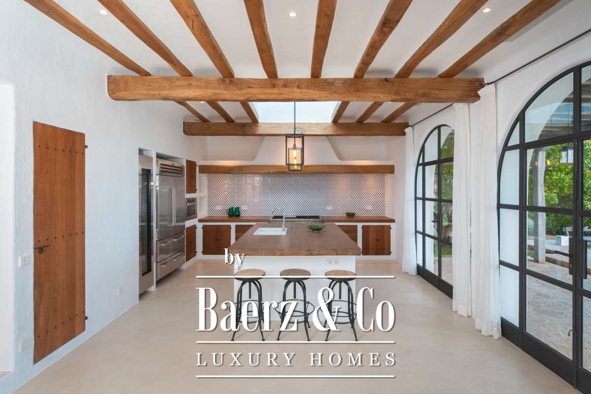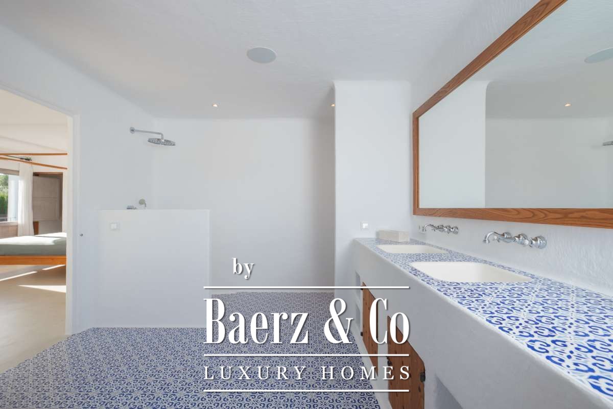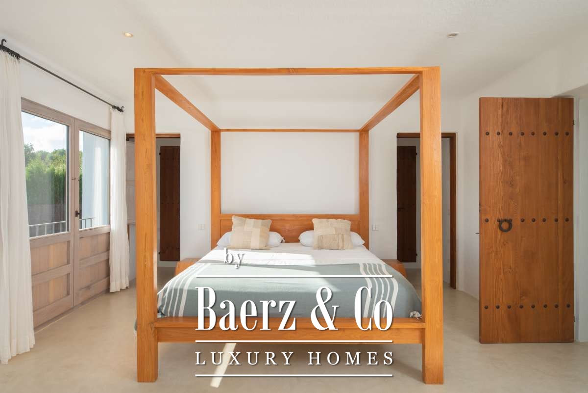 Originally an authentic finca extended in the 1940s, the house now offers 506 m² of living space divided between 361.7 m² on the ground floor and 144.64 m² above. Four bedrooms and five bathrooms have been thoughtfully renovated, each detail respecting the cubic architecture and rustic simplicity. Living areas blend seamlessly with garden terraces, encouraging an unhurried Mediterranean rhythm.